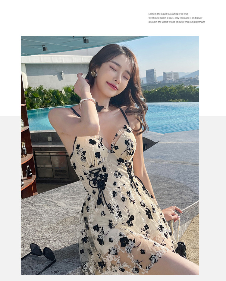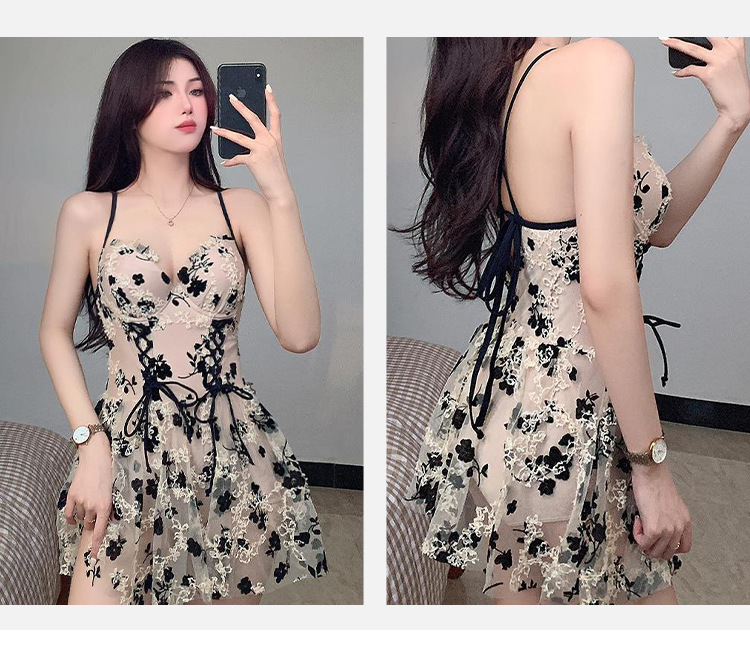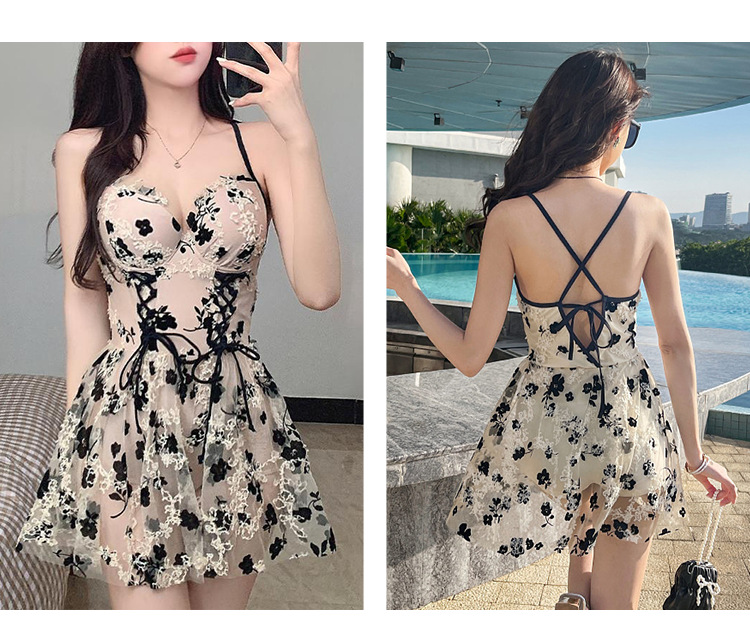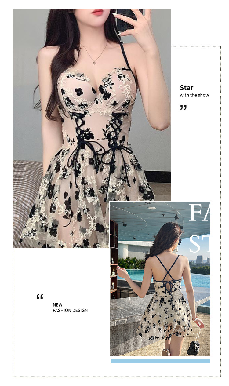 【气质御姐❗超辣吊带连体泳衣】交叉吊带美背性感显瘦,无钢圈设计方便穿脱,吊带连衣裙露背显瘦御姐气质温泉泳装QQ