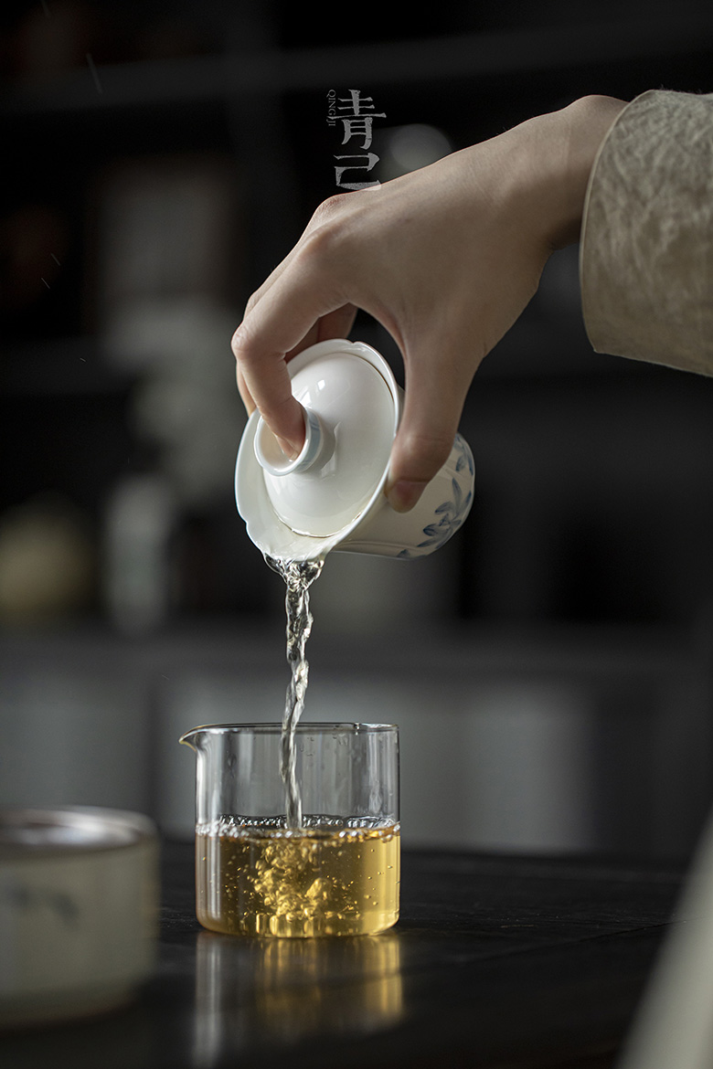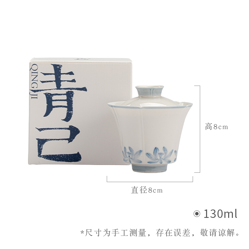 永利汇青己青花釉下彩睡莲环绕盖碗玉泥白瓷功夫茶具家用泡茶碗中式手工