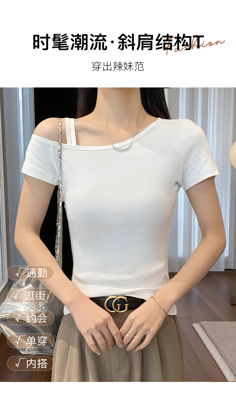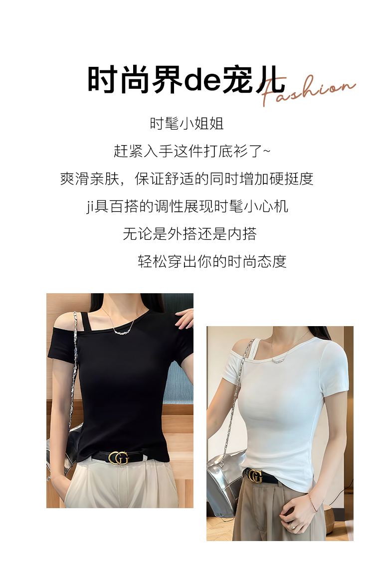 夏季薄款无痕短袖T恤上衣女时尚斜肩一字露肩气质百搭修身显瘦TX0018露肩T恤