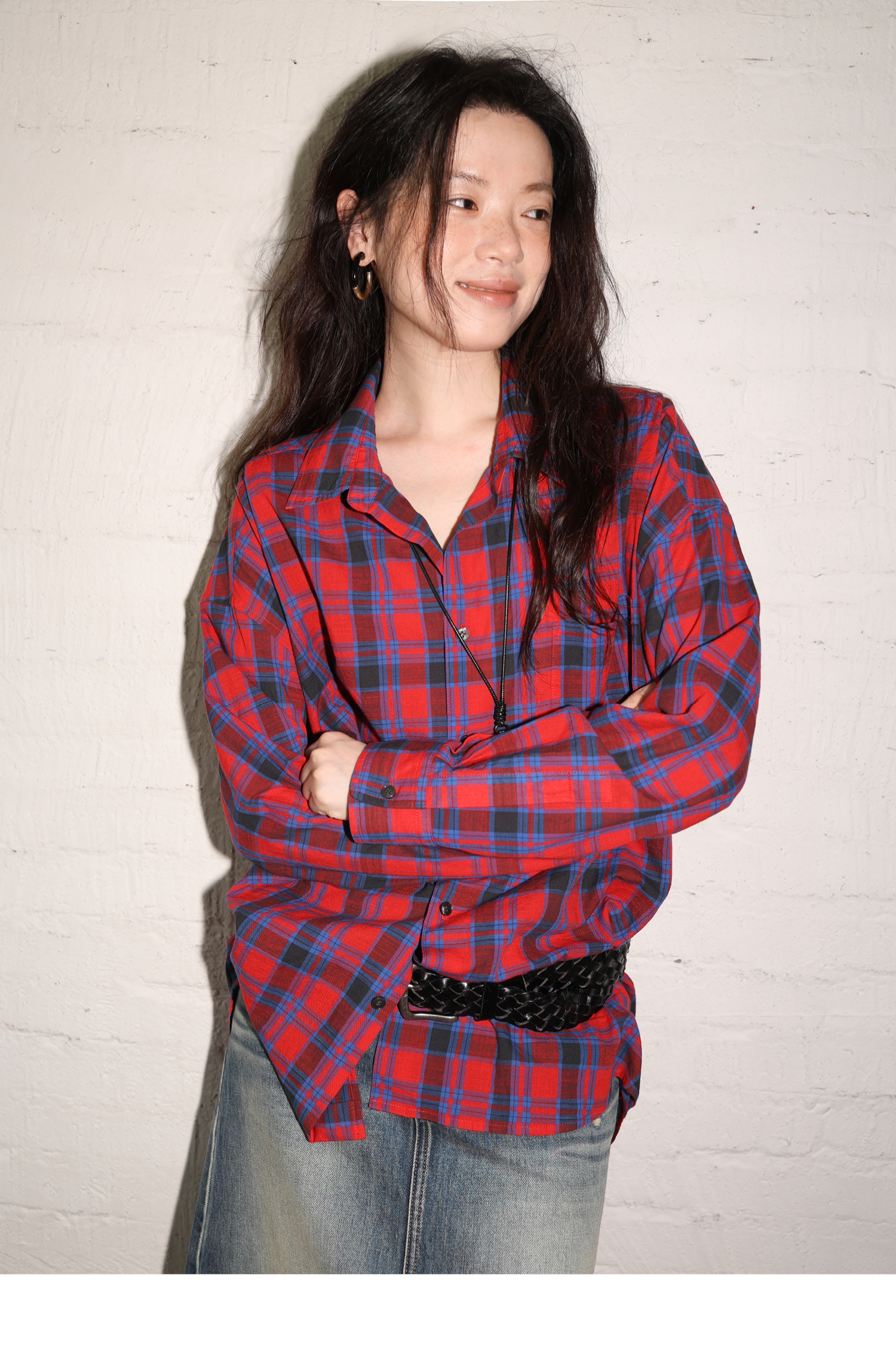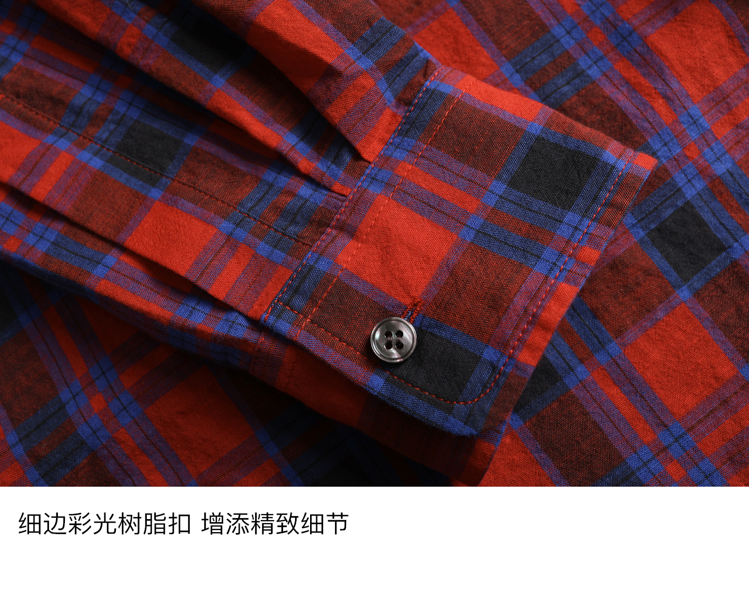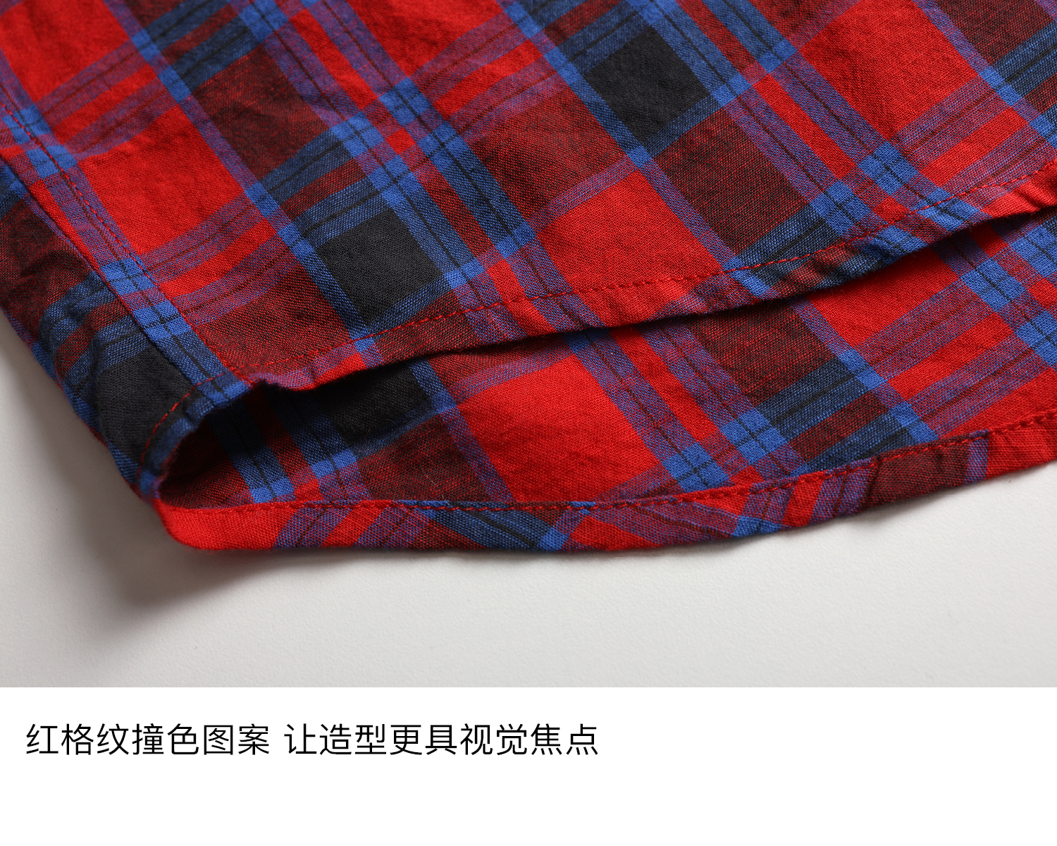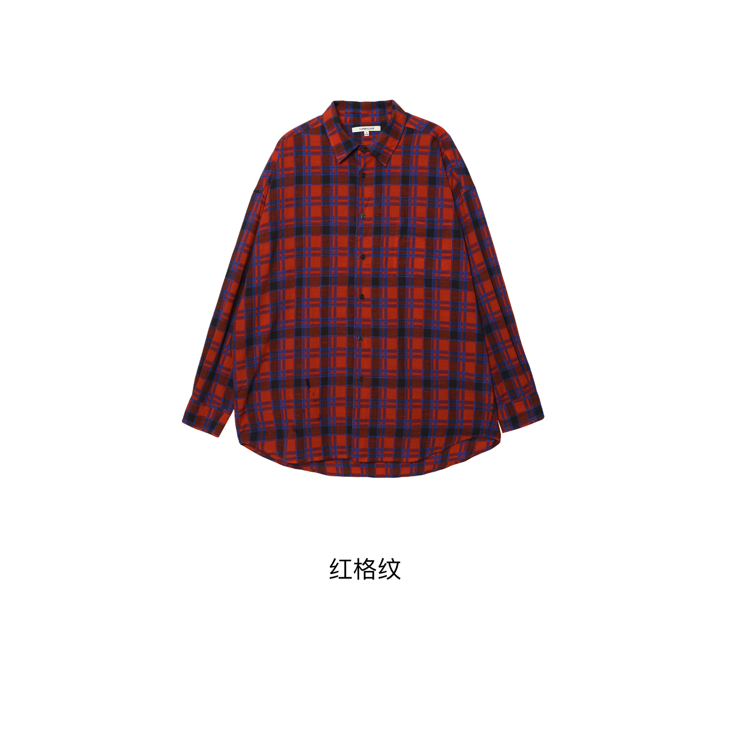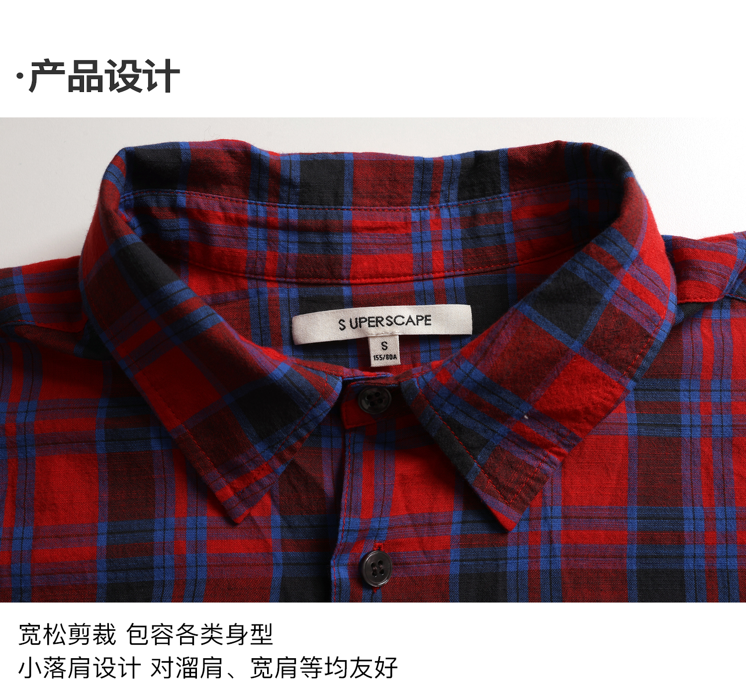 素舶 纯棉柔软舒适经典红格纹撞色翻领宽松复古松弛休闲衬衫上衣