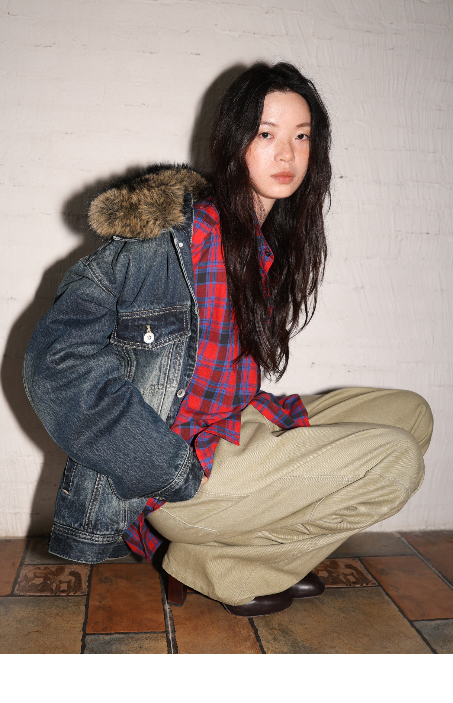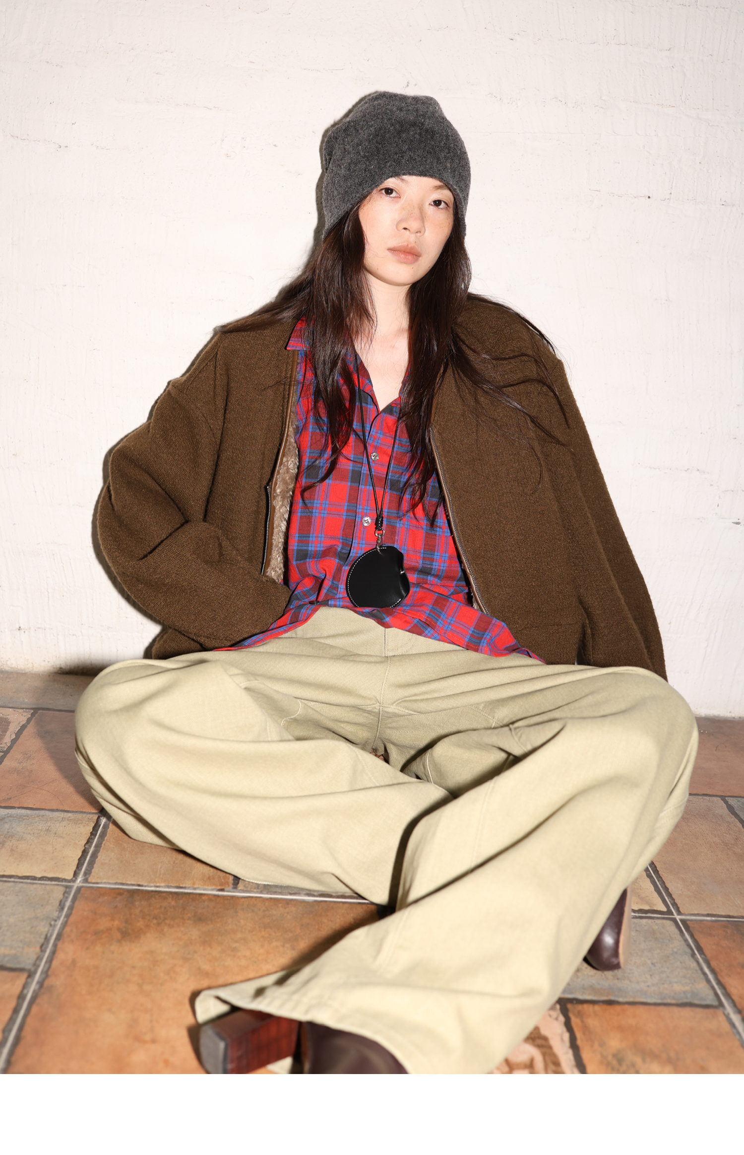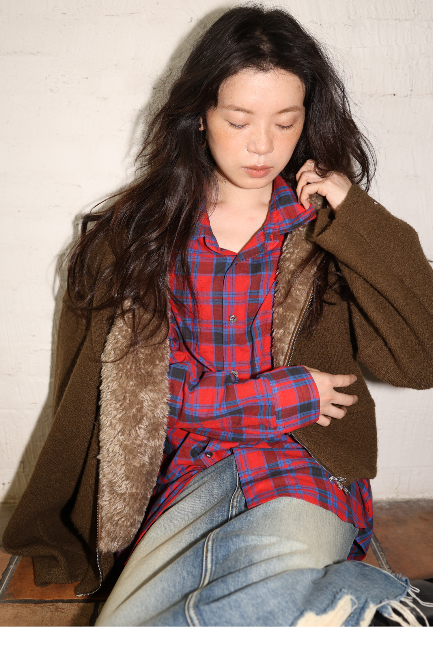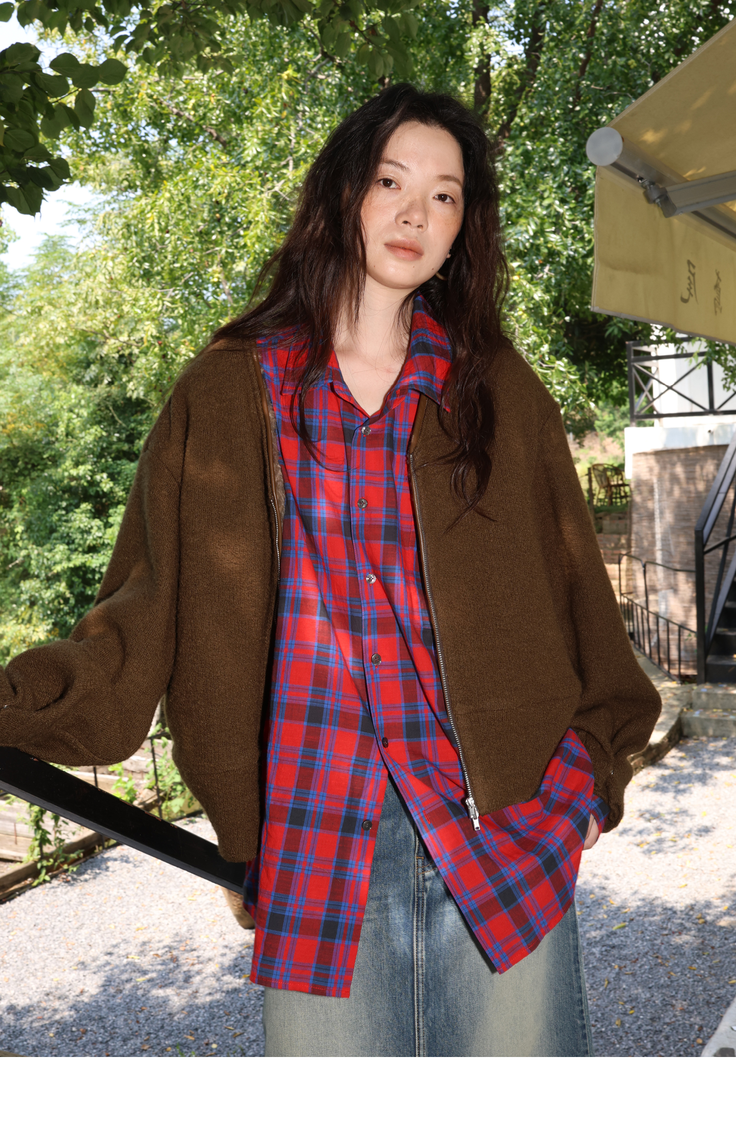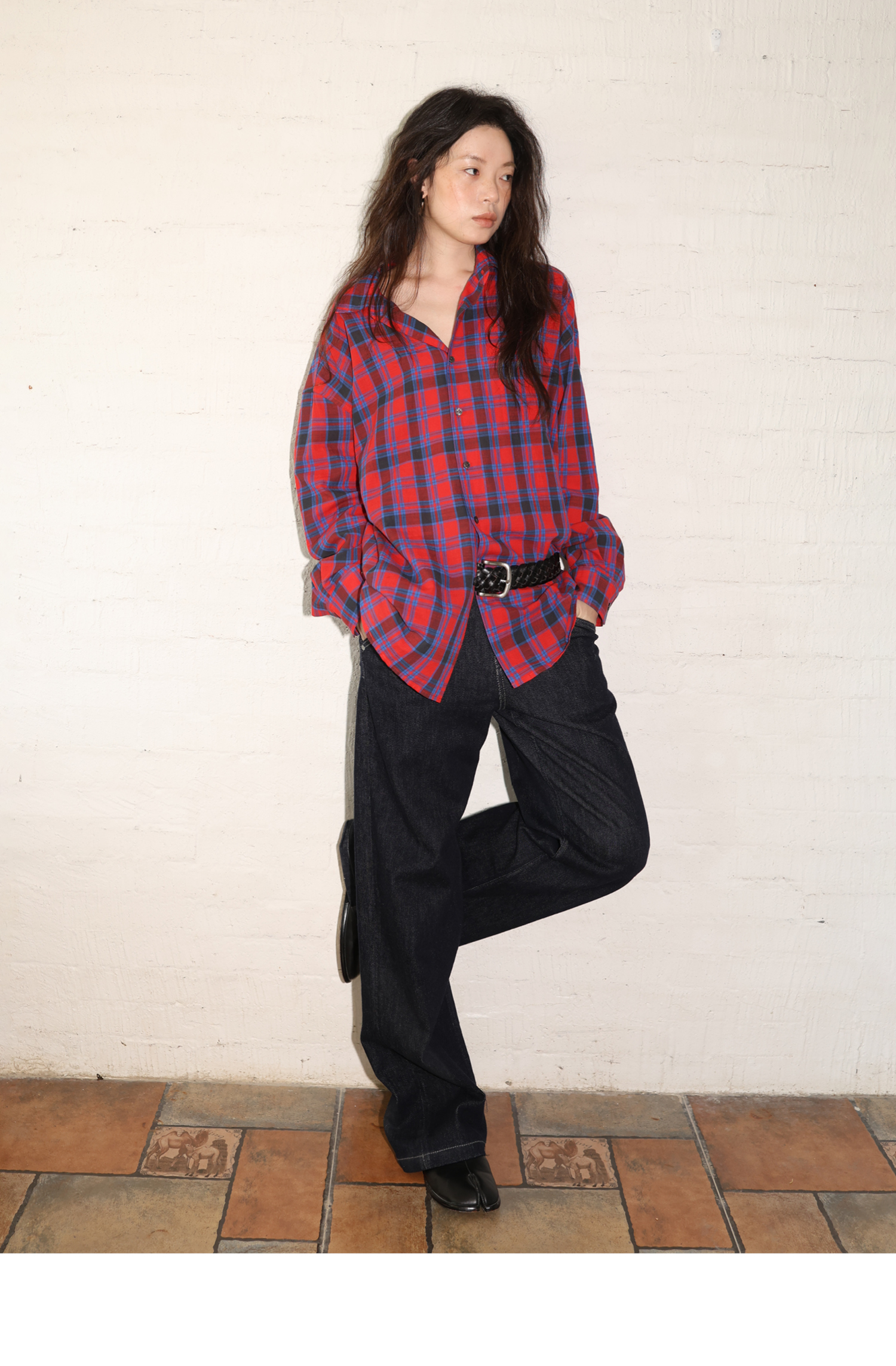 素舶 纯棉柔软舒适经典红格纹撞色翻领宽松复古松弛休闲衬衫上衣