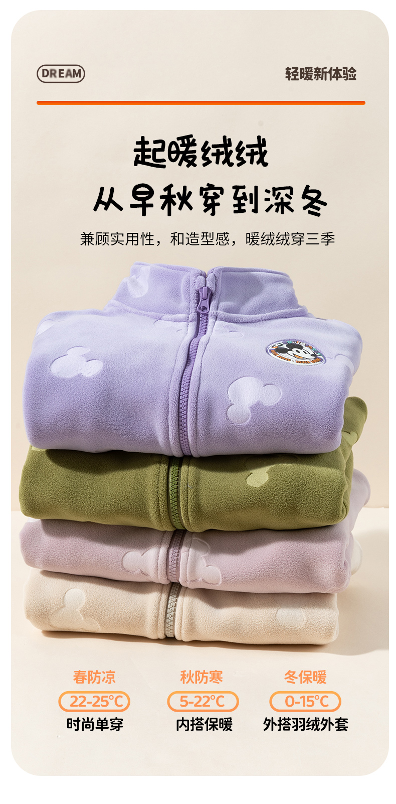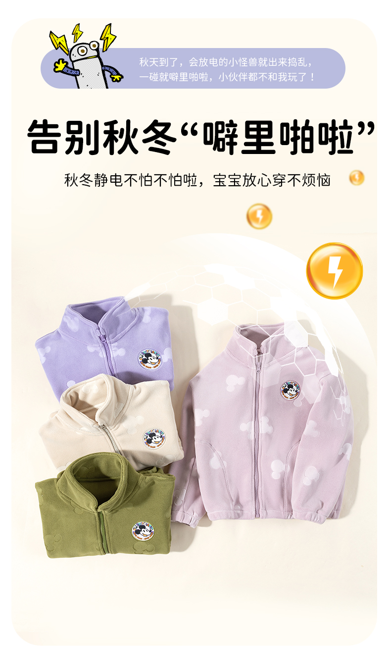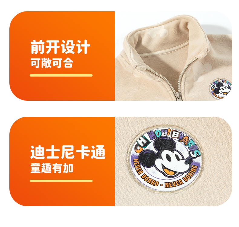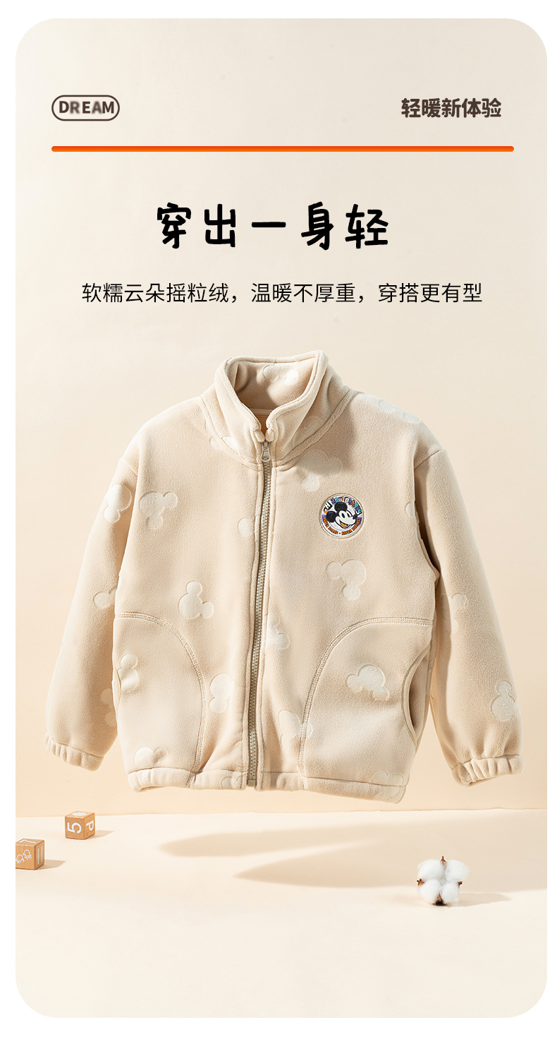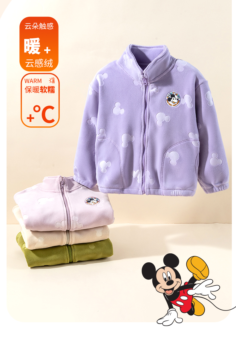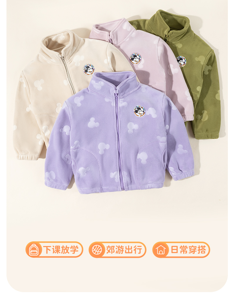 迪士尼【校服神器】24秋冬新款男女宝宝摇粒绒外套舒适保暖可内搭上装HSND24038