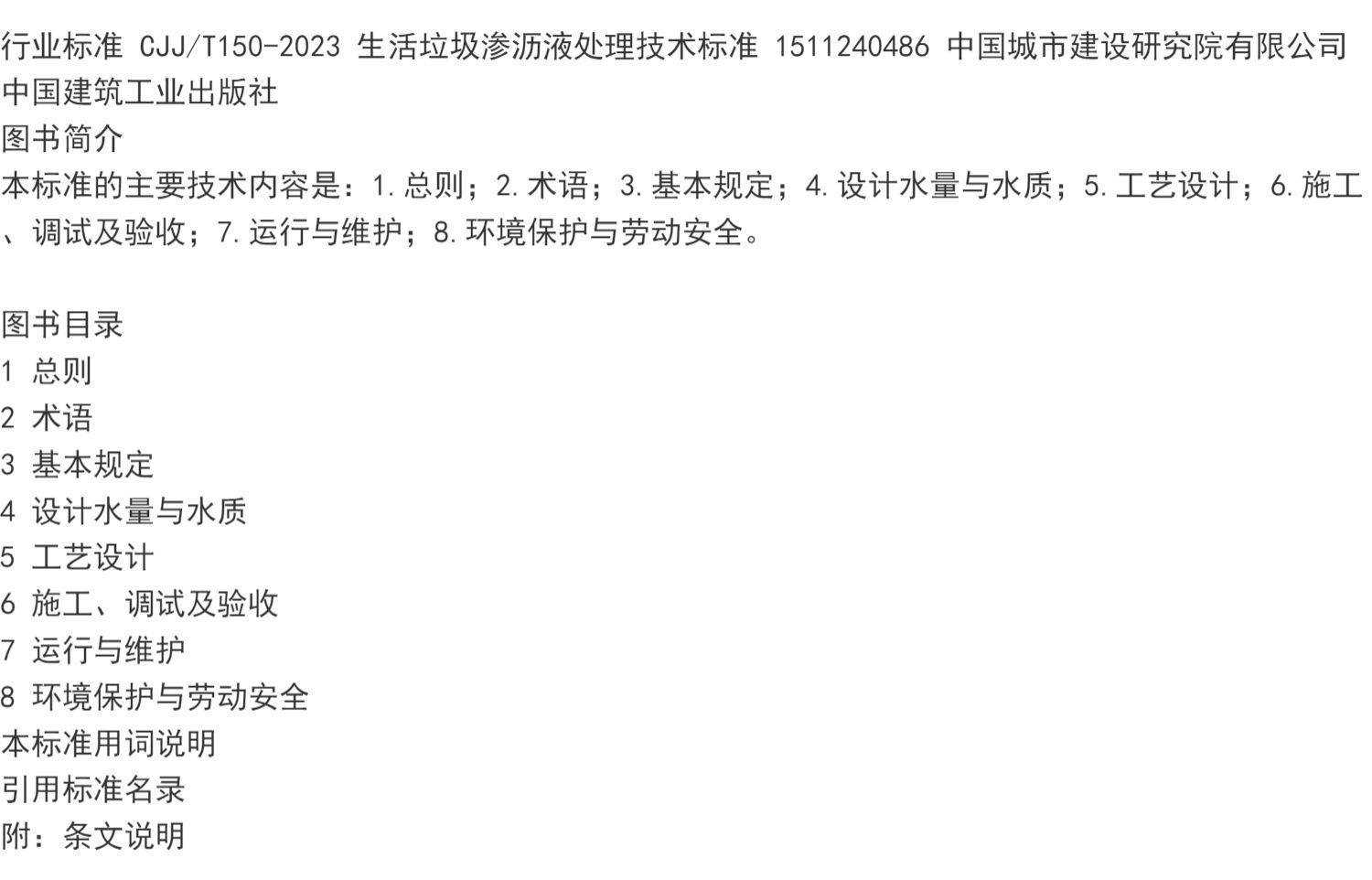 CJJ/T150-2023 生活垃圾渗沥液处理技术标准