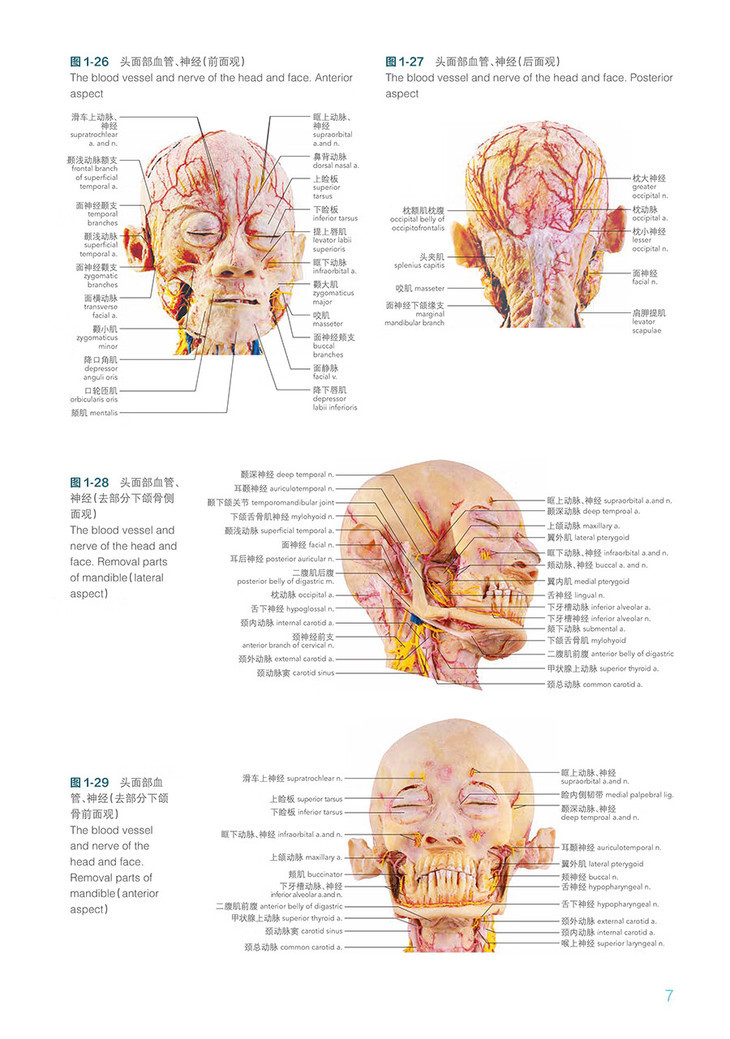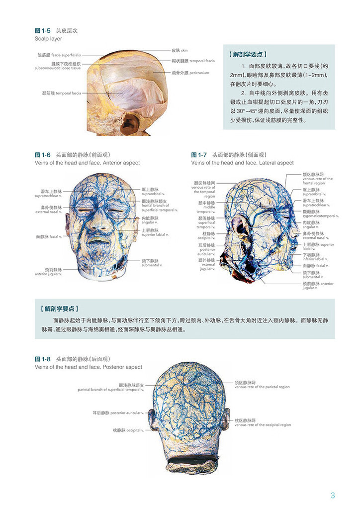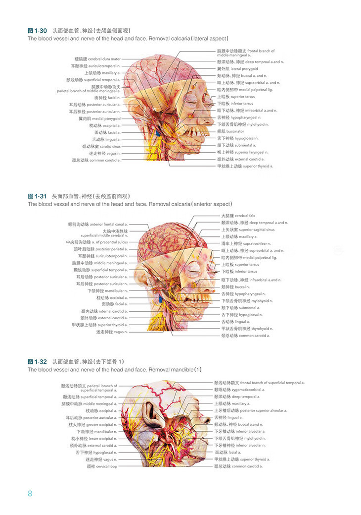本图谱内容将其分为头部、颈部、上肢、胸部、腹部、盆部、下肢和脊柱等八个章节。标本图片参考人卫《局部解剖学》第9版的内容和插图采集。本图谱计划分上、下两册,共展示标本彩图1760余幅,对每个部位根据其特点由浅入深,按照局部解剖的方法步骤,逐层显示其形态结构。书中展示的内容除突出人体局部器官结构的位置、形态、层次及其相互关系外,为了更好的显示重要器官的毗邻关系,血管神经的走行和分支等又结合临床,增加了断层解剖学、临床影像学图片以及重要器官结构的变异资料。书中标本图片都是王兴海教授带领全国多所院校解剖专业教师,按照教学大纲精心制作,专业拍摄而成。标本的动脉和静脉由红色和蓝色乳胶灌注显示,神经系统的结构多采用水彩颜料染色加以显示。