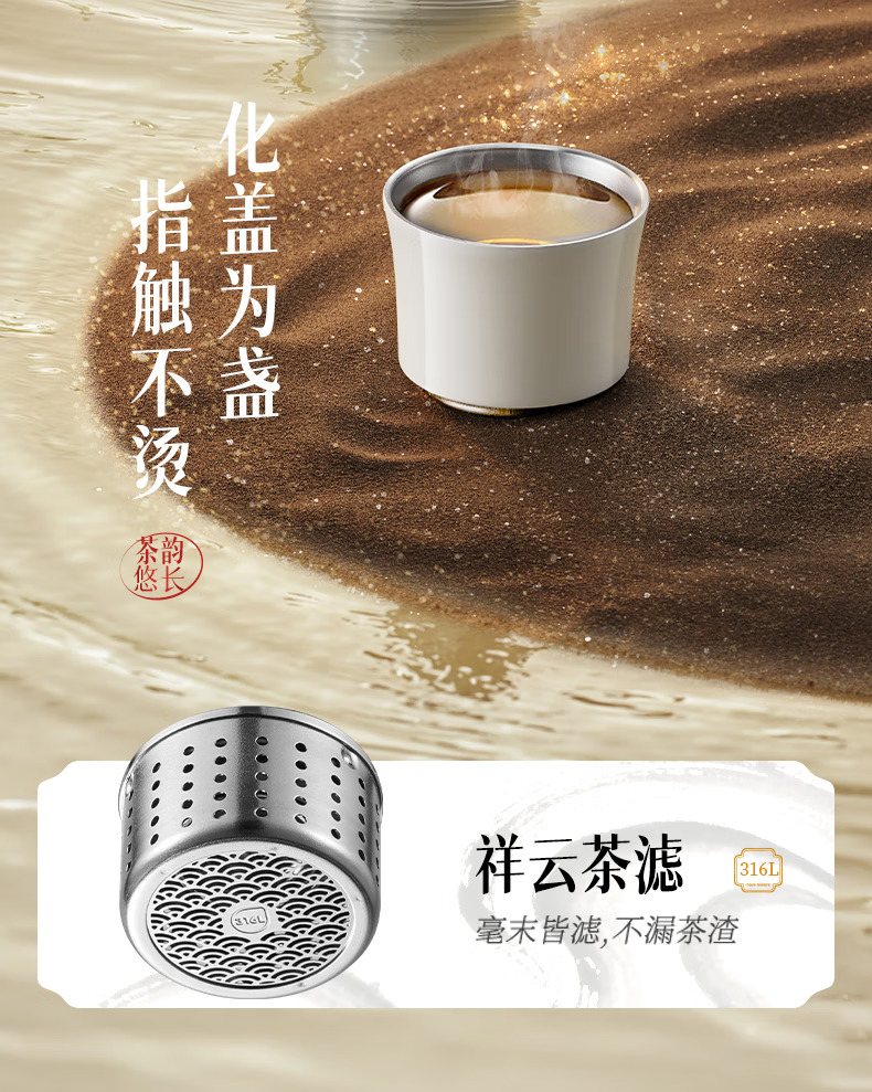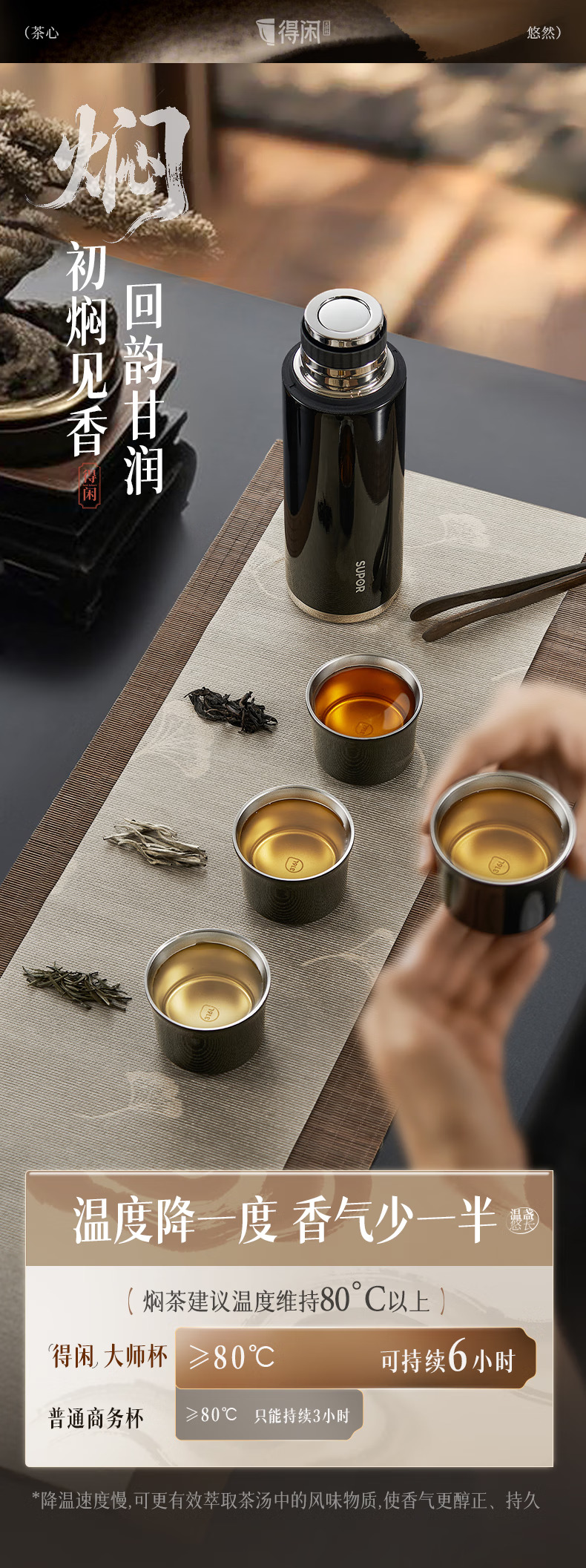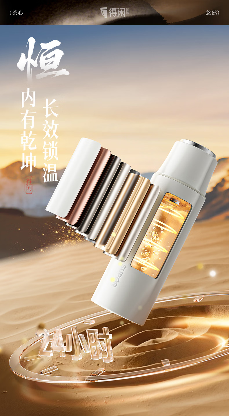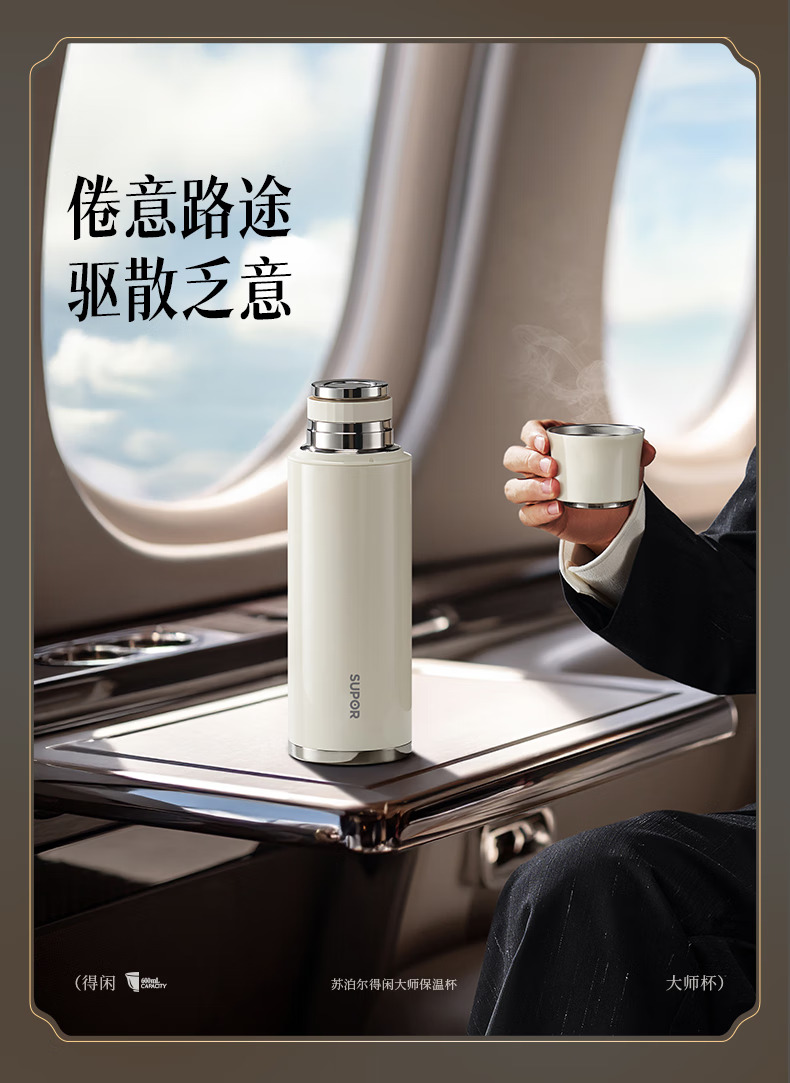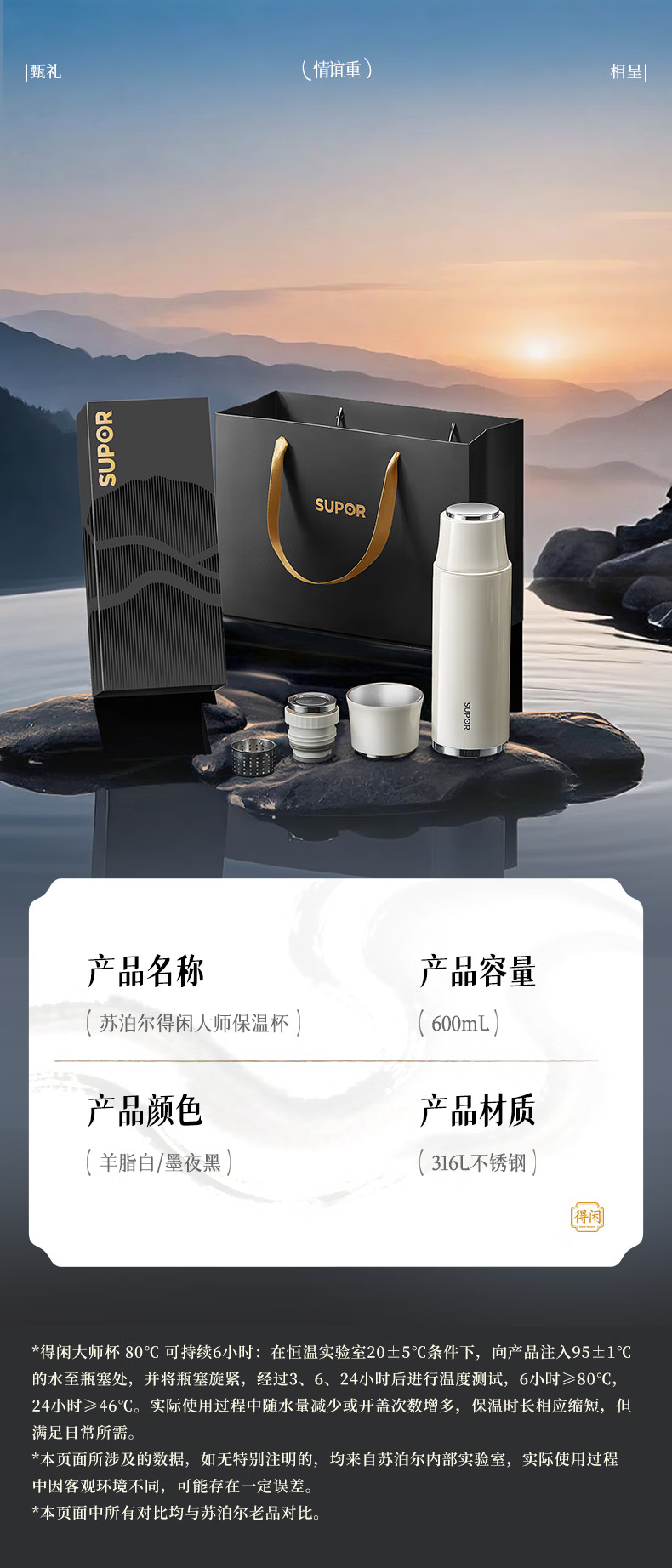 苏泊尔(SUPOR)得闲大师保温杯大容量泡茶焖茶水杯316L不锈钢磁吸杯盖礼物 600mL 羊脂玉-礼盒装60EC10【磁吸杯盖】