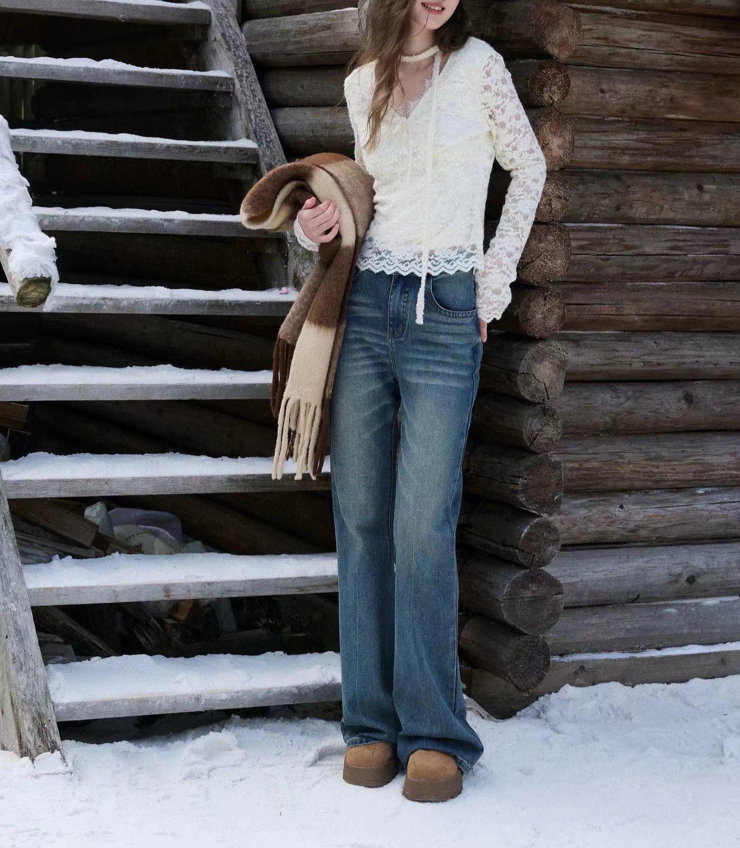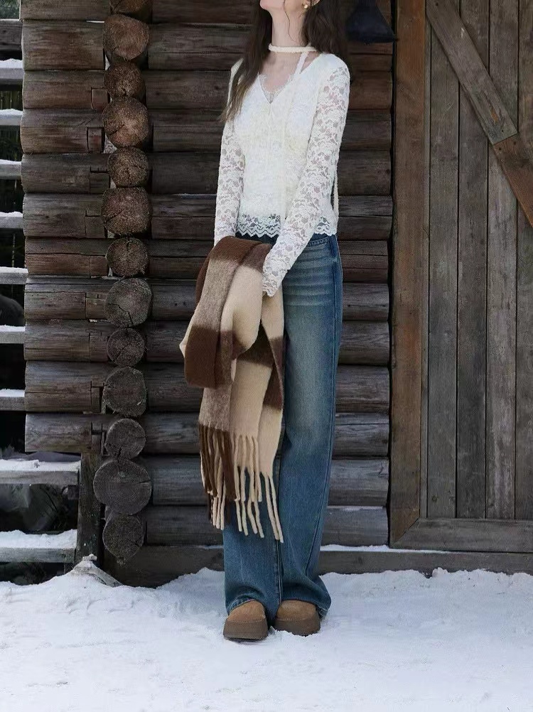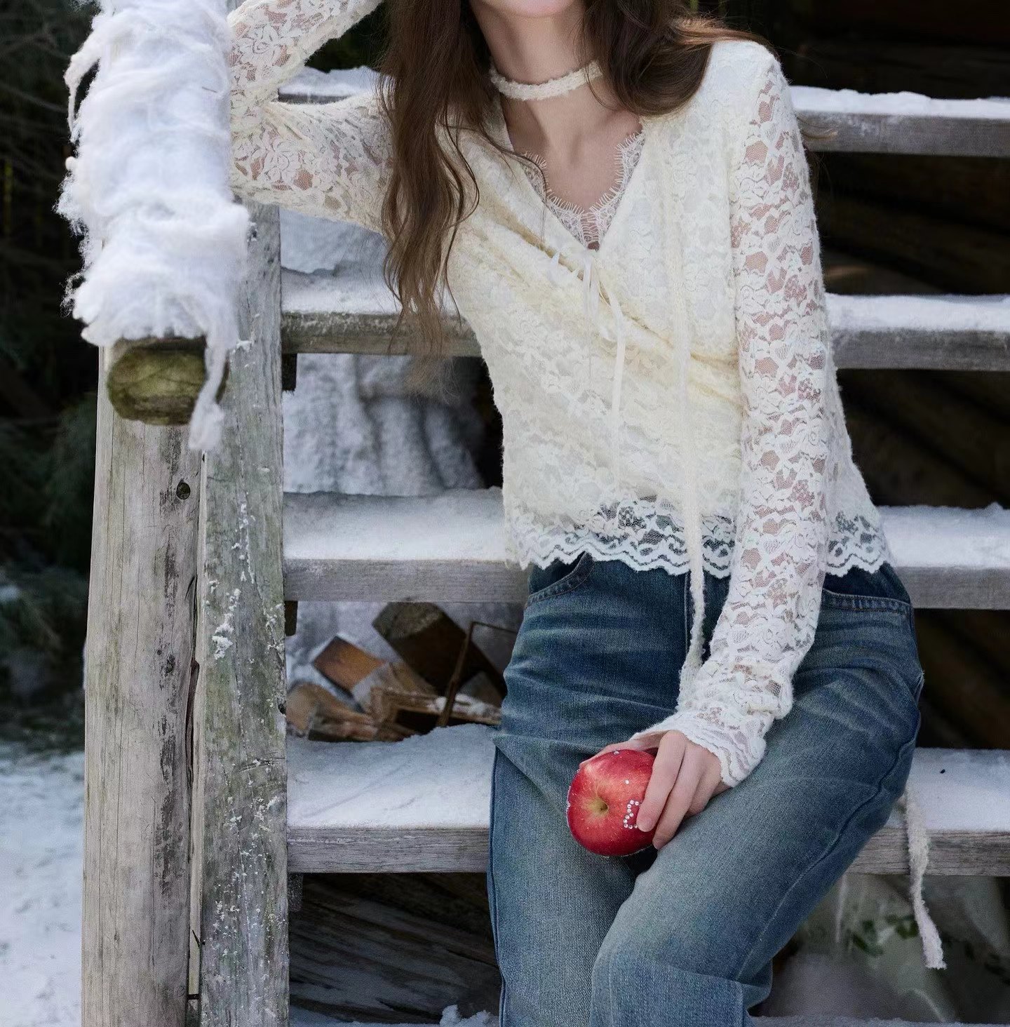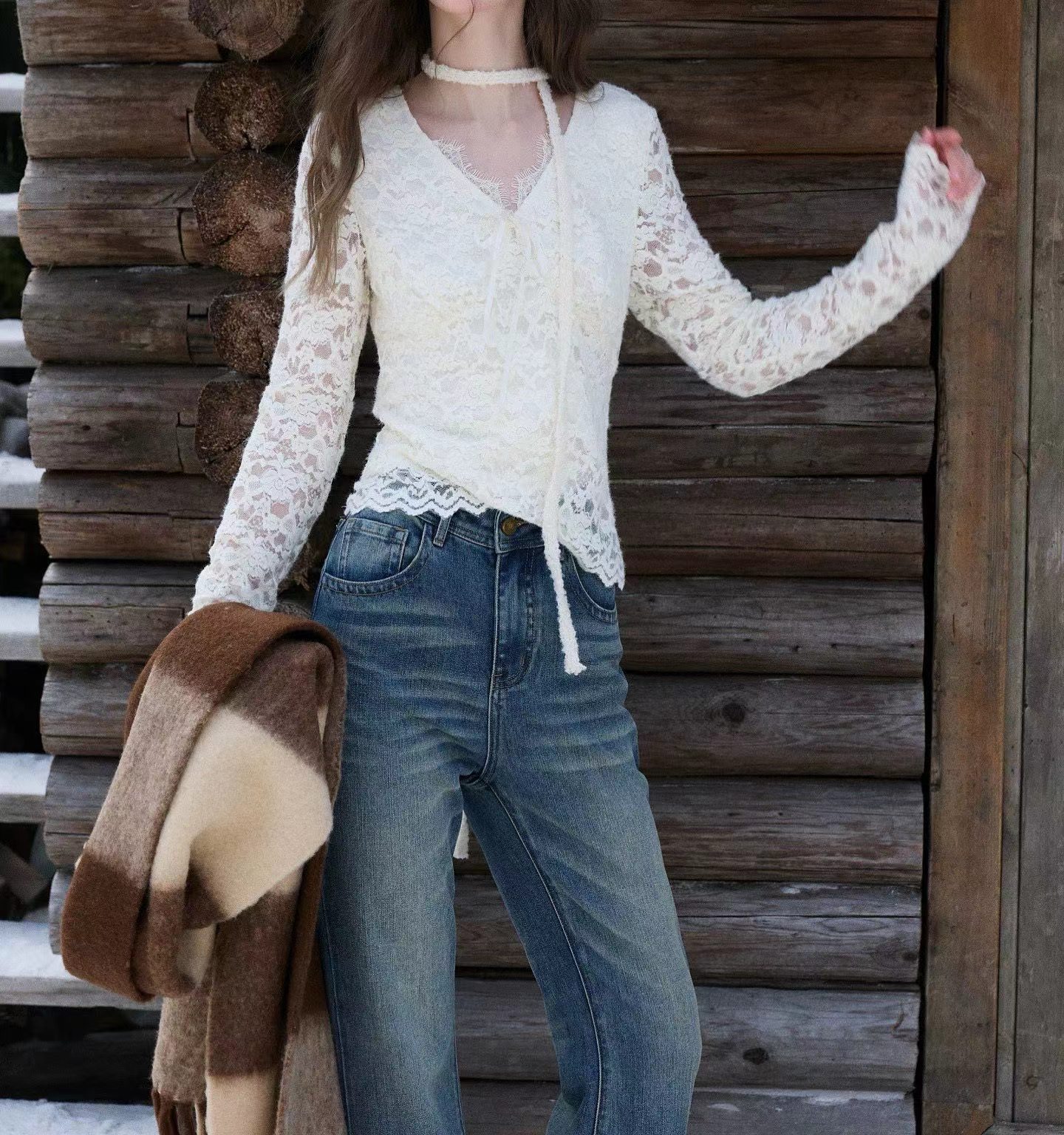 2026春季新款修身打底蕾丝衫小衫V领长袖短款,白蕾丝V领上衣,温柔到骨子里的jing致感,这件蕾丝衫太绝了!系带设计甜妹本命 法式蕾丝打底,单穿内搭都美到犯规 法式白蕾丝V领上衣 | 温柔系穿搭b备。jing致蕾丝工艺:立体花卉蕾丝纹理,质感细腻不扎肤,自带朦胧仙气。V领系带设计:可调节系带打造小V脸视觉,睫毛蕾丝边点缀领口,甜欲感拉满。修身短款剪裁:侧边收褶藏肉显瘦,短款版型拉高腰线,搭配高腰下装超显比例。百搭实穿性:单穿是温柔法式风,内搭大衣/西装,瞬间提升穿搭层次感