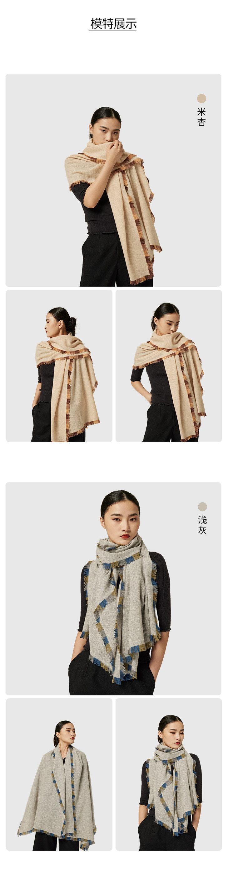 羊绒素色拼散须边 SJF94P395W
