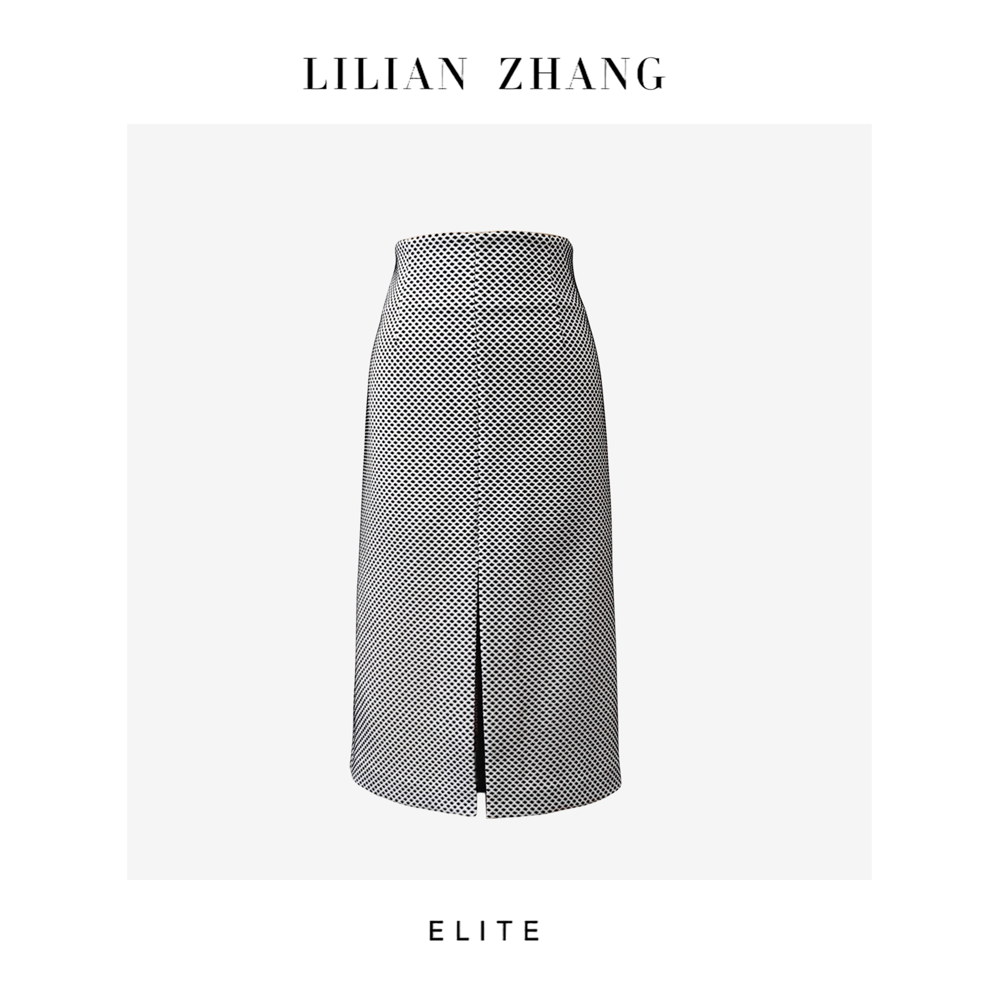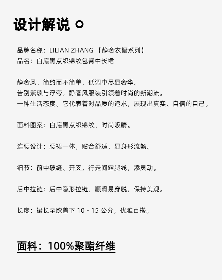E-“定制”—静奢风 ——都市摩登——白底黑点织锦纹包臀中长裙 2503003