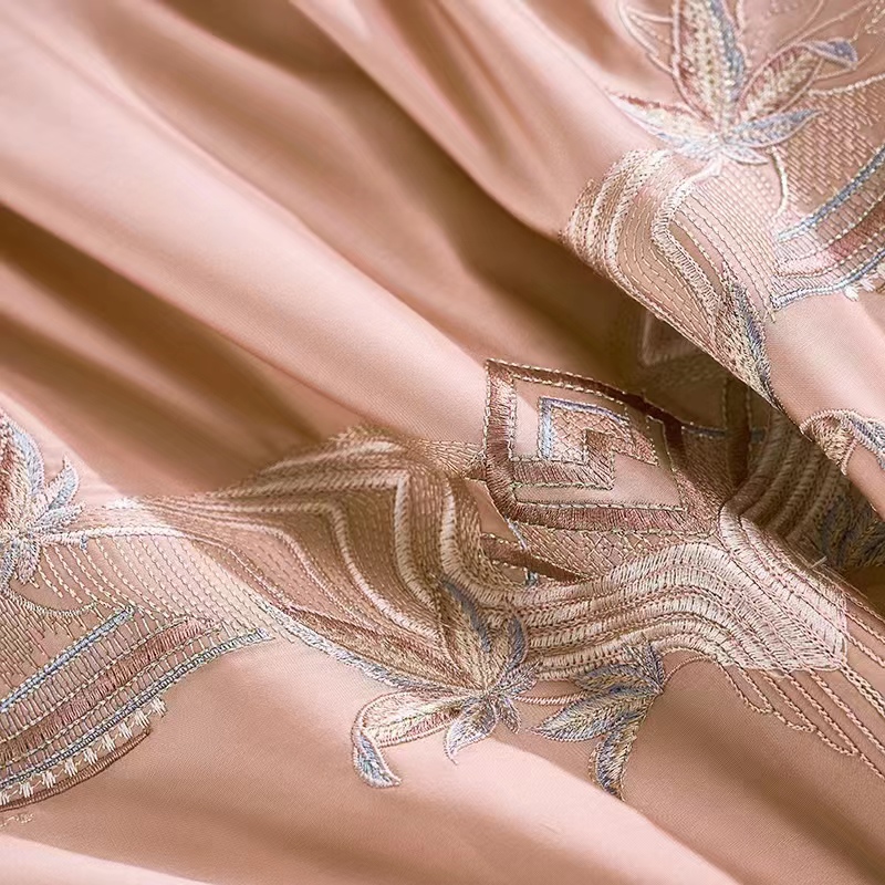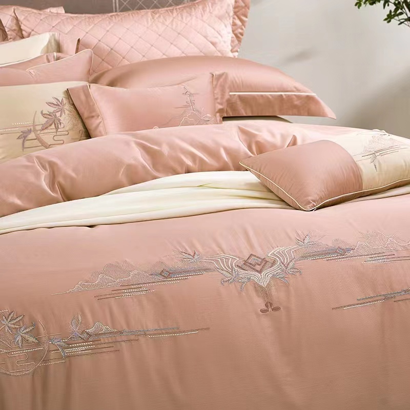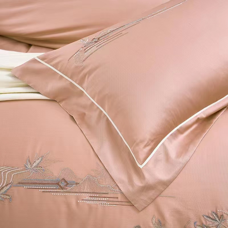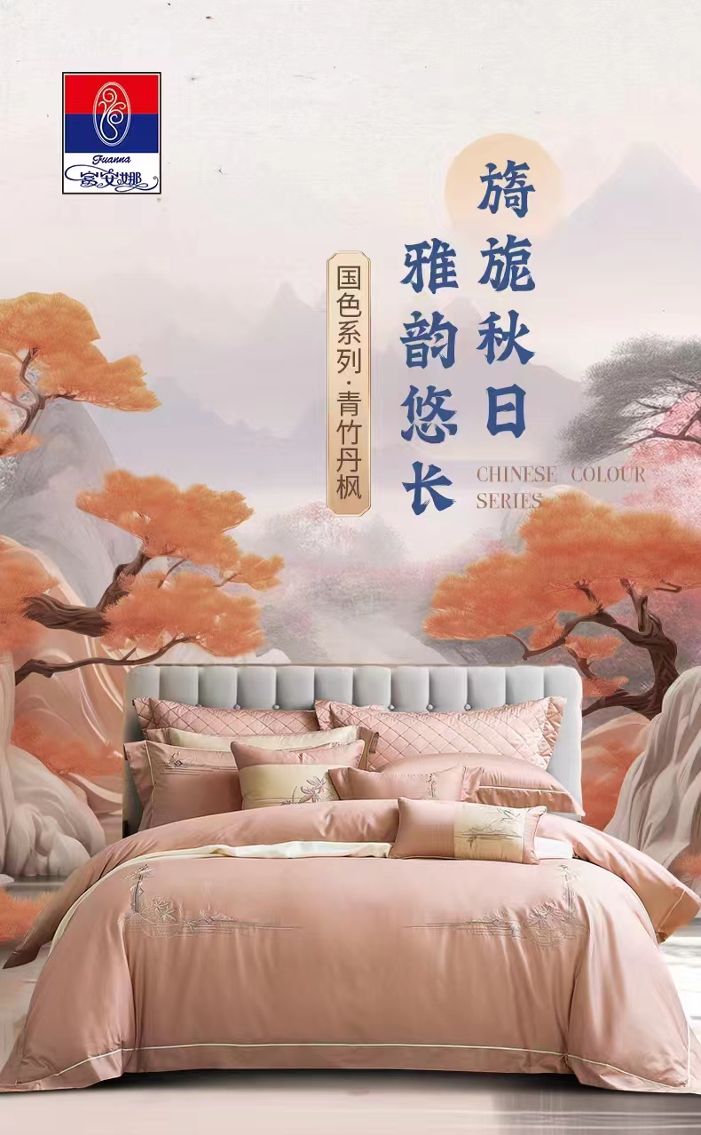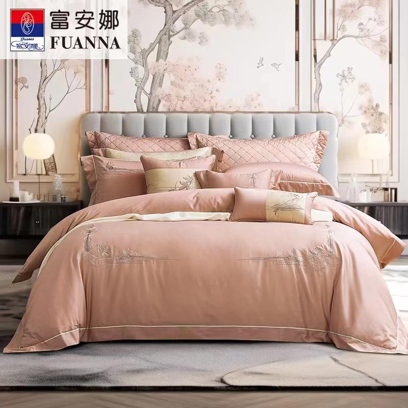 【7楼】富安娜素绣床单四件/国色系列·青竹丹枫,单被加大,橙