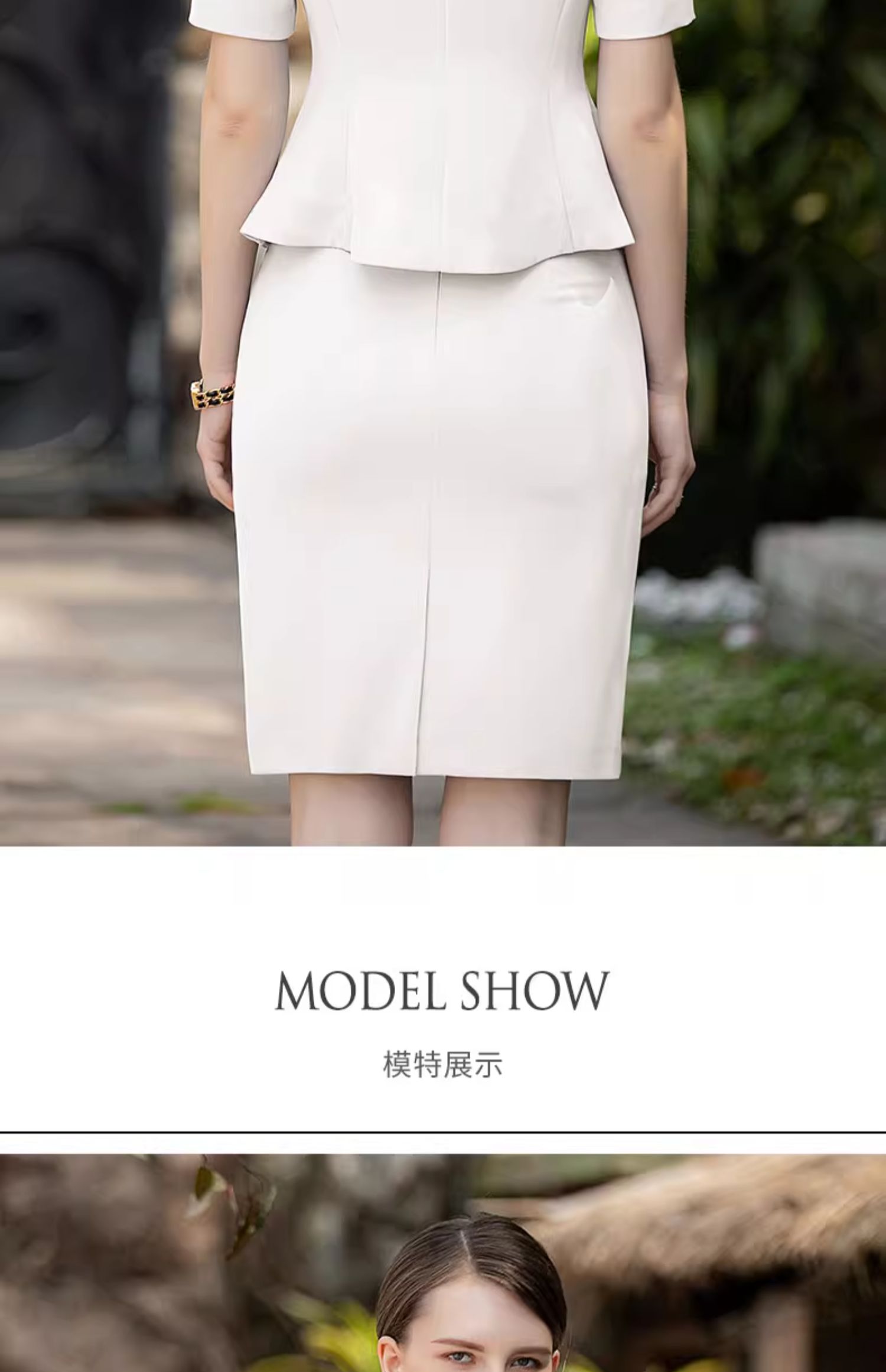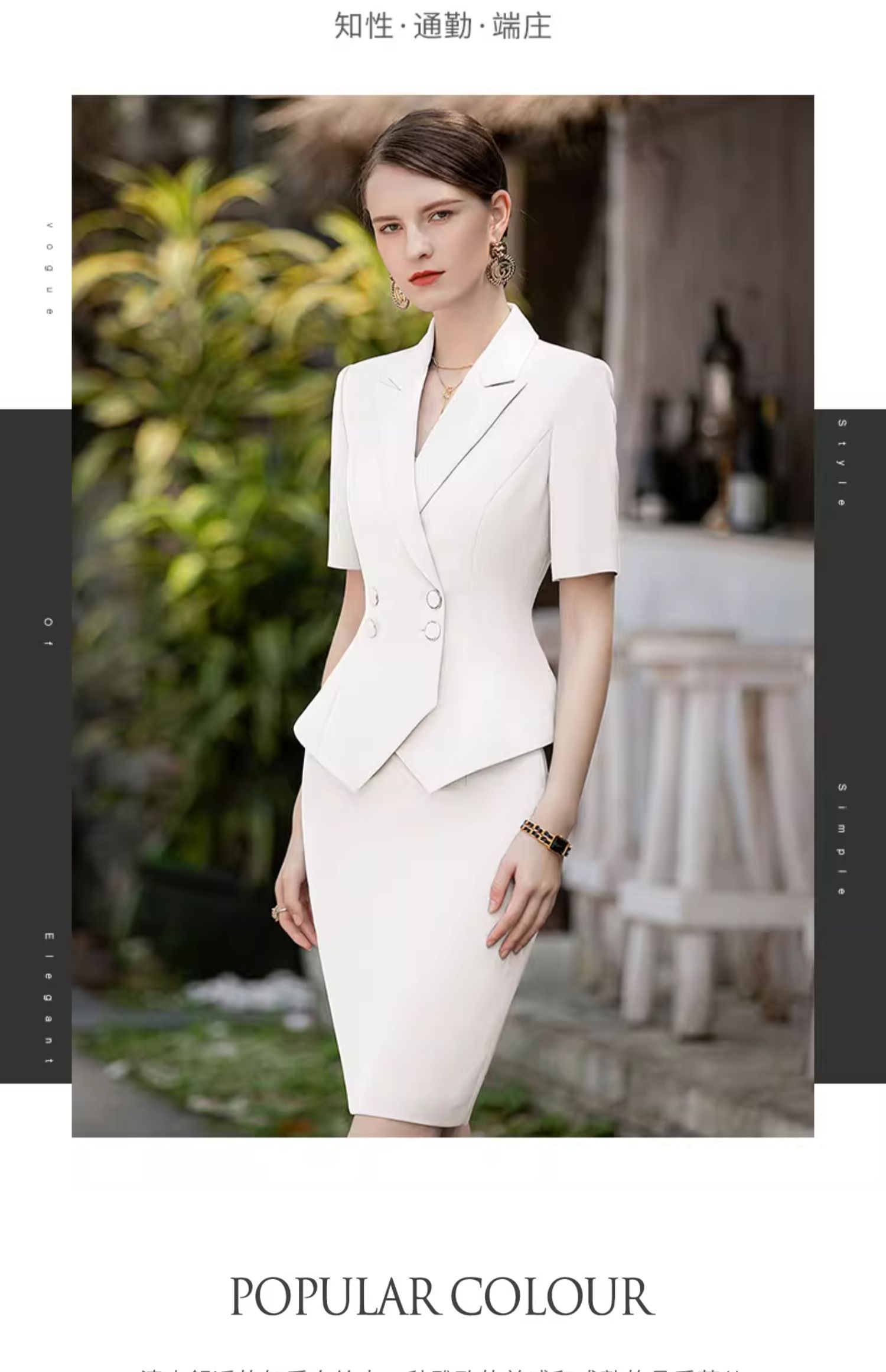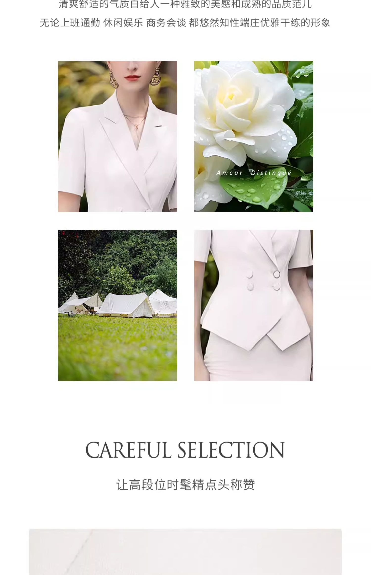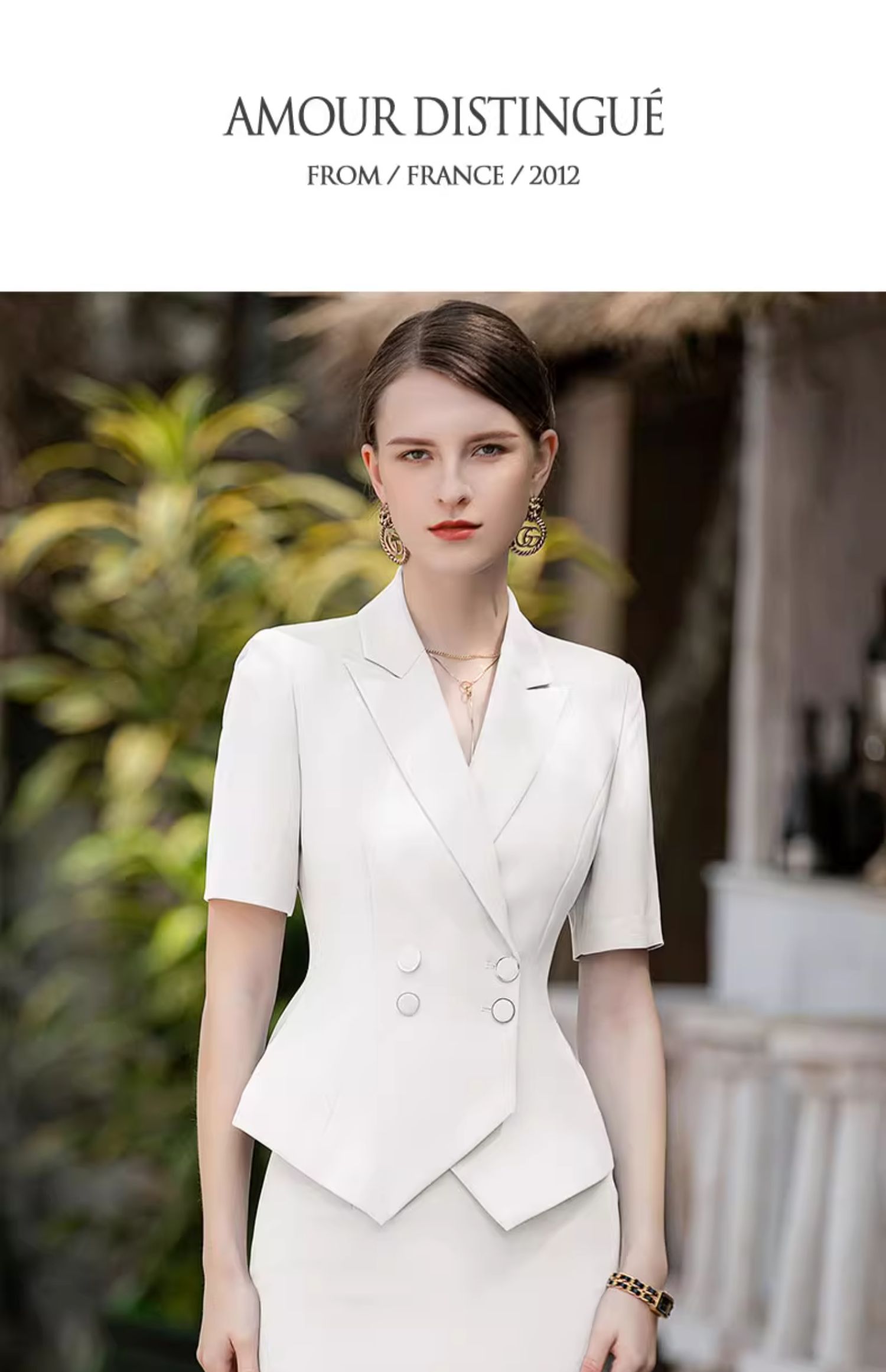AD时尚通勤职业装女主持人面试正装套裙新款白色短袖西装套装工装