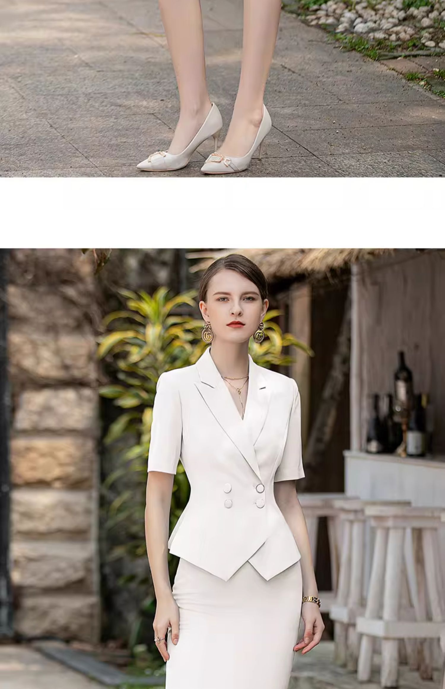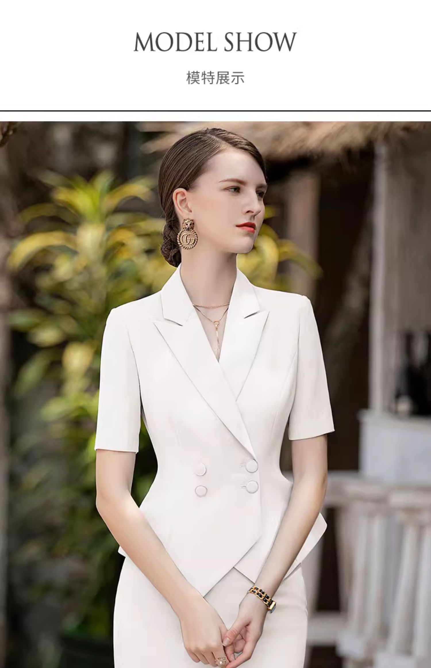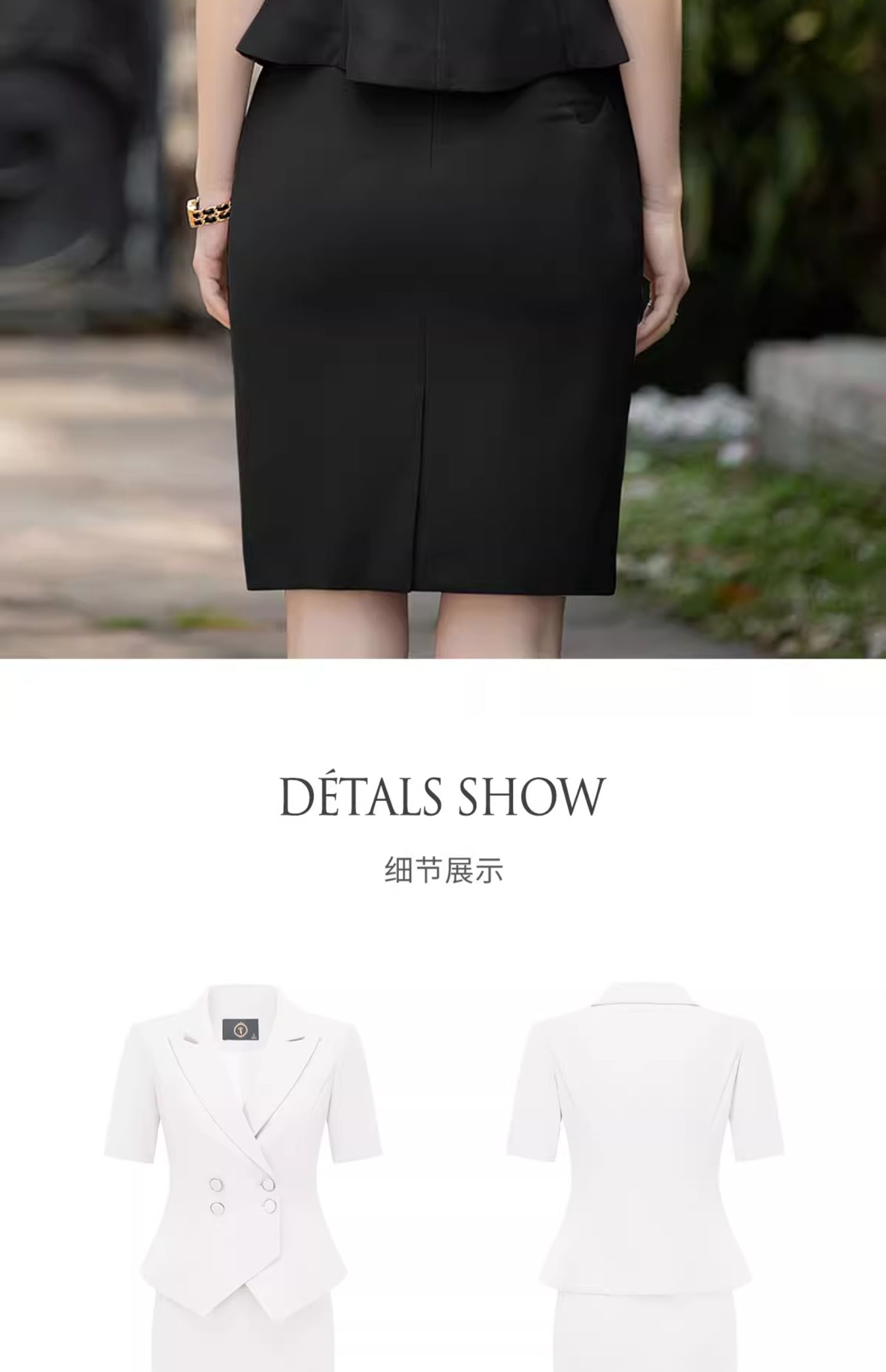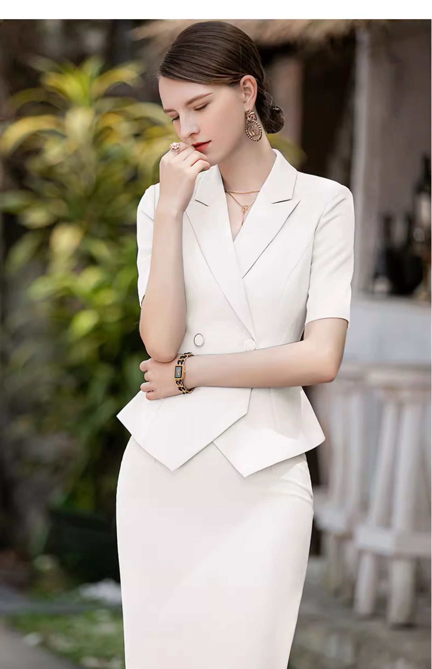 AD时尚通勤职业装女主持人面试正装套裙新款白色短袖西装套装工装