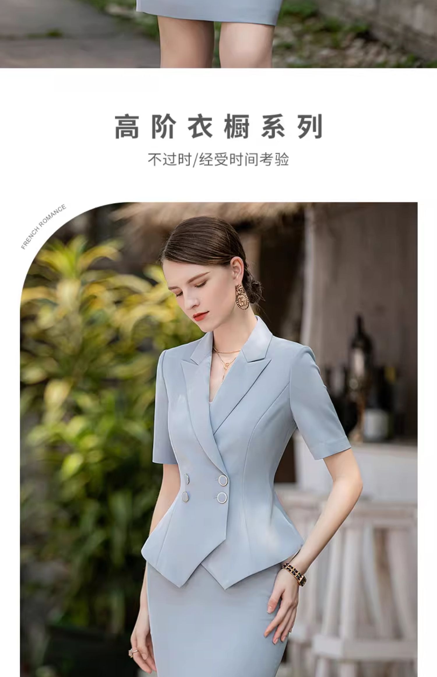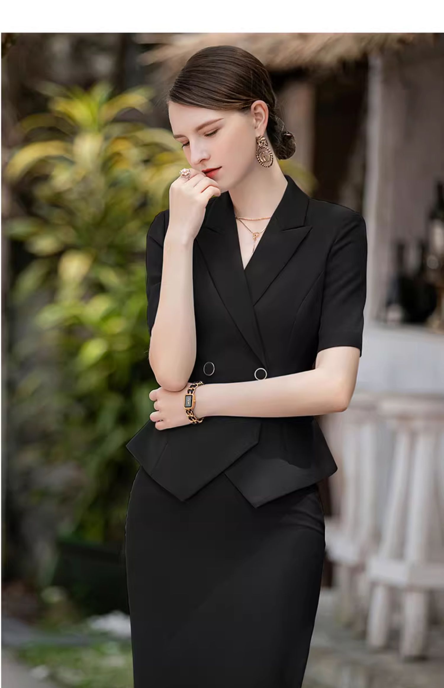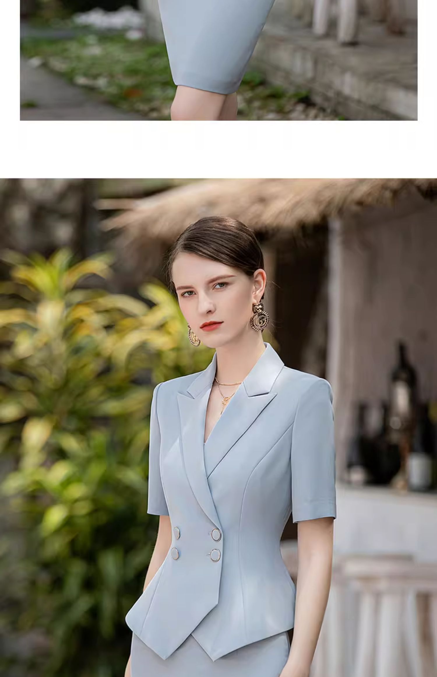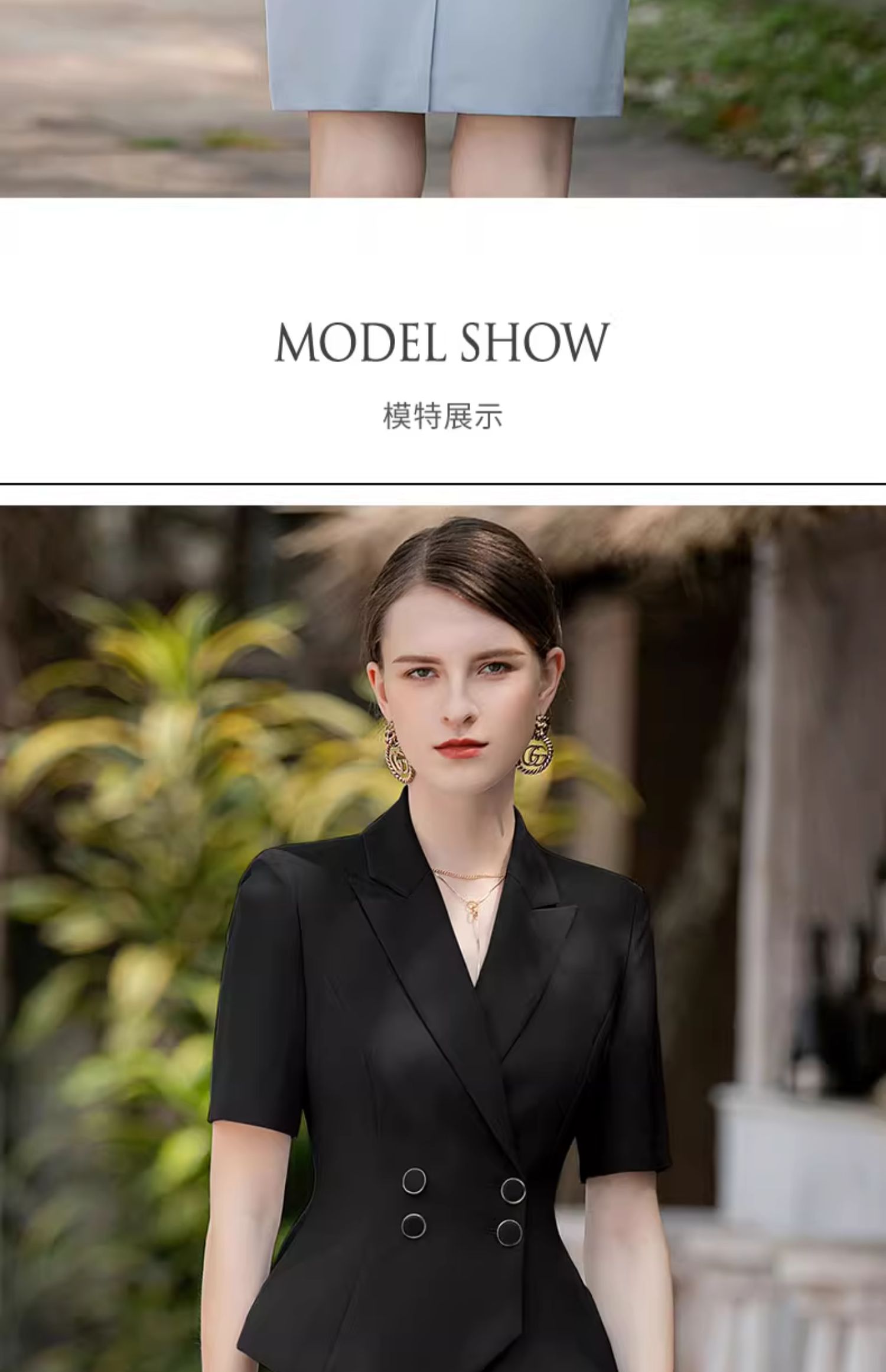 AD时尚通勤职业装女主持人面试正装套裙新款白色短袖西装套装工装
