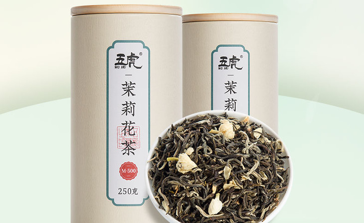 茶叶 花茶 中国茗茶 大白毫 飘香茉莉花茶 浓香型 茶饮 五虎 250g