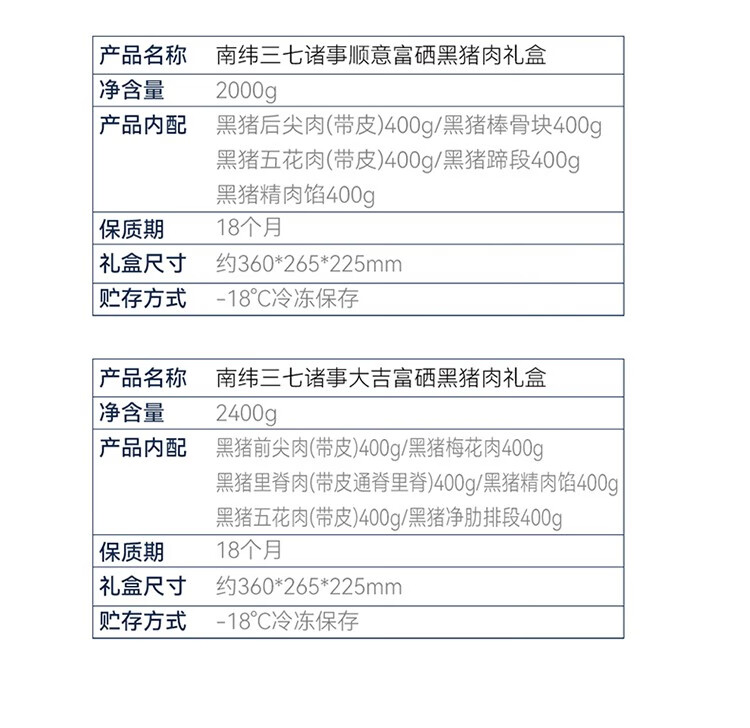 南纬三七诸事顺意富硒黑猪肉礼盒2000g