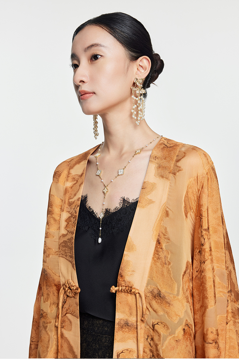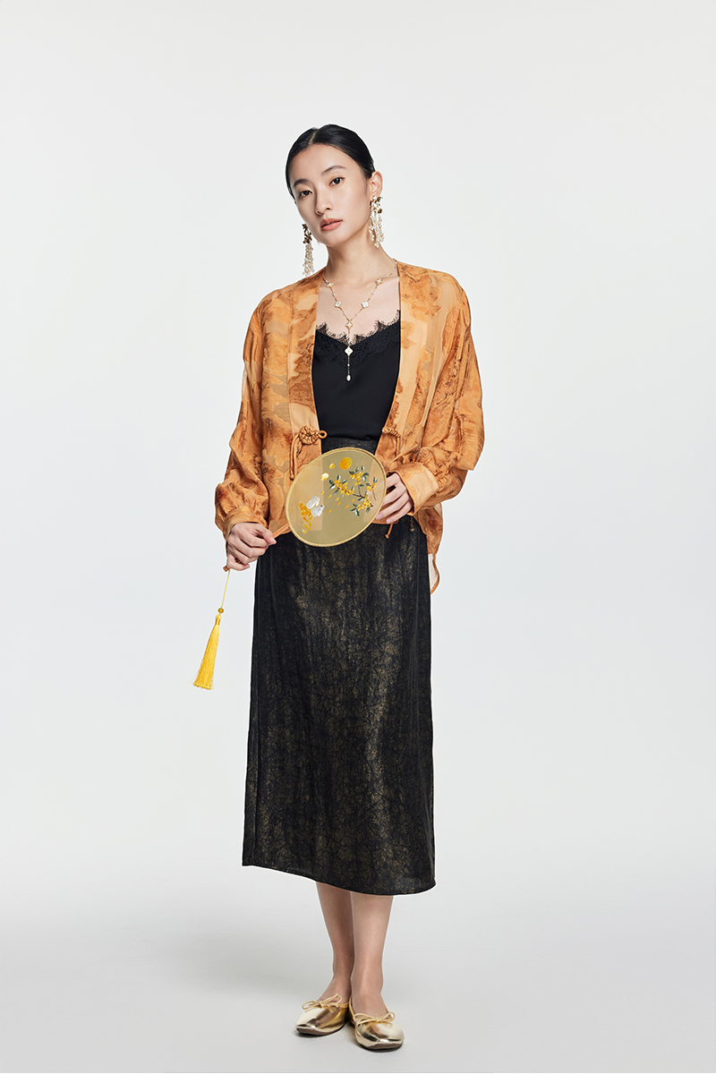 【国风艺术图案】图案灵感来自《潇湘奇观图》,松弛的版型,随着图案的游动变化,如江南的云雾山光,充满着灵动之气,展现女性的气质与涵养。
