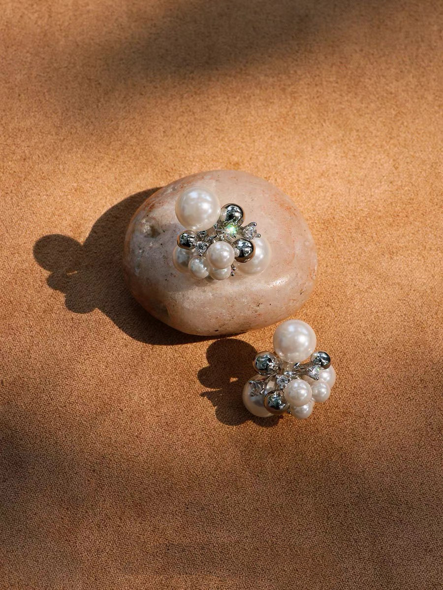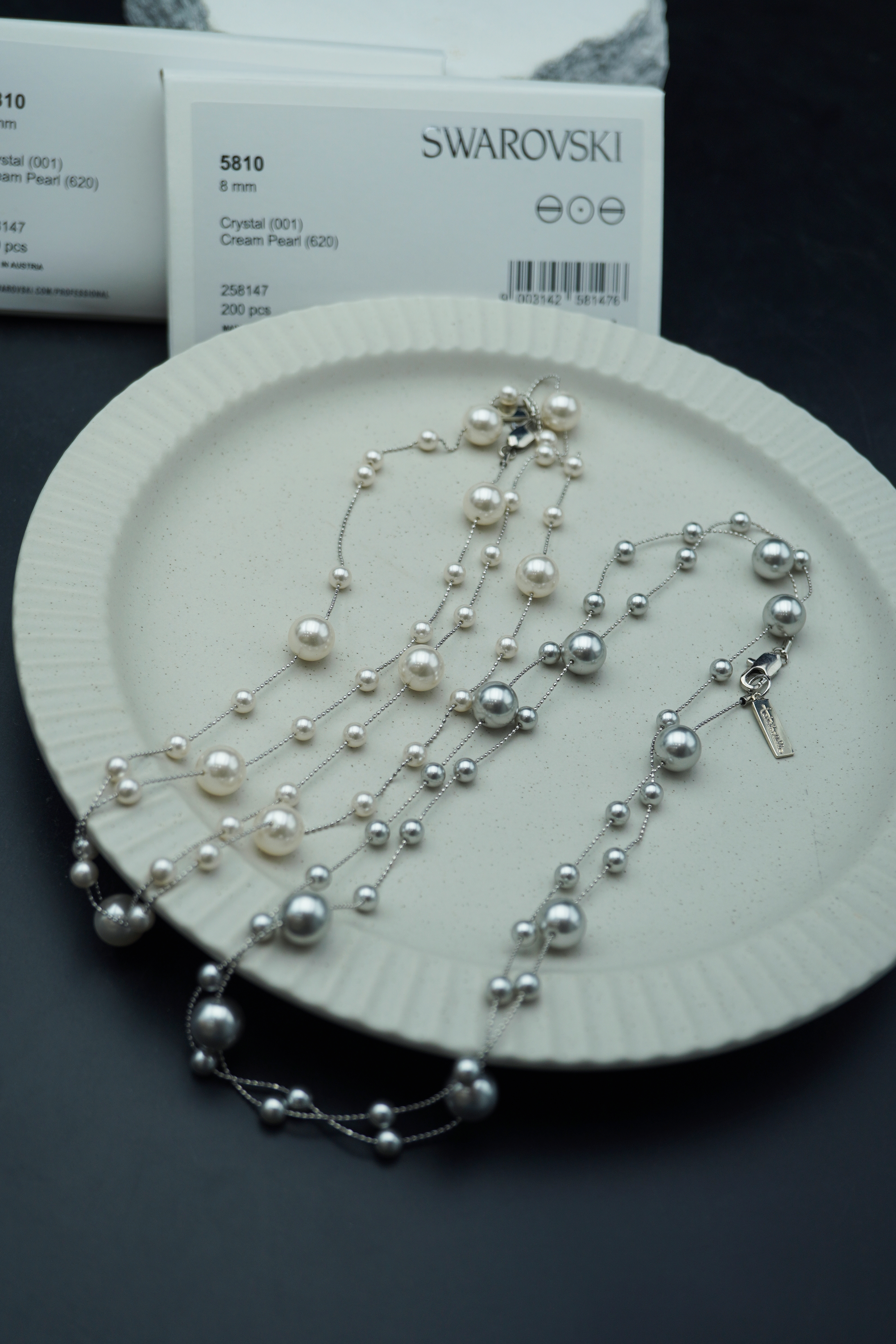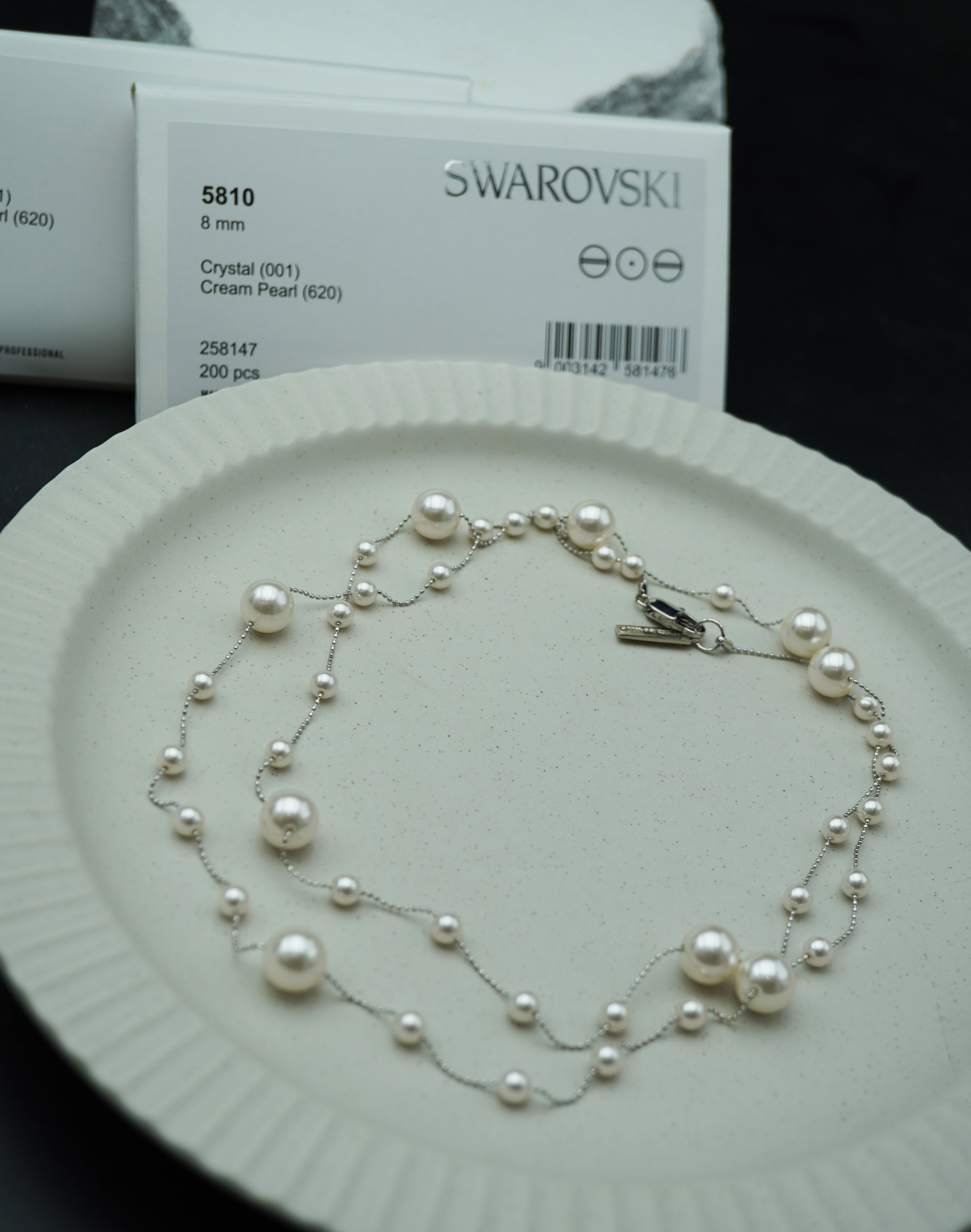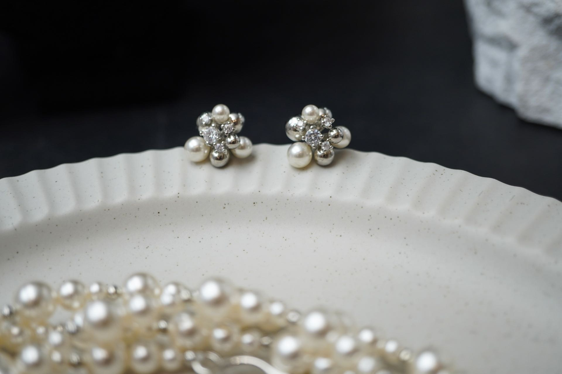 进口施华洛珍珠,全部手工精选,耳环镶嵌了真钻。