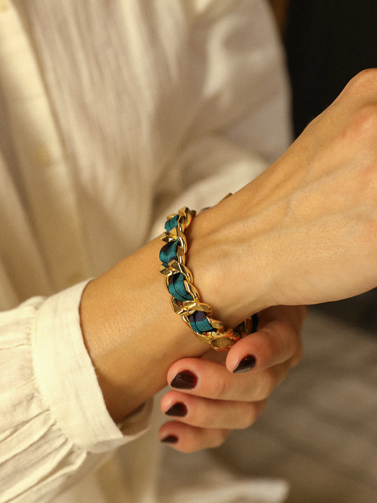 北京仓|AN-NEE-BRG-DECEMBRE-棕绿色 夏帕诺瓦 1cm 丝巾手镯[法国设计师]