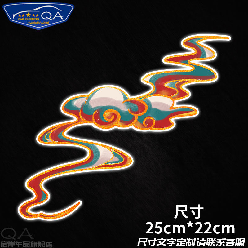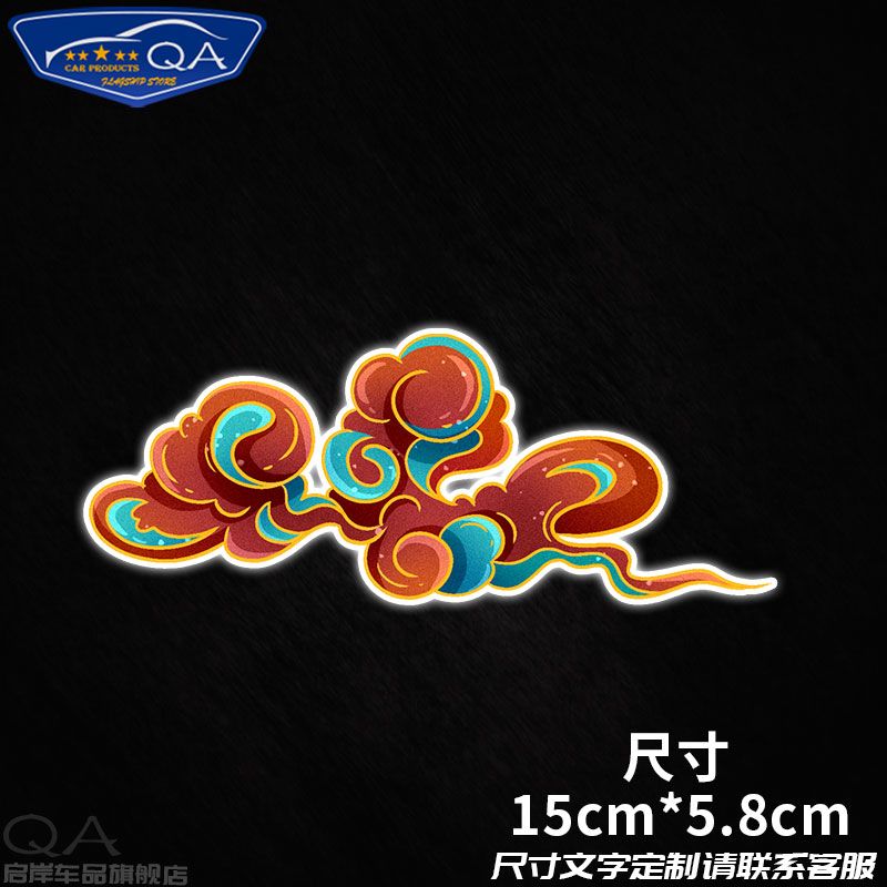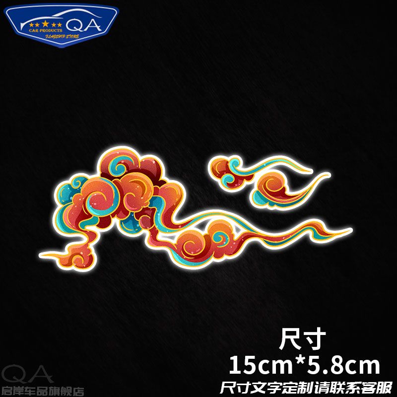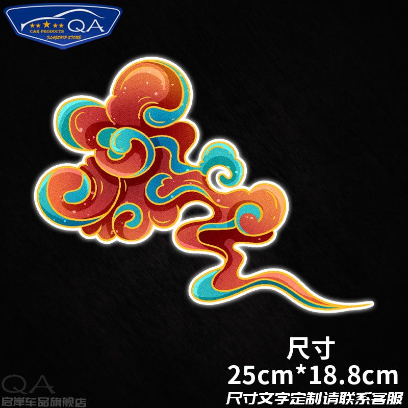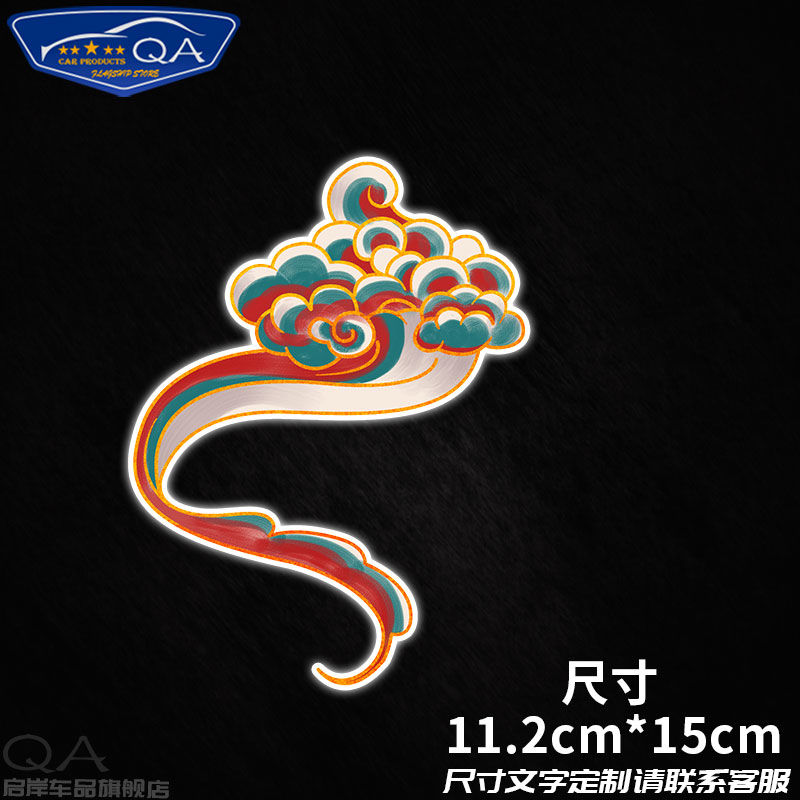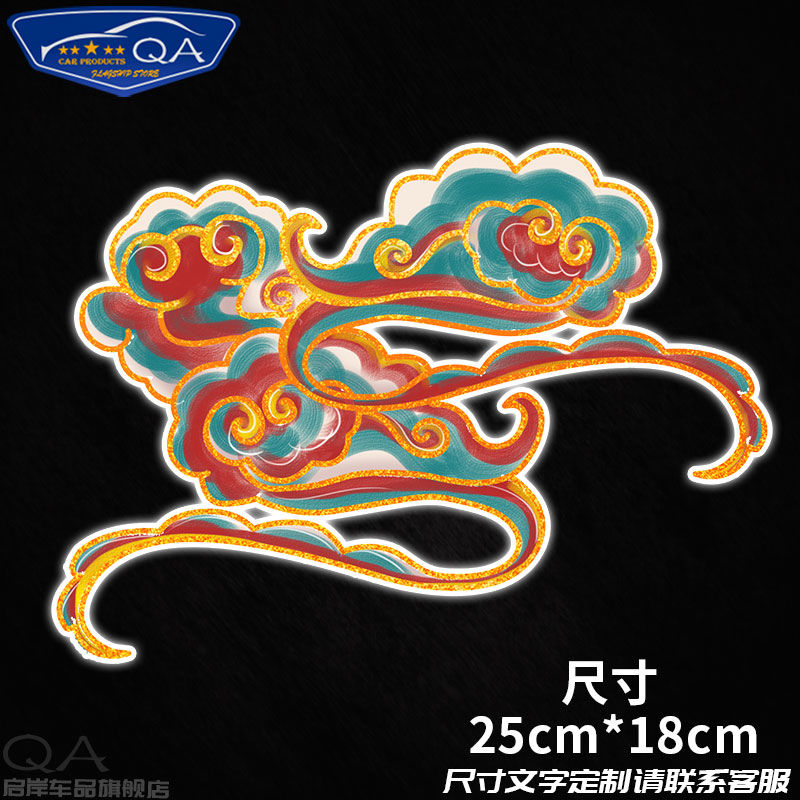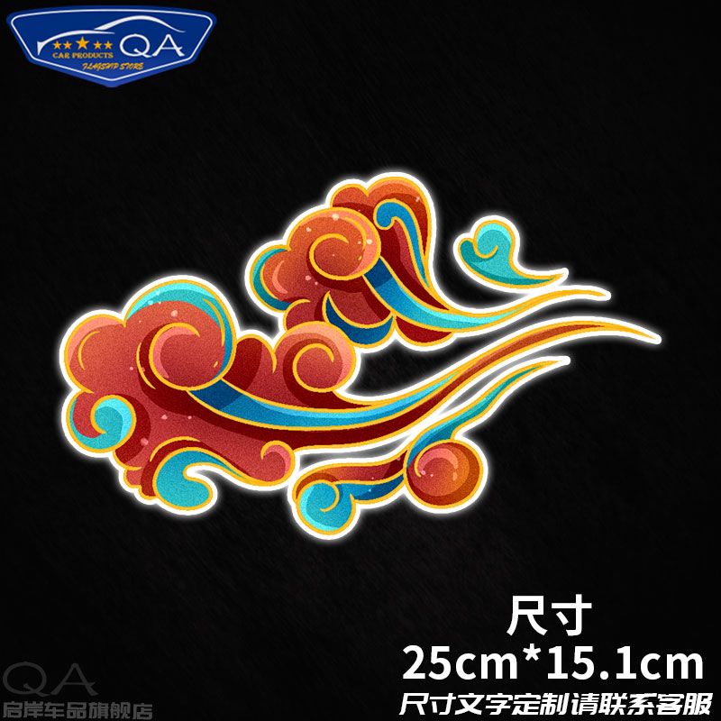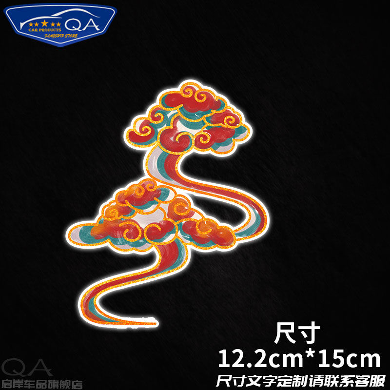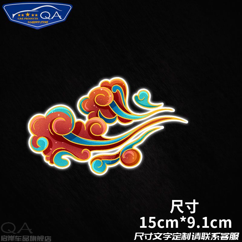 祥云金边国潮平安吉祥反光车贴笔记本电动摩托车身贴后窗玻璃贴