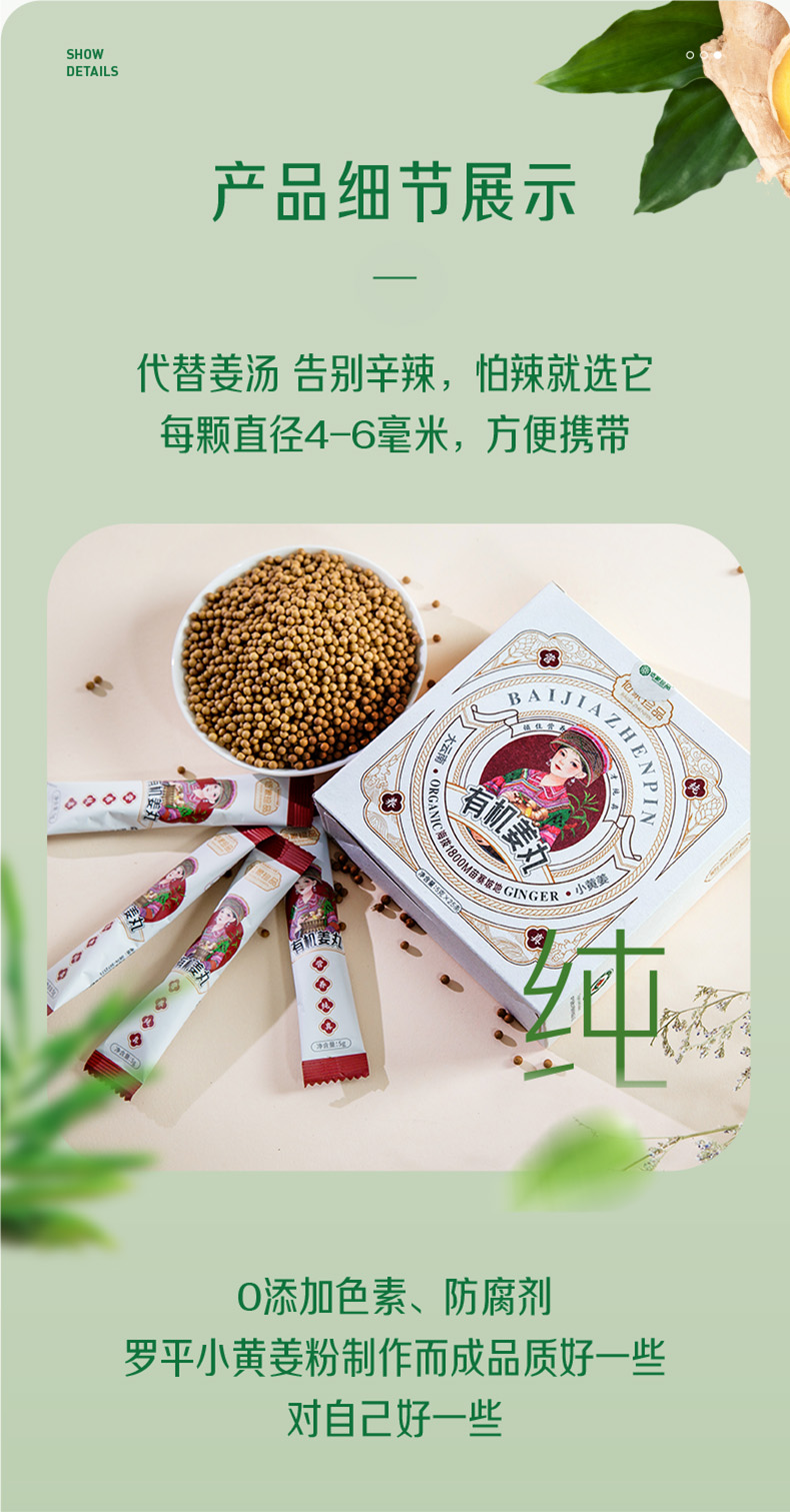 有机姜丸 有机姜参丸 有机姜粉 不辣浓香 驱寒祛湿 佰家珍品 姜丸(两种规格:瓶装/盒装) 独立小包装 方便携带