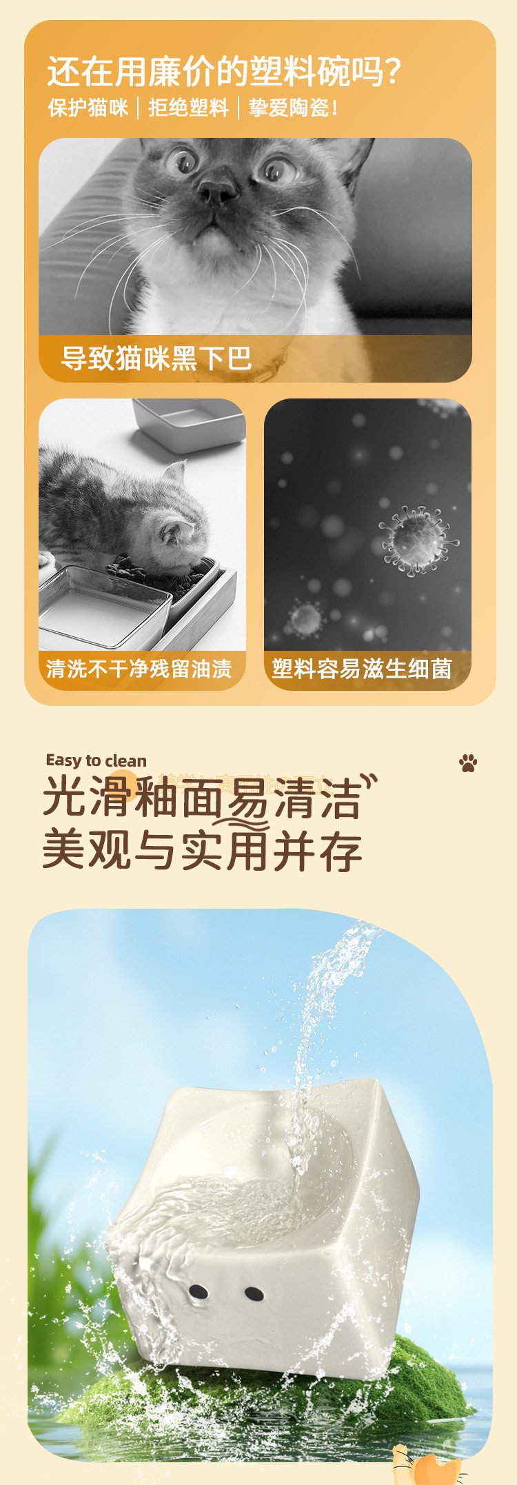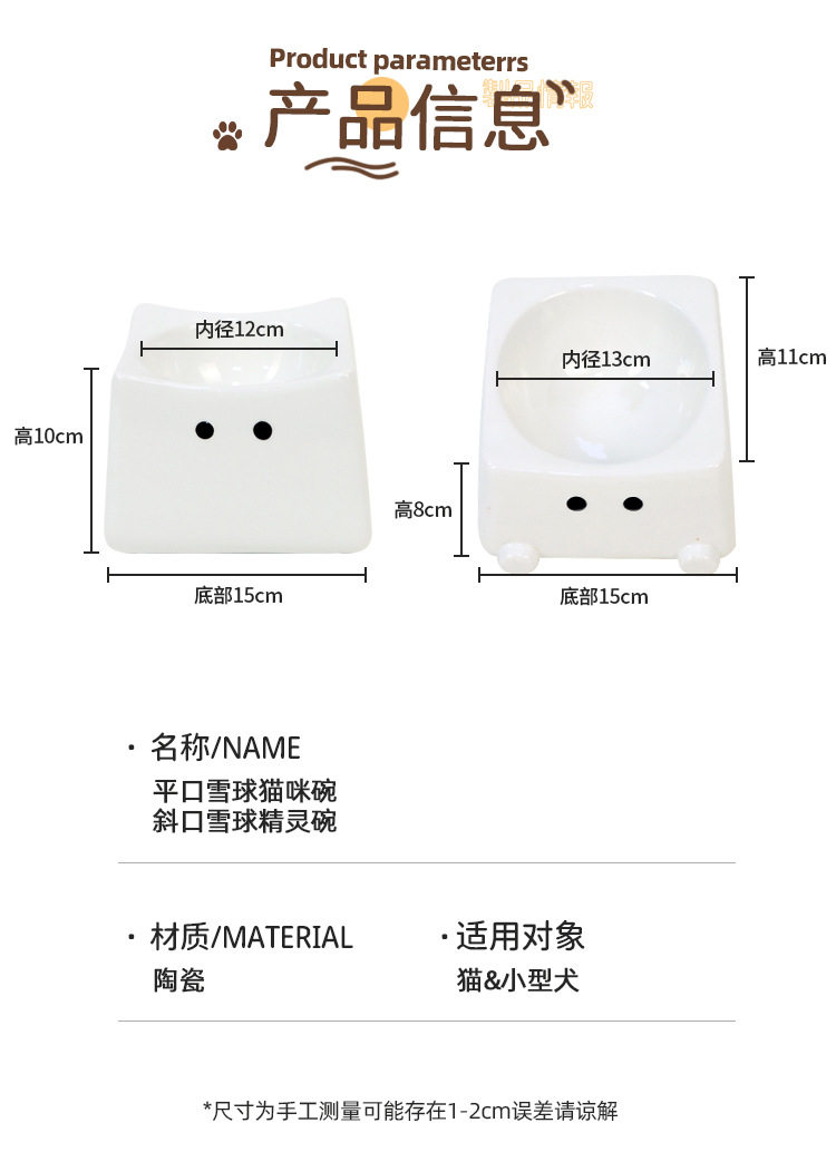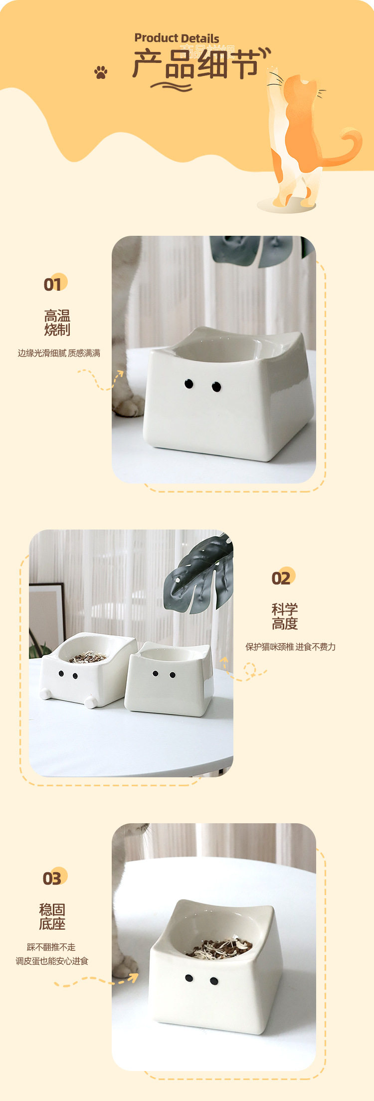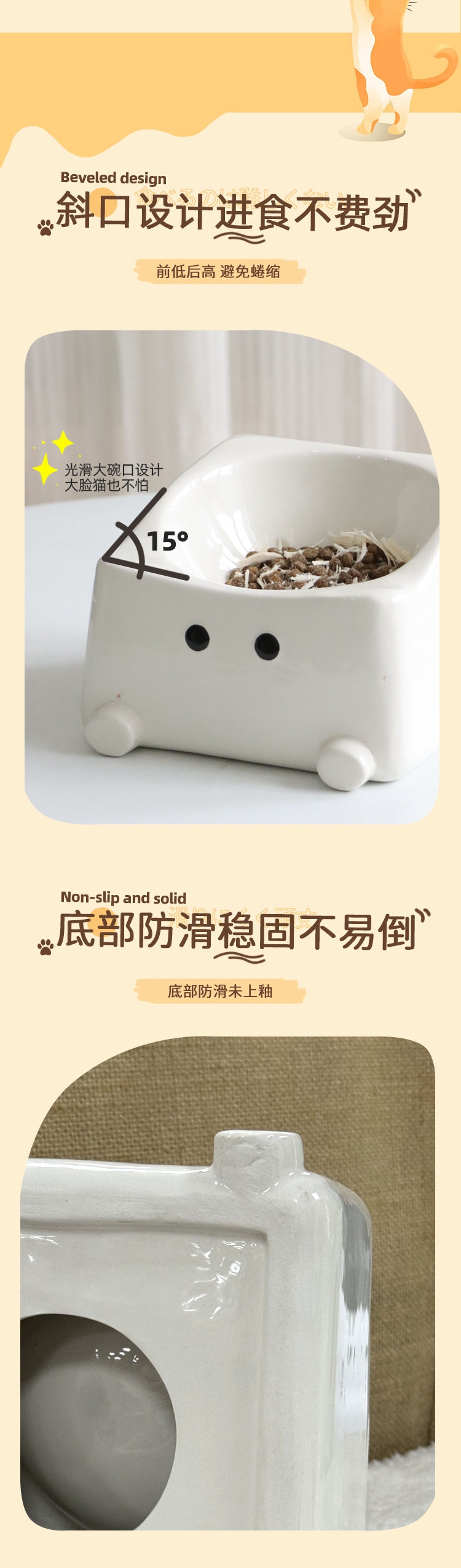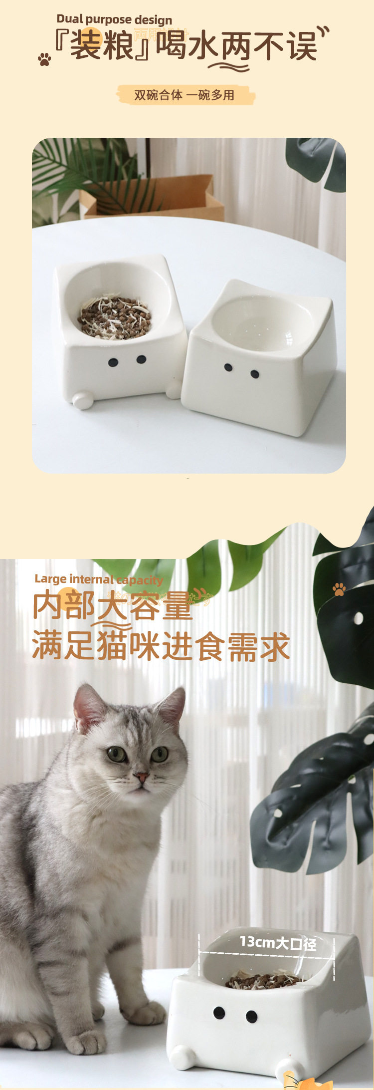 乐优派陶瓷猫碗高脚护颈猫咪斜口碗大容量防打翻精灵宠物碗黑下巴