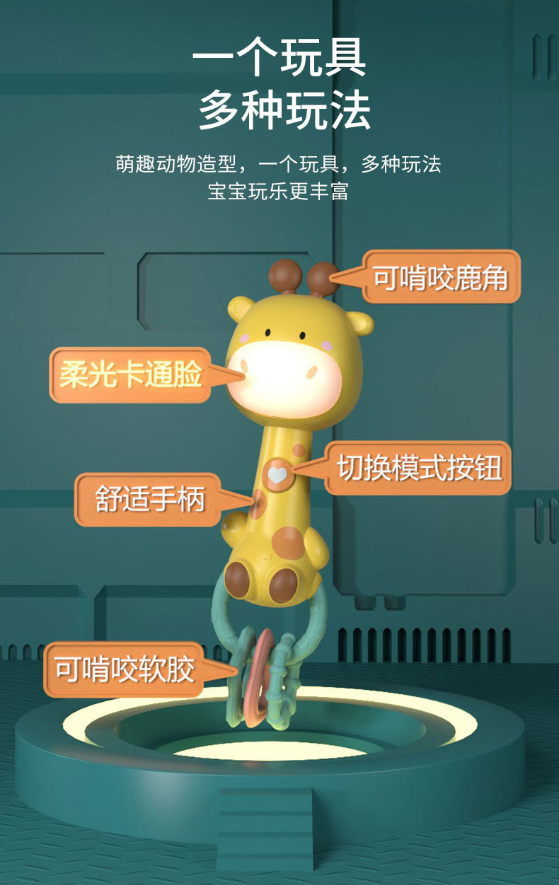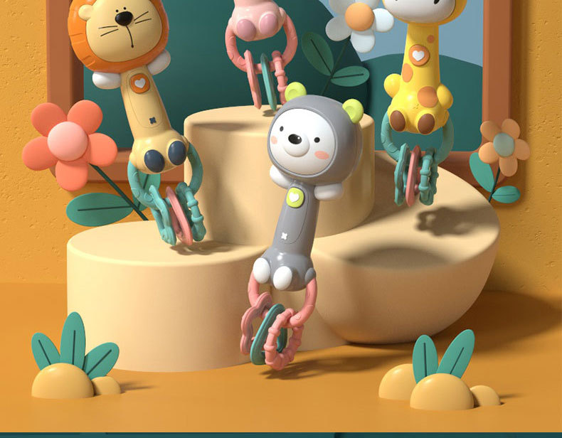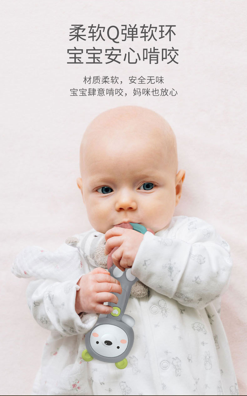 【动物声光摇铃 多种玩法更丰富!】婴儿玩具音乐手摇铃可咬3-6个月婴幼儿安抚哄娃宝宝0-1岁手抓玩具