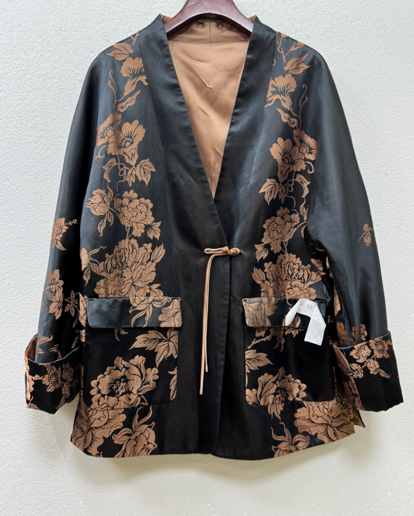 盛唐婧 | 轻奢时尚新中式老缎对花修身交领外套