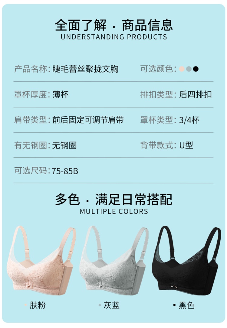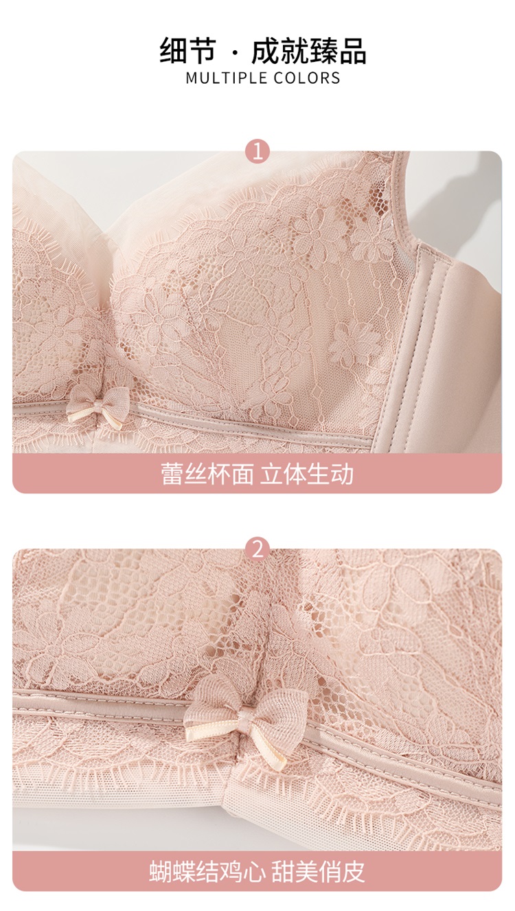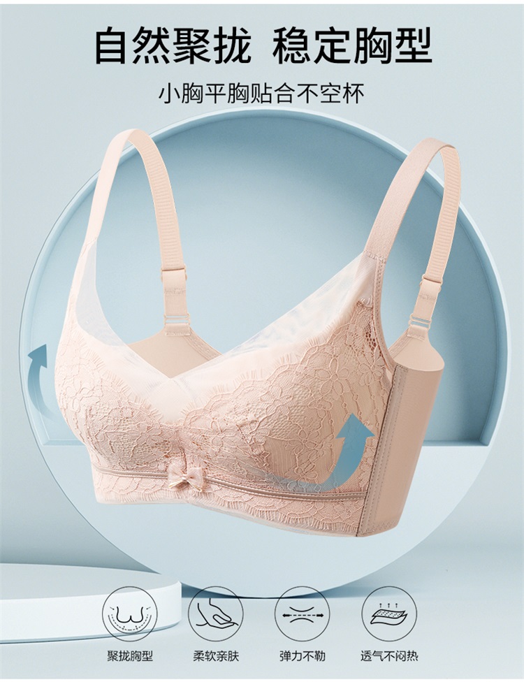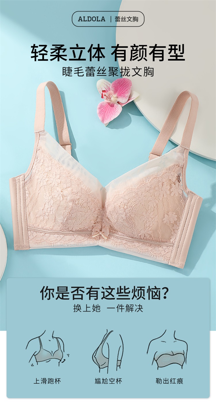 雅黛丽内衣女小胸聚拢睫毛蕾丝轻薄固定杯不跑杯收副乳无钢圈文胸