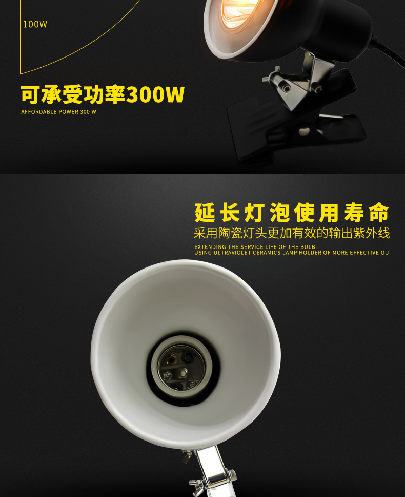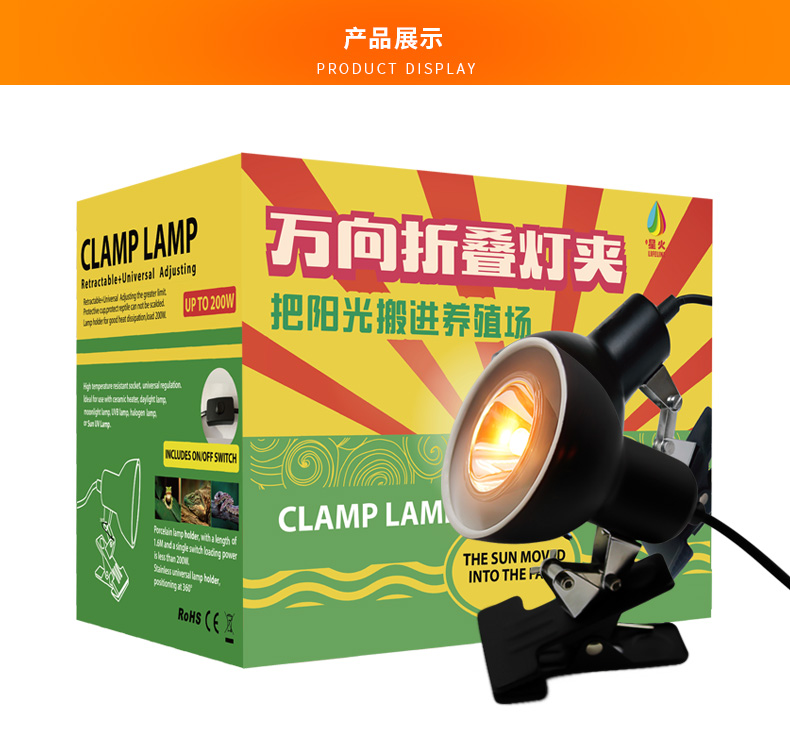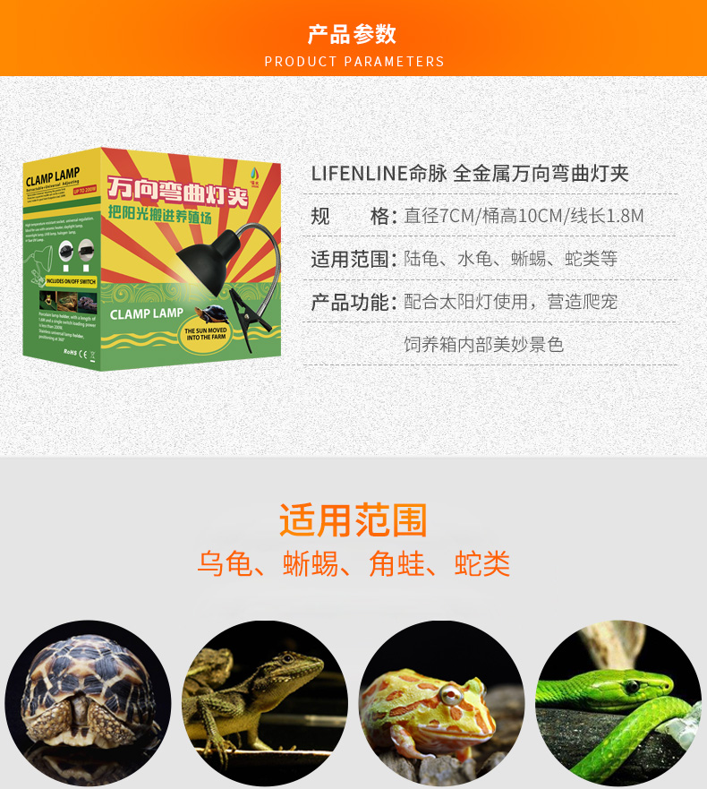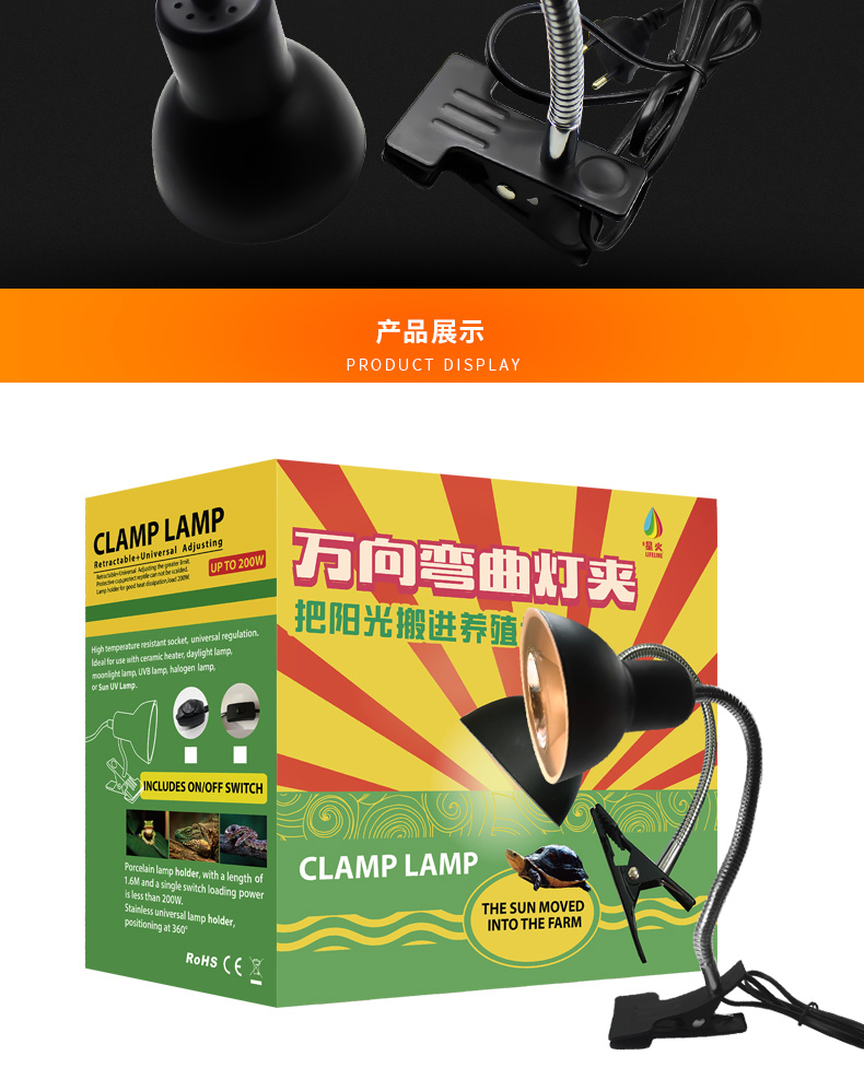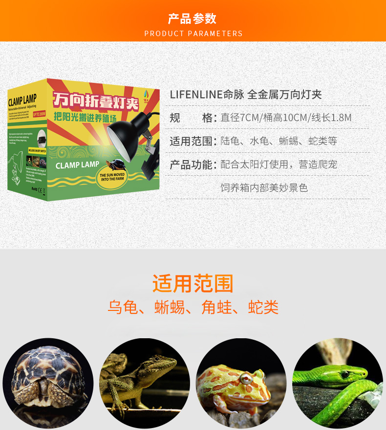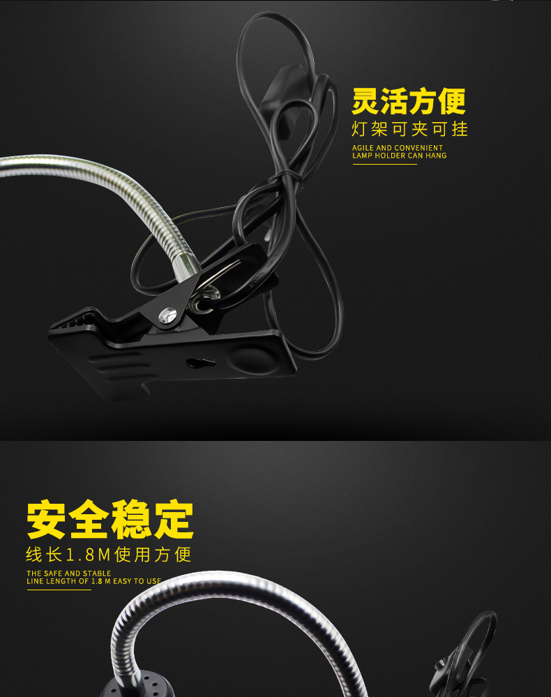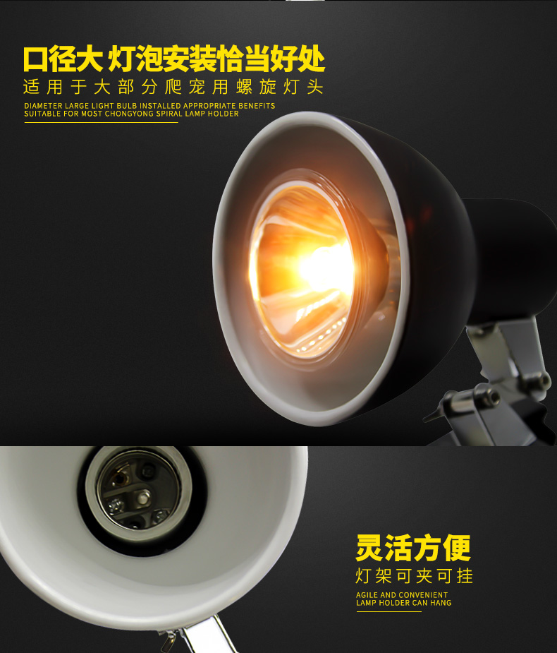 LIFELINE爬宠变色龙蜥蜴饲养箱万向折叠灯夹/弯曲灯夹龟缸360度灯架-分销