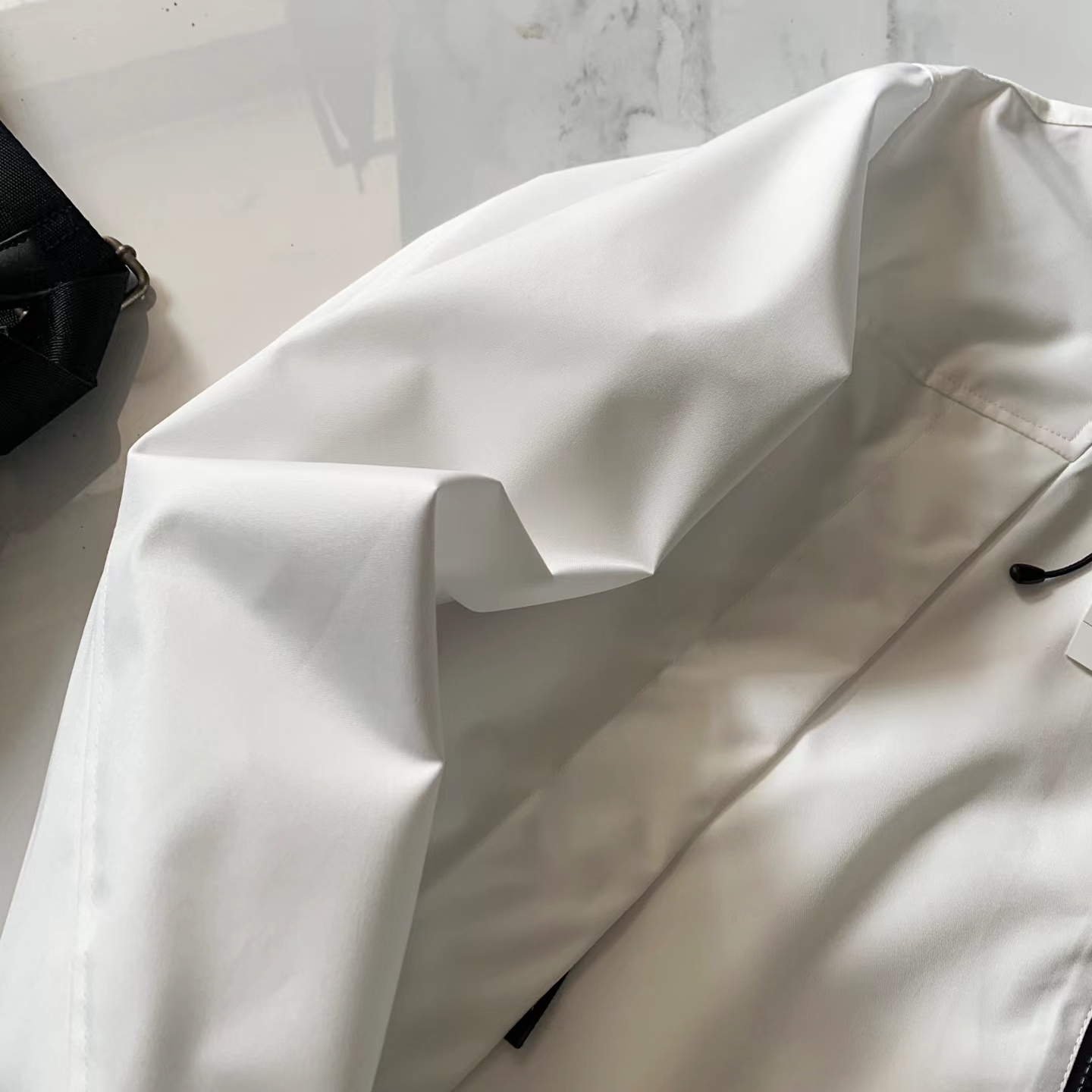 春季秋季连帽时尚个性拼接万针刺绣男女情侣款冲锋衣夹克外套 !刺绣防风防水单层冲锋衣,繁琐的细节工艺 打造出非凡的上身气场。休闲连帽设计款,下摆设计隐形伸缩抽带,袖口防风设计,防水性能良好,整体轻质便携。胸前和后背重工立体刺绣LOGO,遥相呼应,走针精密有型,看着就非常大气上档次。识货的一看就懂的。袖口刺绣字母,举手投足之间散发属于您的光芒。 透气和防风功能,面料具有抗皱效果,顺滑的面料,保证的版型效果。细节jing致,这种工艺设计实在为之惊叹!上身简易搭配款式大方时尚,日常百搭!内里做工整齐做工到位,喜欢gao端品质的 别错过。
