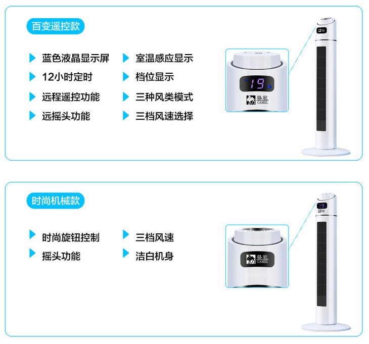 【风扇】*骆驼牌 家用静音遥控落地台式无叶塔扇