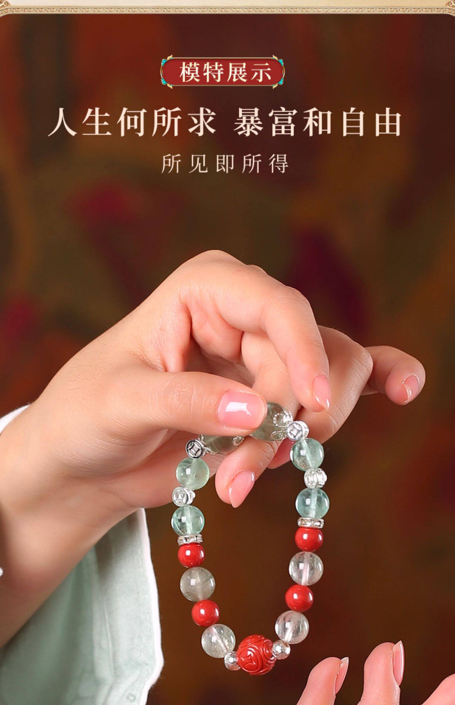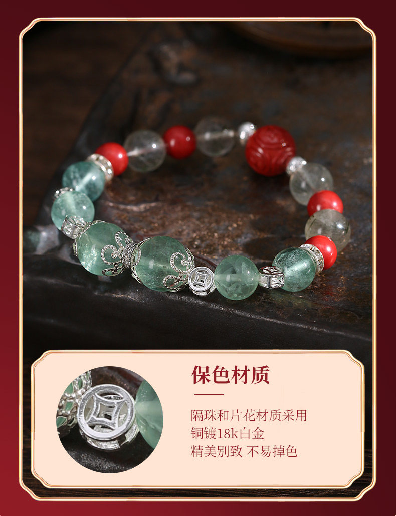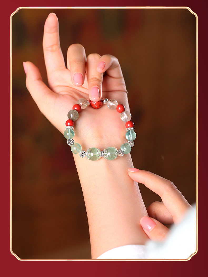 【祈愿吉品】四方来财绿发晶绿萤石水晶手链朱砂手串