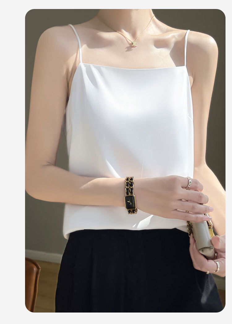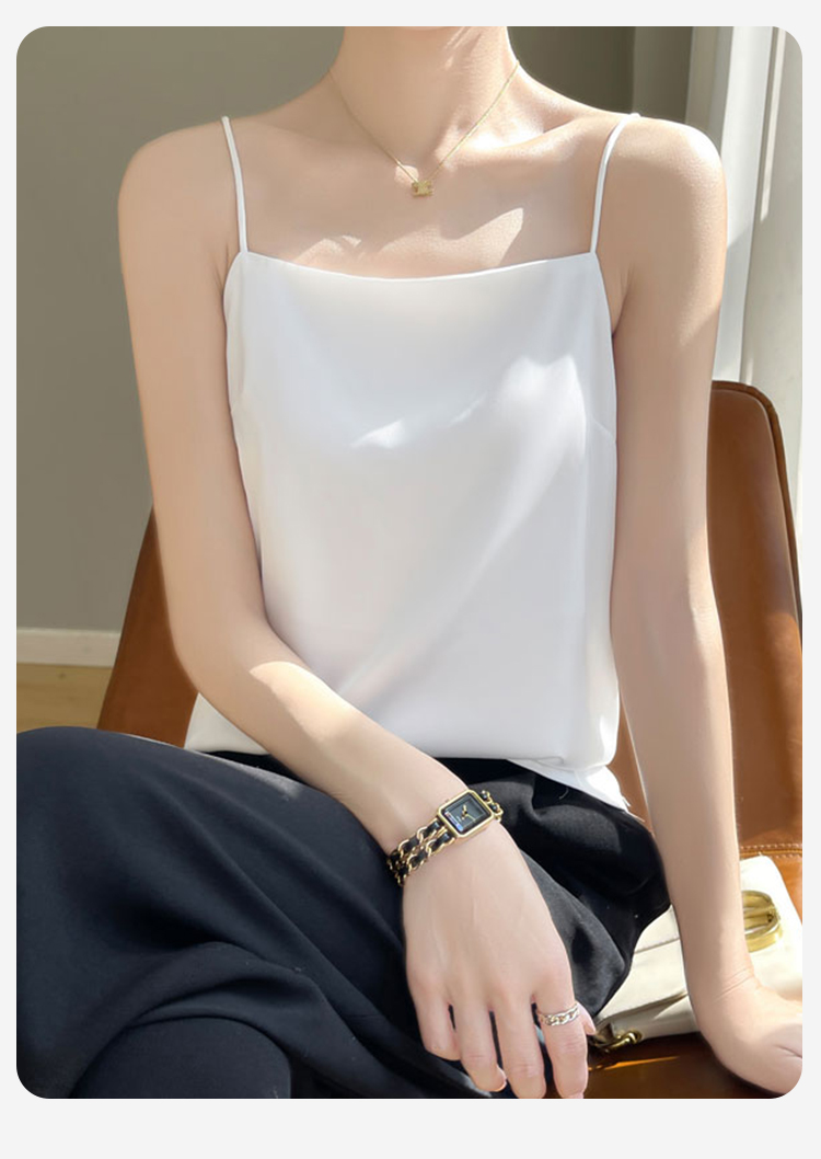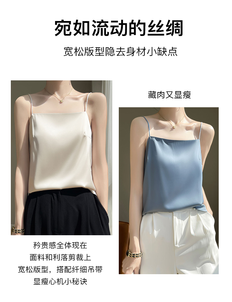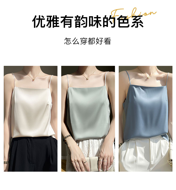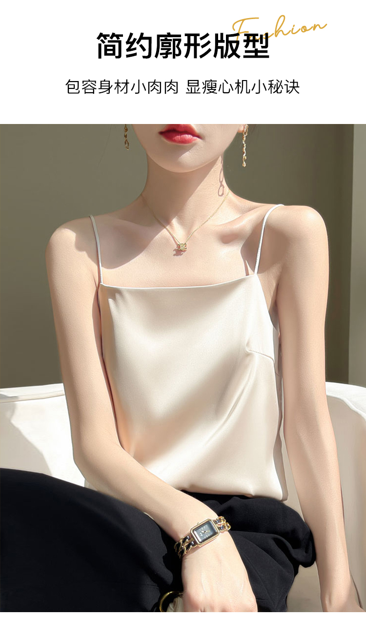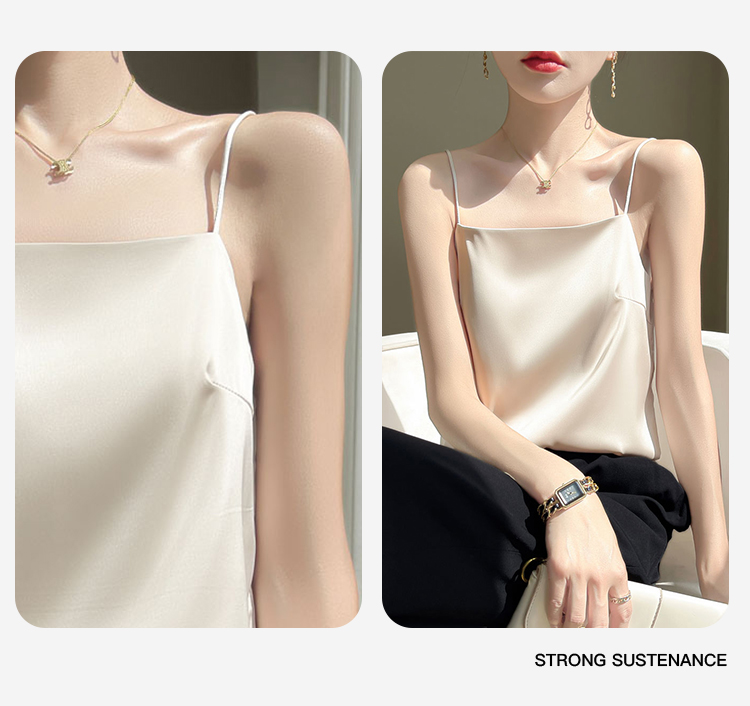 春夏轻奢珠光缎面高级感内搭吊带打底背心女一字领口百搭防走光D19一字领吊带