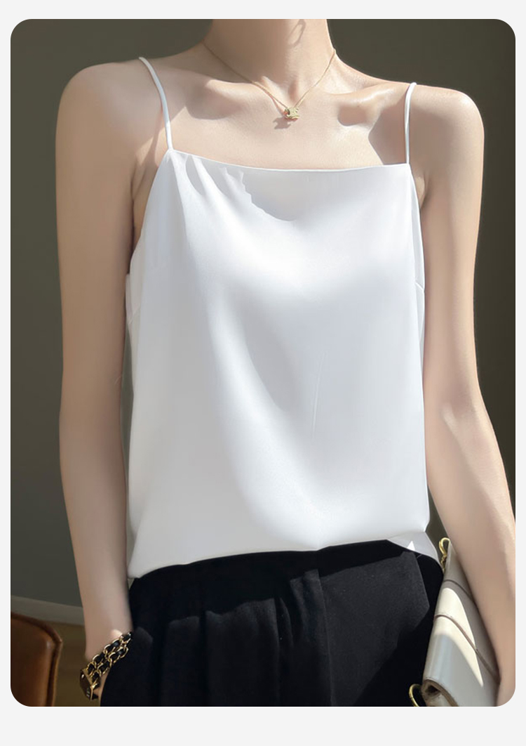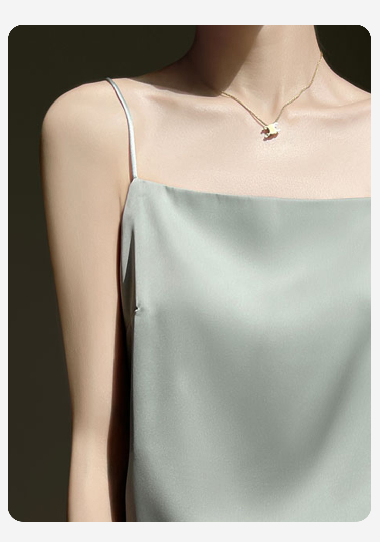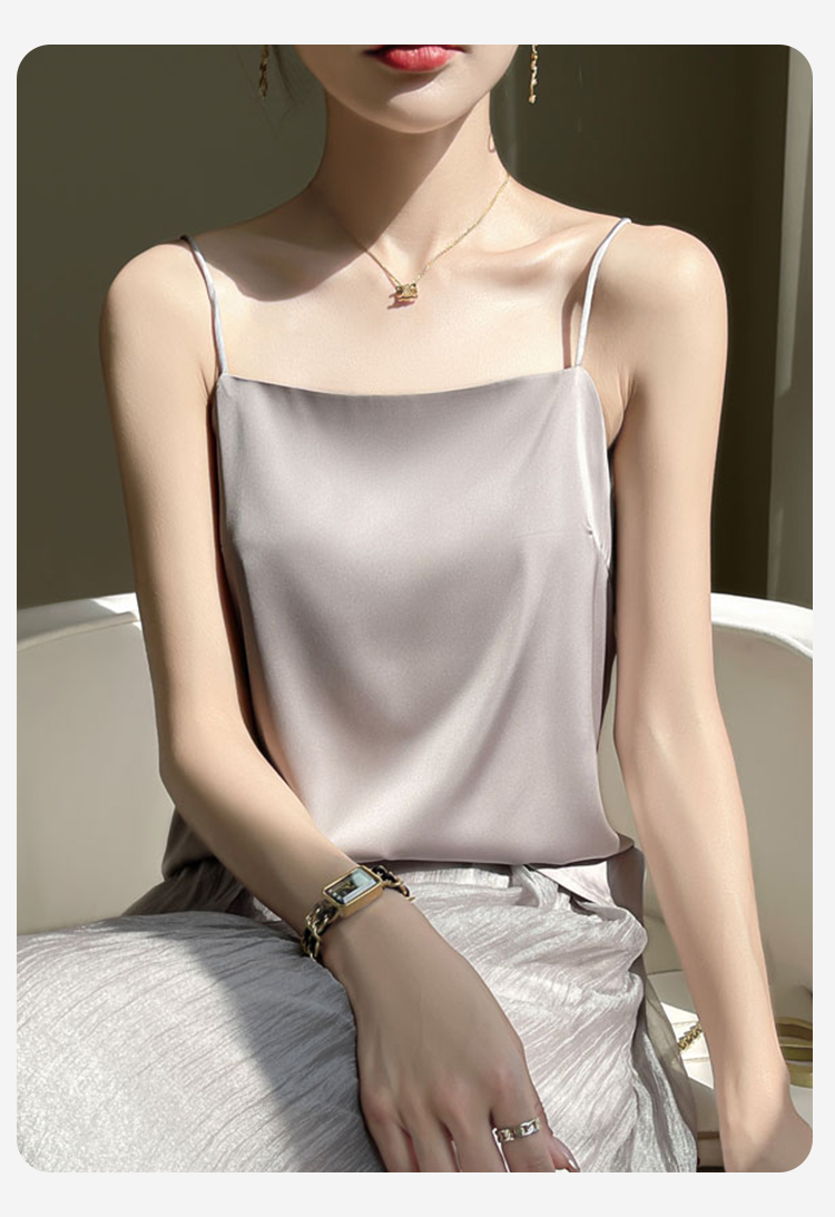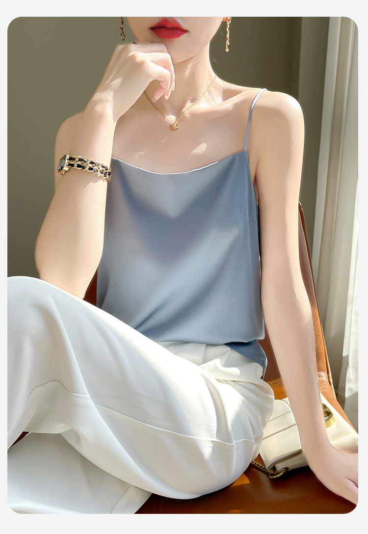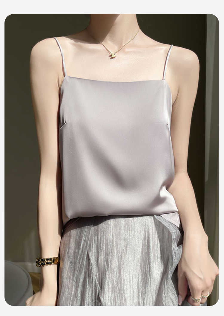 春夏轻奢珠光缎面高级感内搭吊带打底背心女一字领口百搭防走光D19一字领吊带