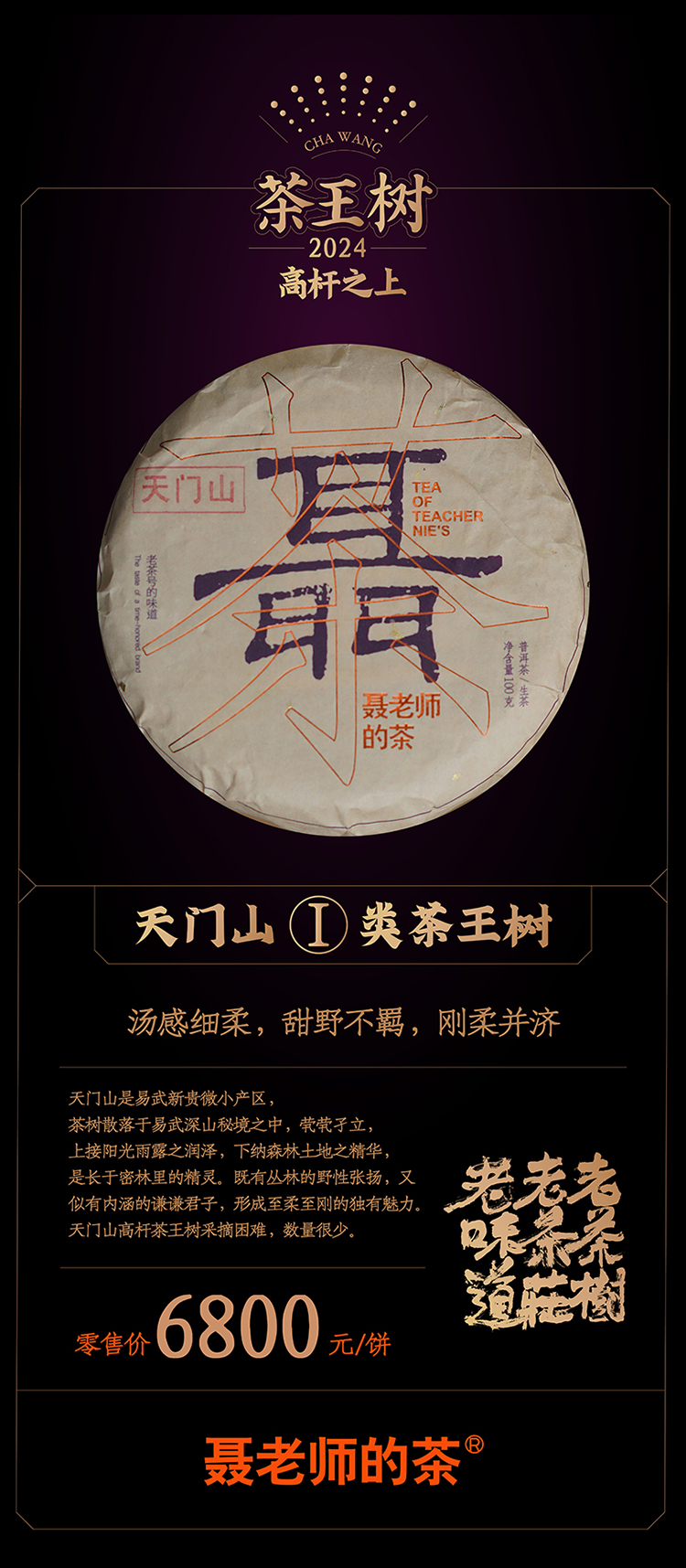 【聂老师的茶】2024年天门山一类茶王树100克生饼