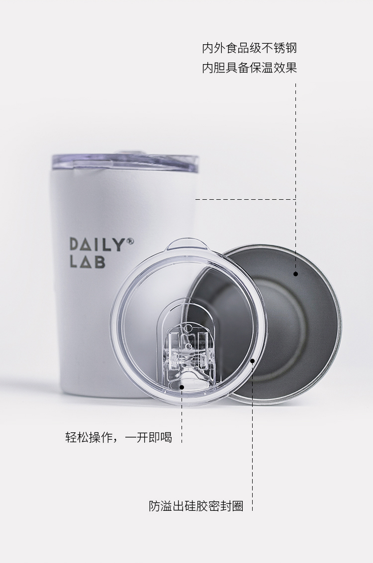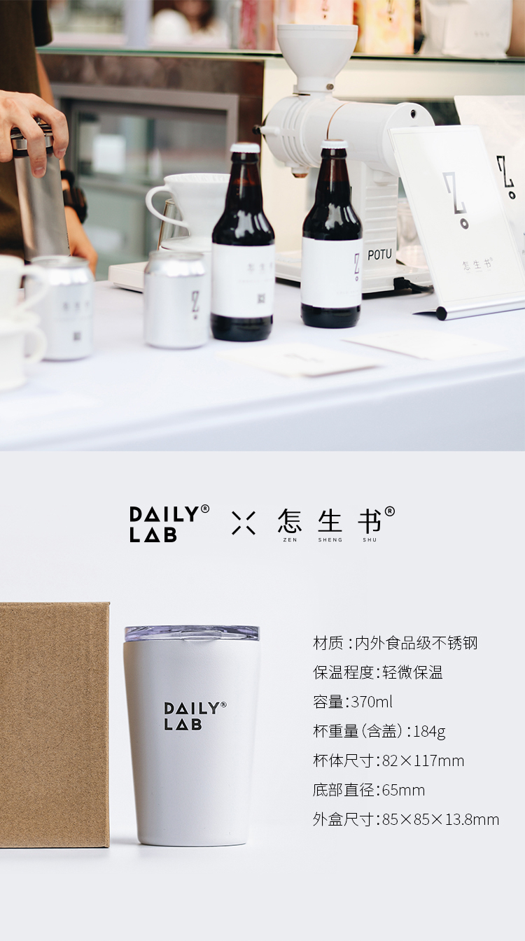 DAILY LAB x 怎生书 限定联名咖啡杯370ML不锈钢随行保温杯 白色 咖啡杯