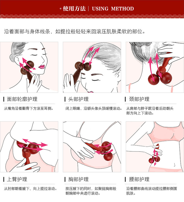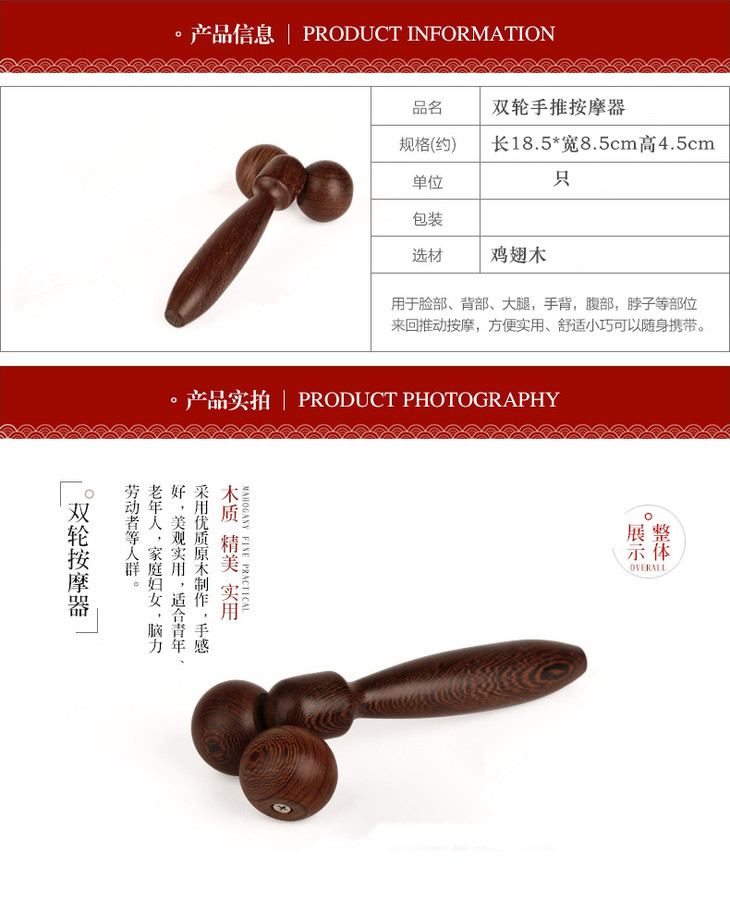 鸡翅木双轮手推按摩器 适用于脸部、背部、大腿、腹部等部位