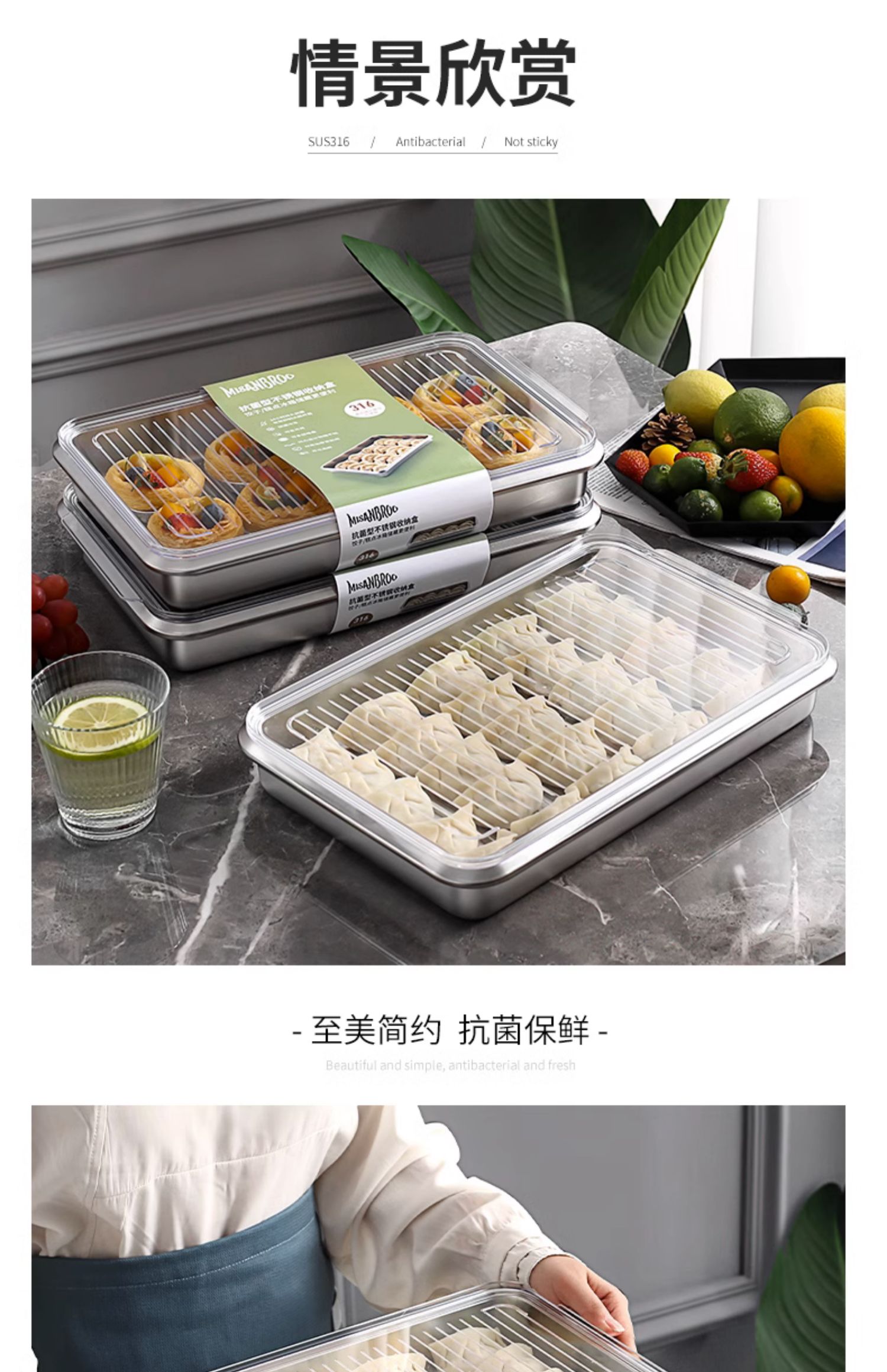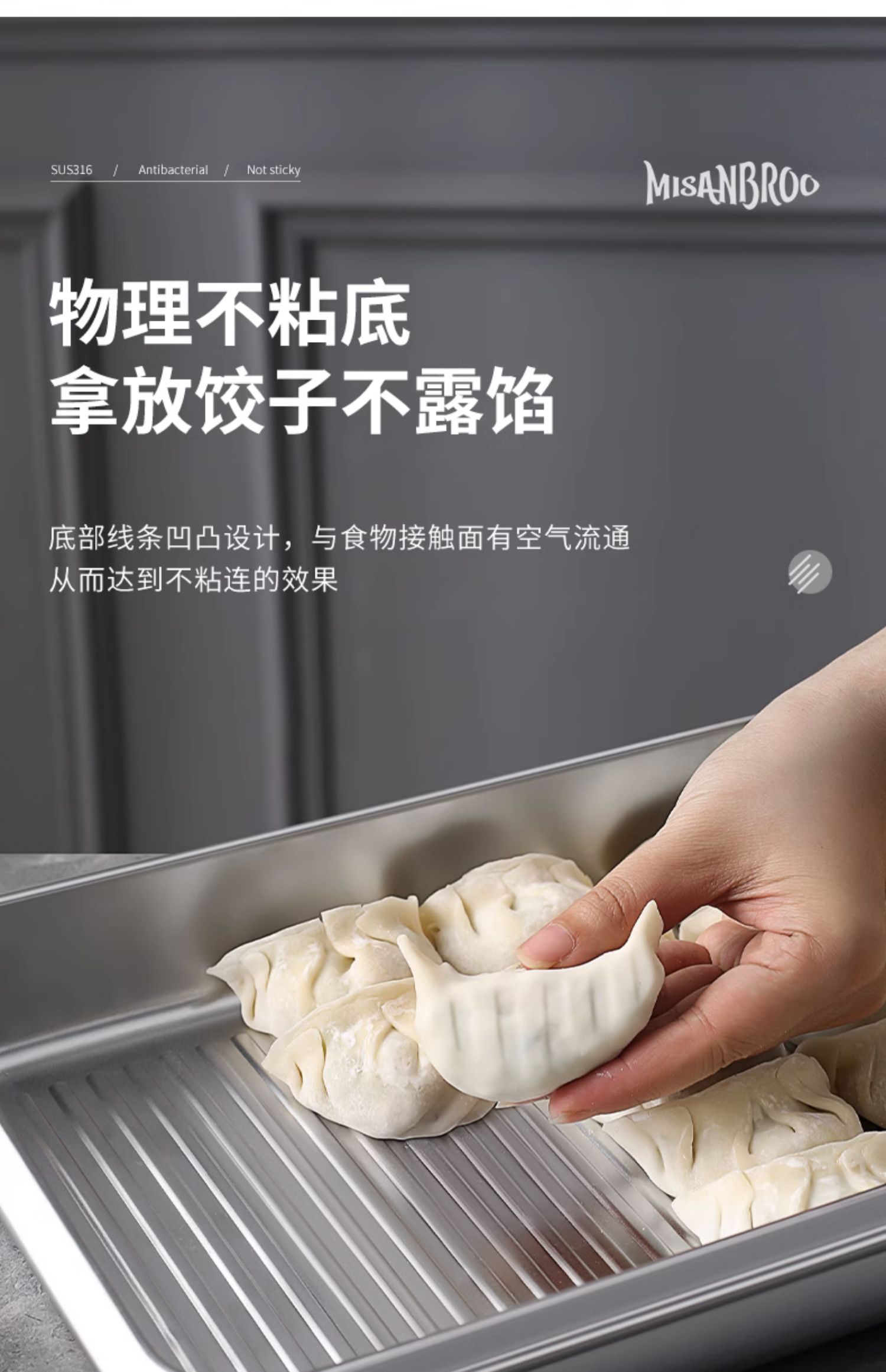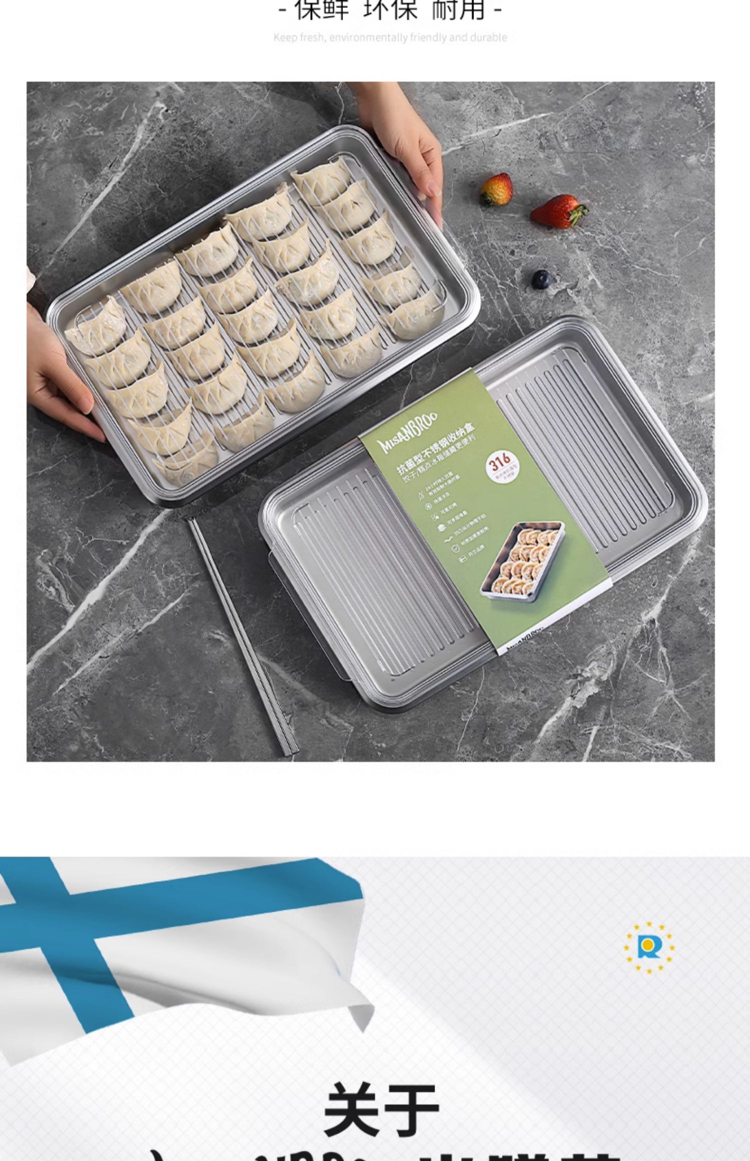 芬兰MISANBROO316不锈钢饺子盒馄饨收纳盒冰箱冷冻水饺专用保鲜盒
