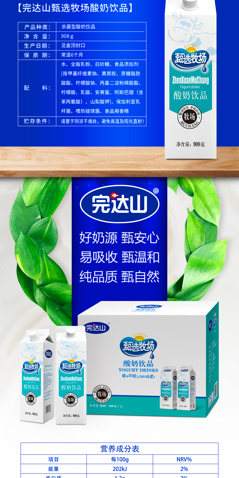 完达山不添加蔗糖乳酸菌饮品428g*12盒