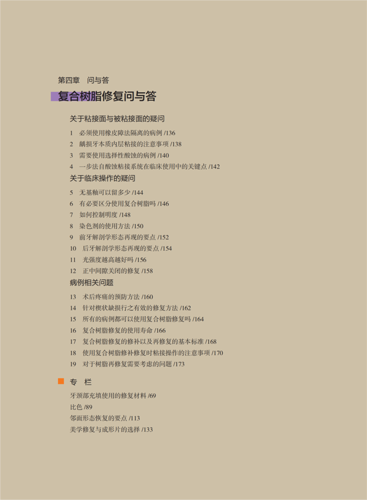 《复合树脂修复实战攻略》一书为我们提供了一个全面的实战蓝本。本书从复合树脂修复必备的材料的选择及应用入手,分别介绍了树脂修复全流程中的多个步骤的操作细节要点,通过9个不同的临床病例详细阐述了各种病例的术前解析、重要操作流程及获得成功的关键点,可作为口腔医生完成临床操作的教科书。此外,该书还精心总结了19个复合树脂修复过程中常见的问题与解答,在答疑解惑中又强化了临床操作要点。本书从材料到理论到操作技能,综合性极强,可成为口腔科医生的应用指南,既可反复阅读吸取精华指导临床操作,也可以作为临床工作的指导用书。