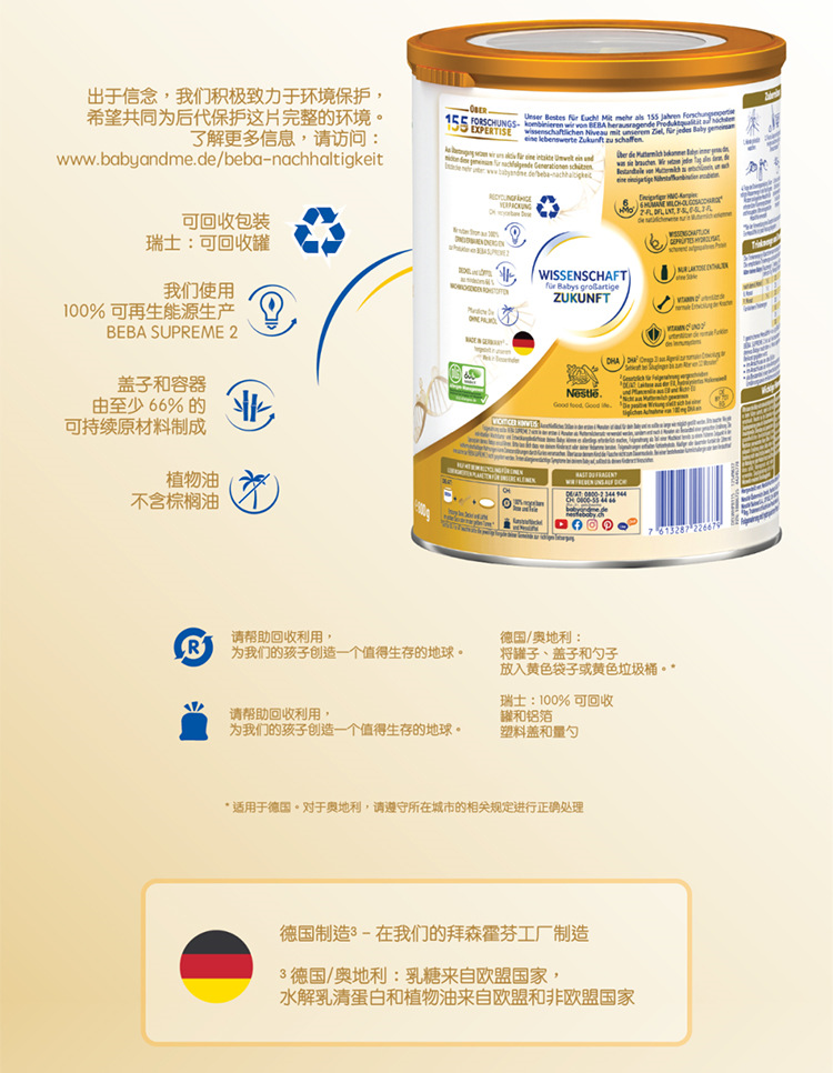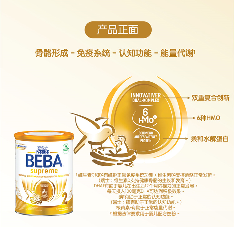 【保税仓】2024新版 德国雀巢贝巴BEBA至尊版6HMO超高端新生儿婴幼儿奶粉2段800g