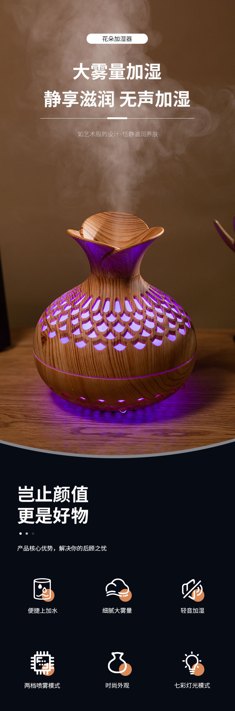 【严选❗️能当小夜灯的花朵加湿器】静享滋润,无声加湿,如艺术般的设计,恬静滋润养肤,空调伴侣创意花瓶家用小型车载简约