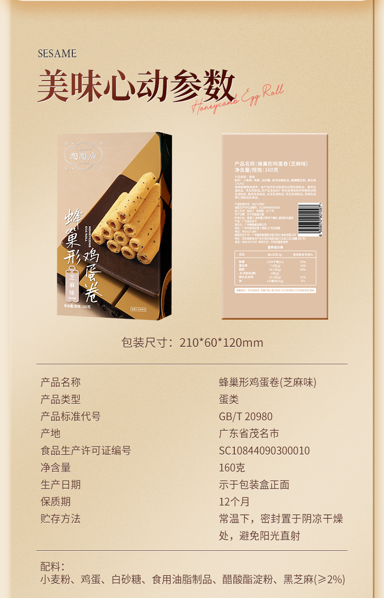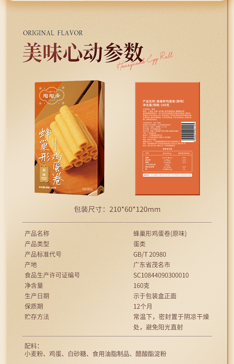 【陶陶居-手信 】蜂巢型鸡蛋卷160g 香浓蛋味 入口松化