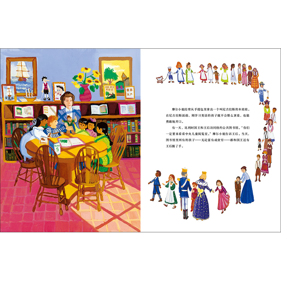 《摩尔小姐:儿童图书馆的推动者》是广西师大出版社魔法象图画书王国推出的作品之一。