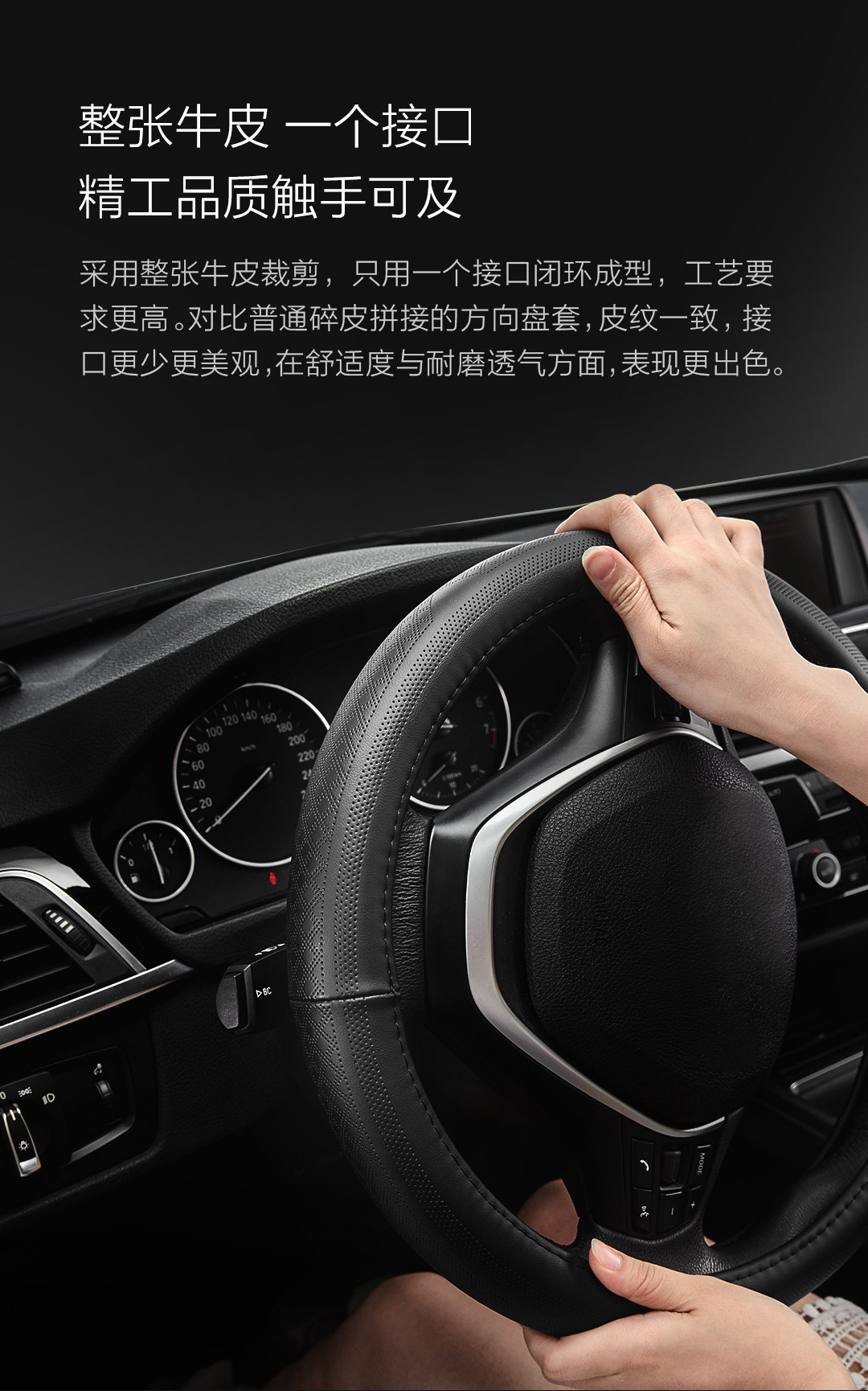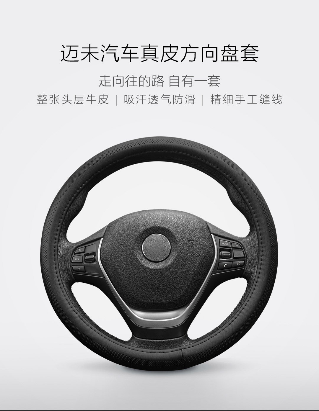 迈未(MAIWEI)汽车真皮方向盘套 头层牛皮 吸汗透气防滑 O型/D型可选