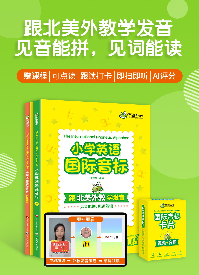 华研外语 小学英语国际音标 书全彩图解小学生英语音标和自然拼读快速记背单词入门教材音标发音口型图视频课程教学课件54张音标卡片