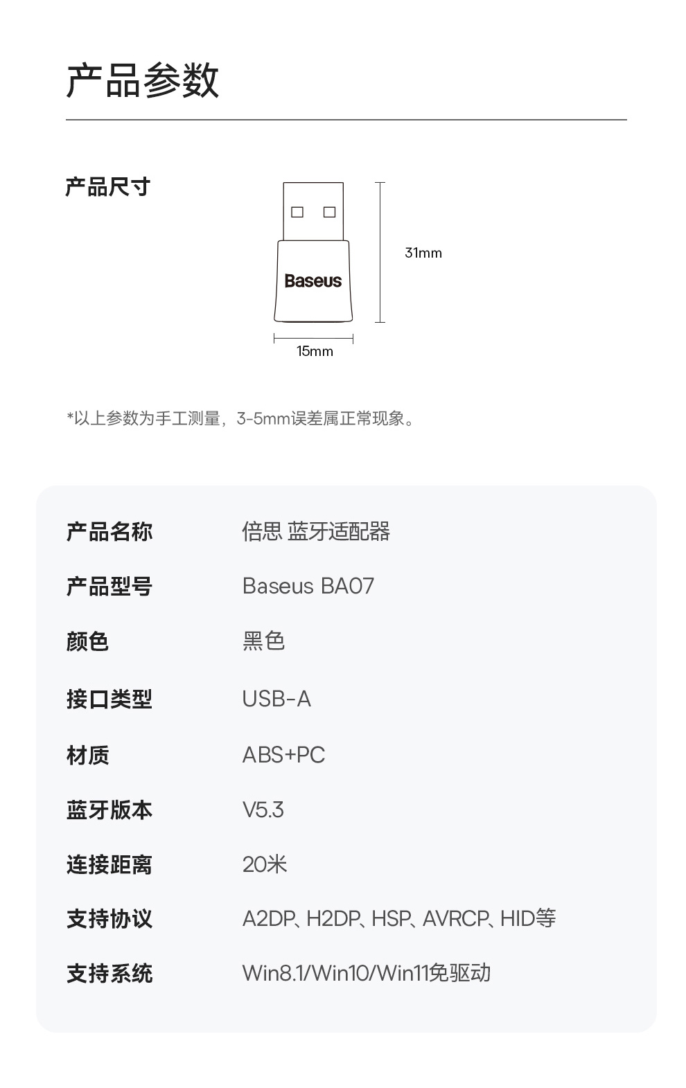 倍思 BA07 蓝牙适配器