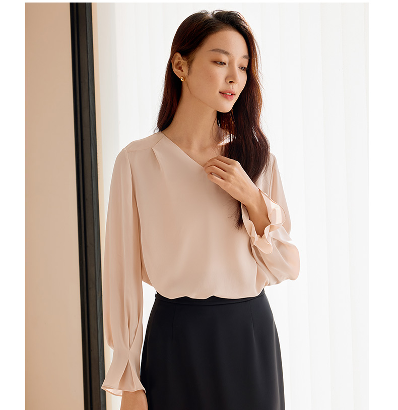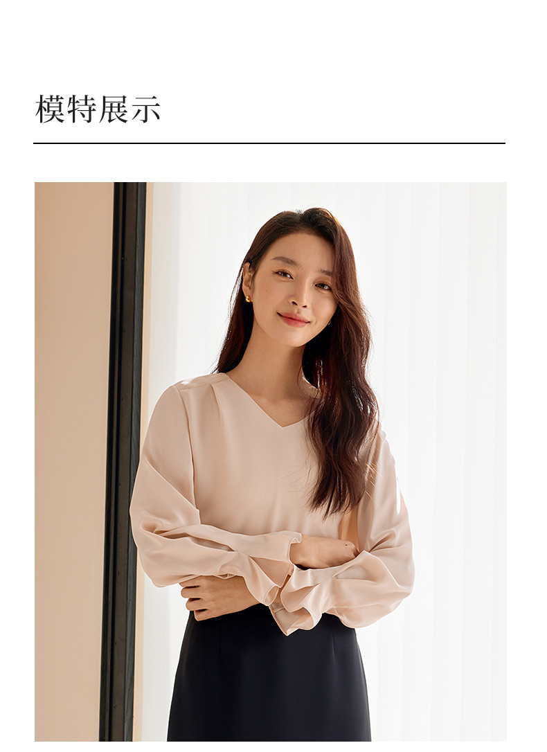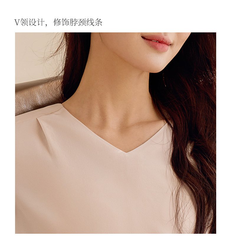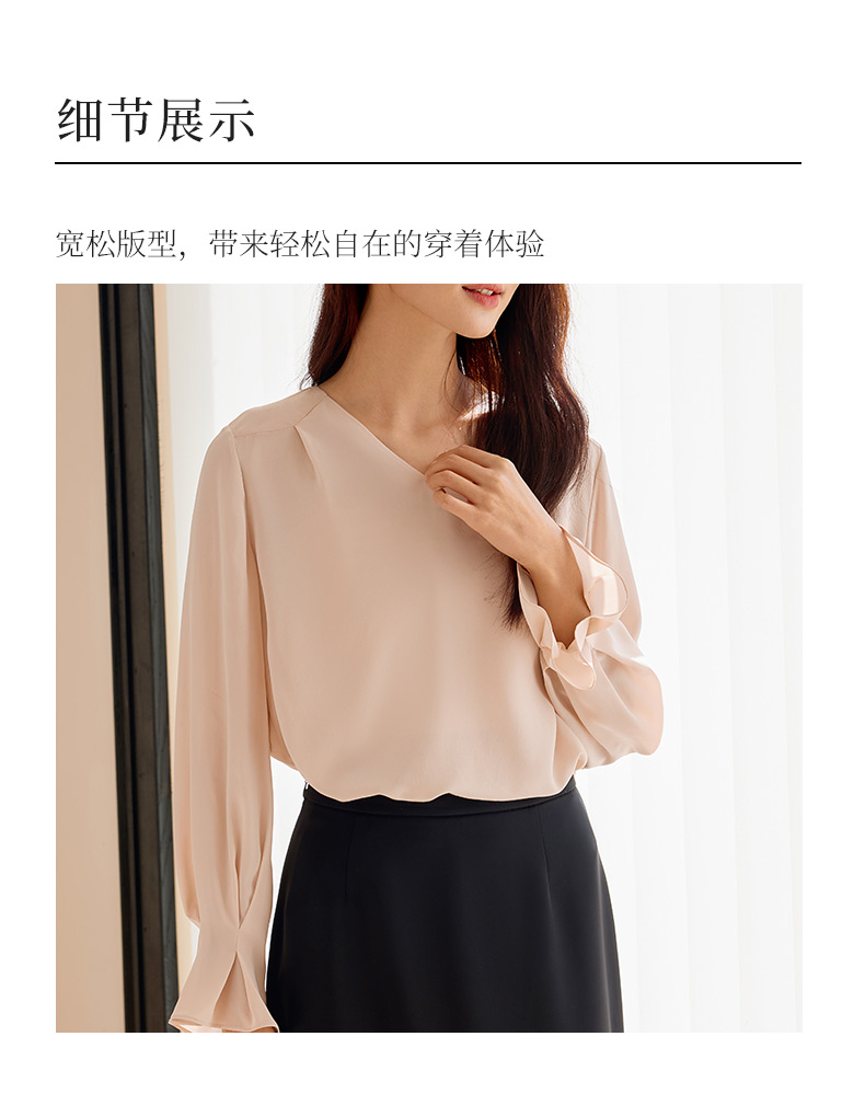 玳莎V领重磅真丝衬衣女士100%桑蚕丝宽松花瓣袖上衣2025新款春季 FA31312