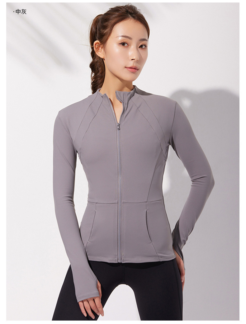 唤醒身心~显瘦有曲线!立领拉链速干修身运动长袖瑜伽上衣运动服外套跑步健身服