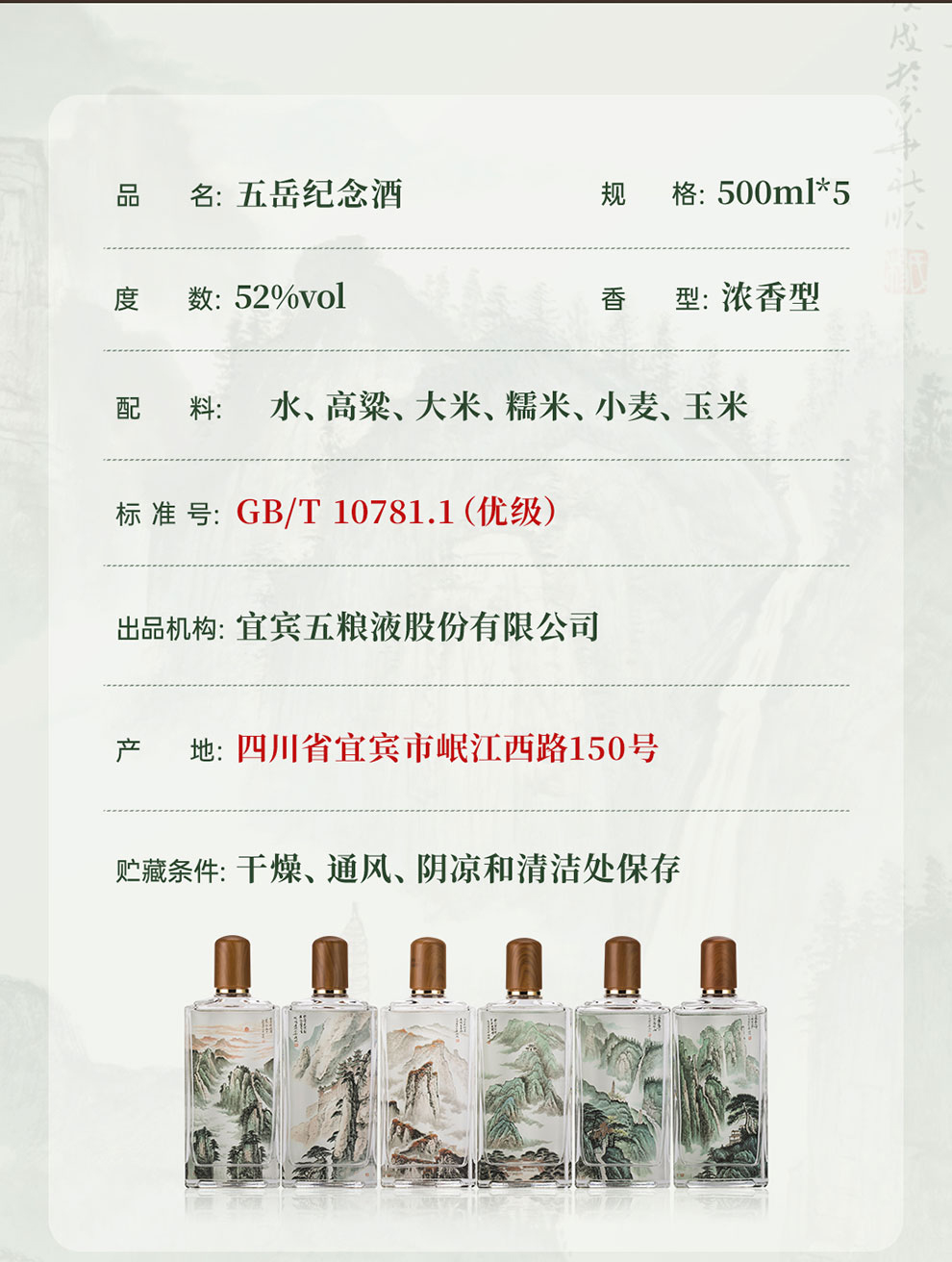 春夏秋冬五岳纪念酒52度浓香酒礼盒装