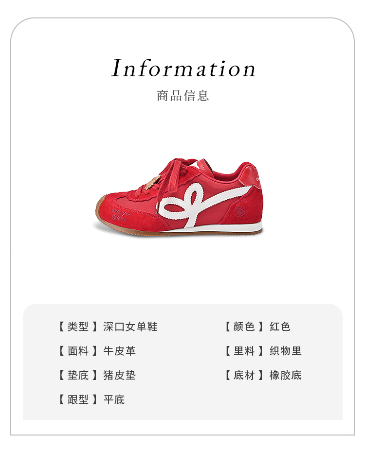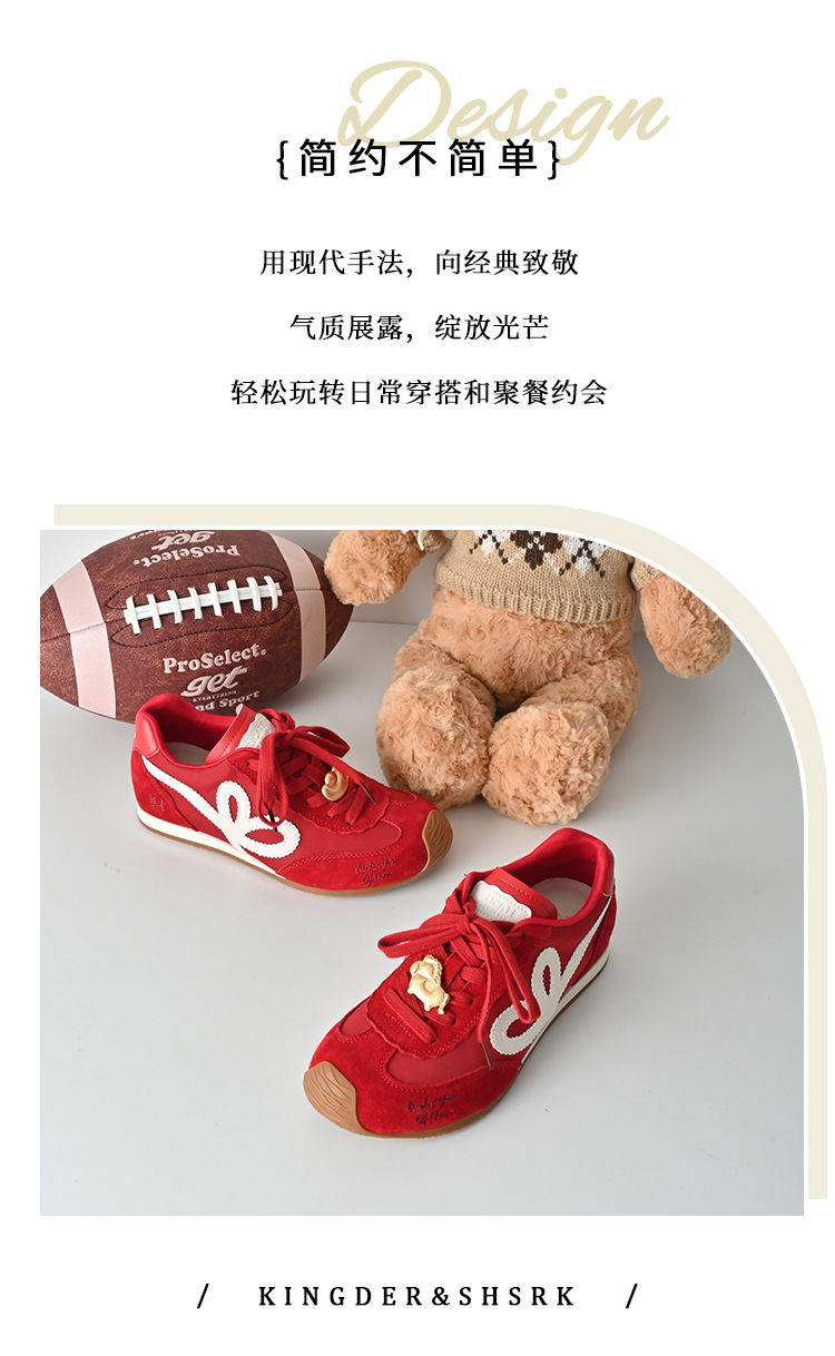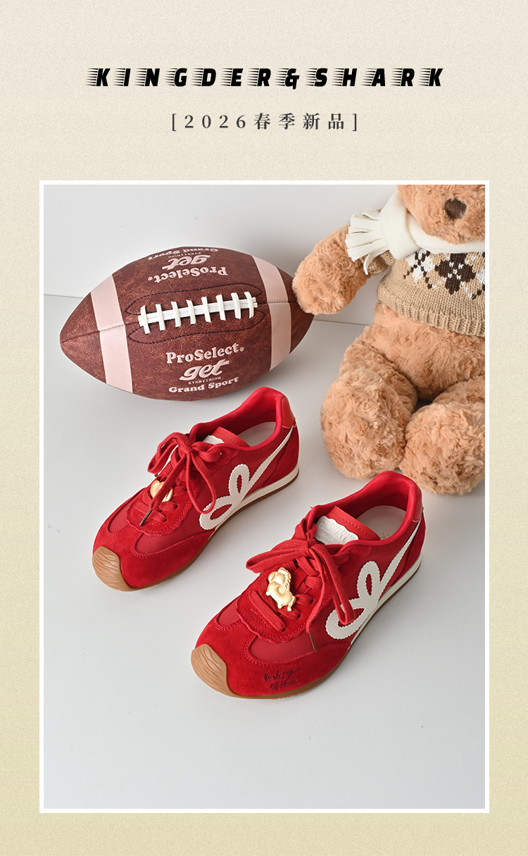 KDS经典鲨【马上發财】春专柜新品牛皮革红色系带平底休闲德训鞋KW16-617031